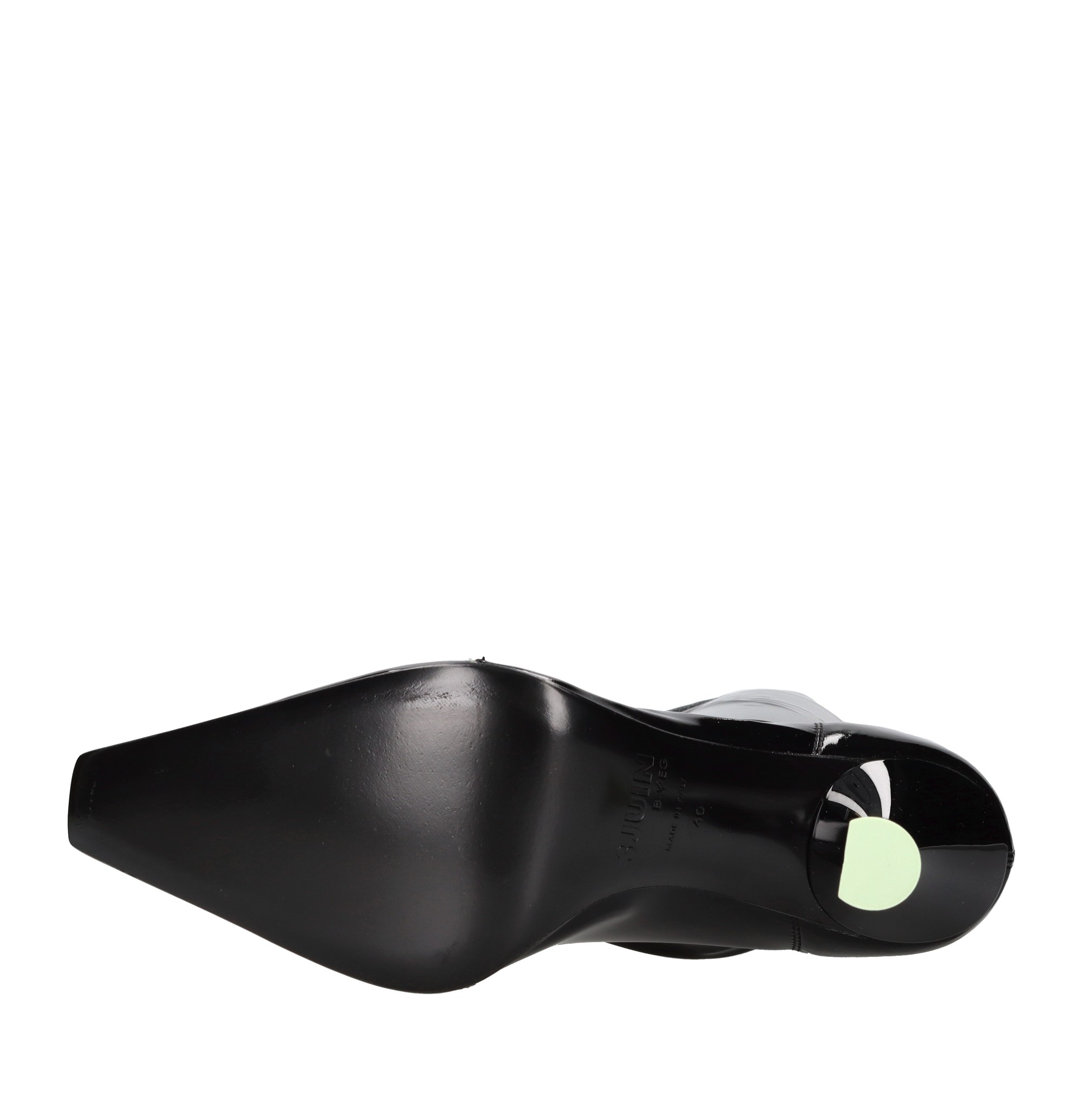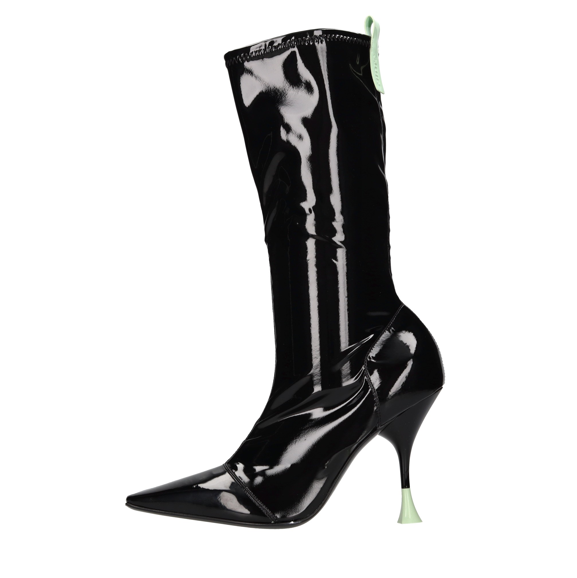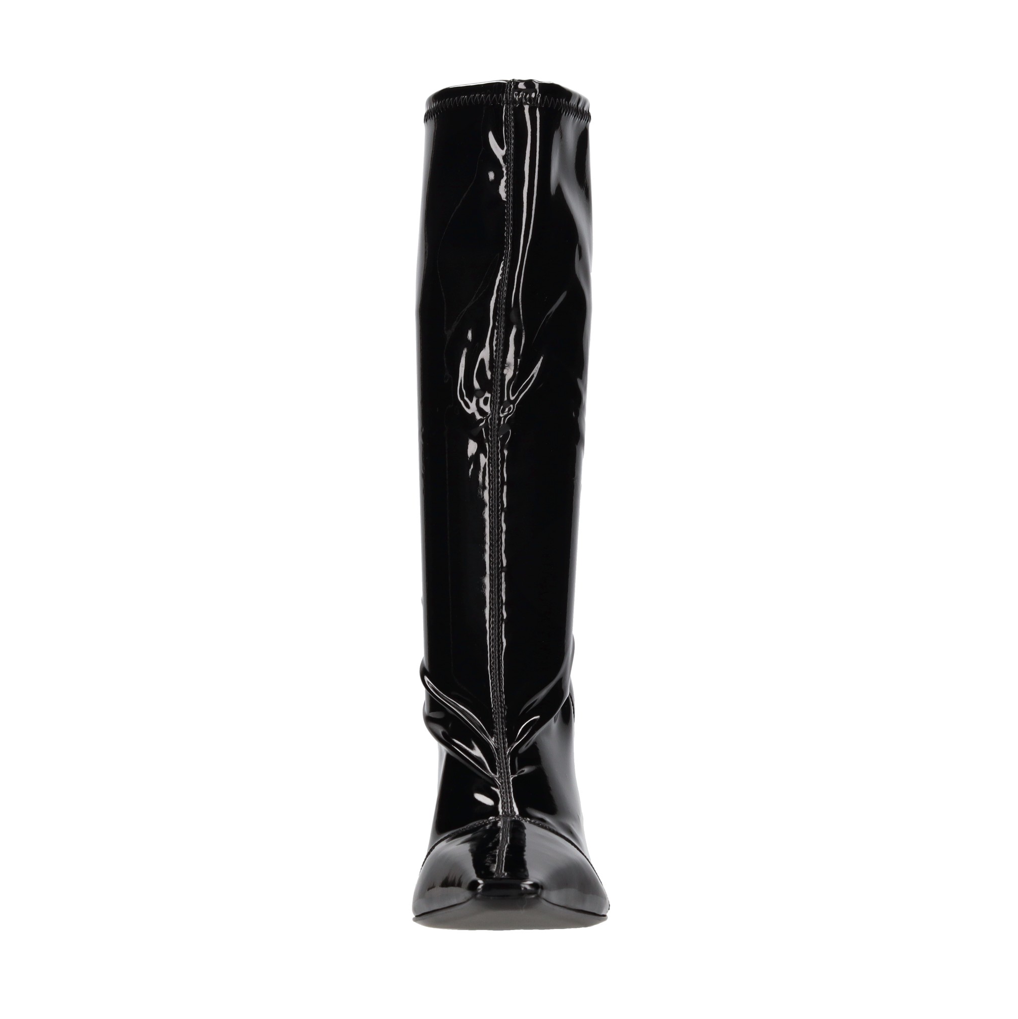 Patent leather boots. Internal upper in fabric. Outer sole in synthetic material.