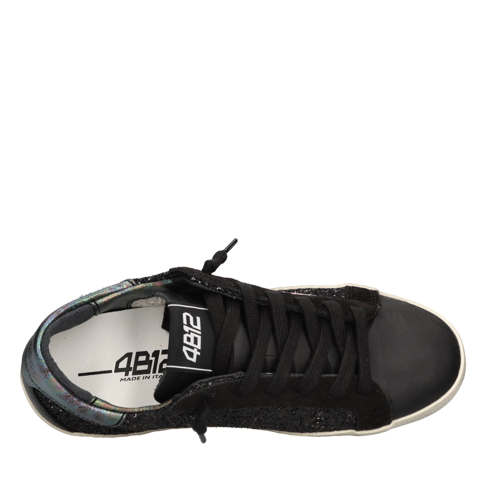 Leather and glitter sneakers. Vintage effect. Leather and fabric upper. Rubber sole.