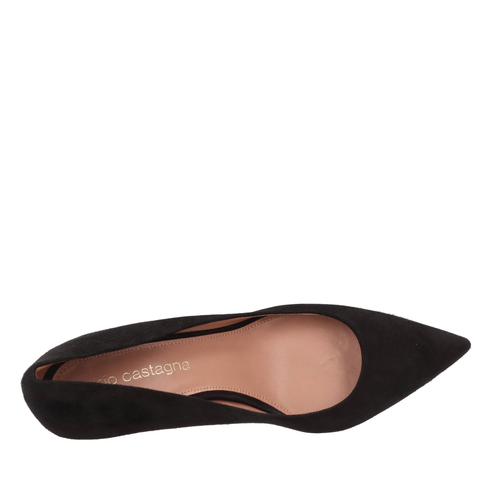 Suede décolleté. Internal leather upper. Outer sole in leather and rubber.