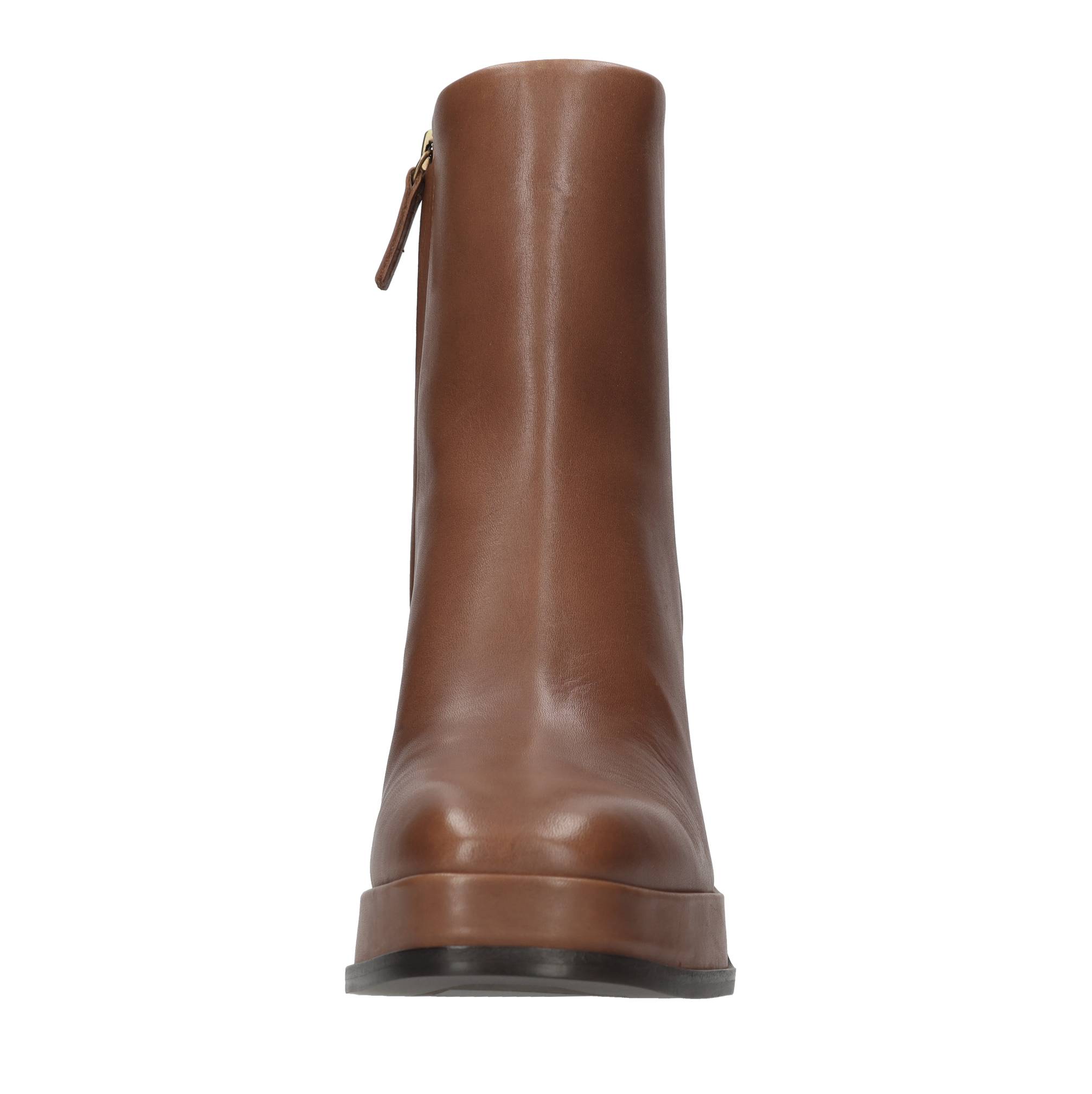 Leather ankle boots. Synthetic outsole. 2cm platform. Leather inner upper. Small imperfections on the leather.