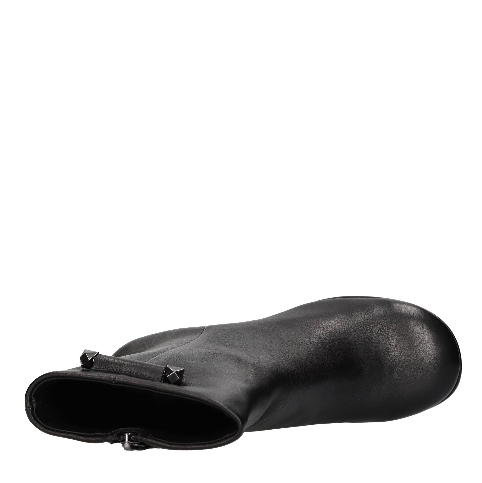 Leather ankle boots. Synthetic outer sole. Leather inner upper. Lead-coloured accessory.
