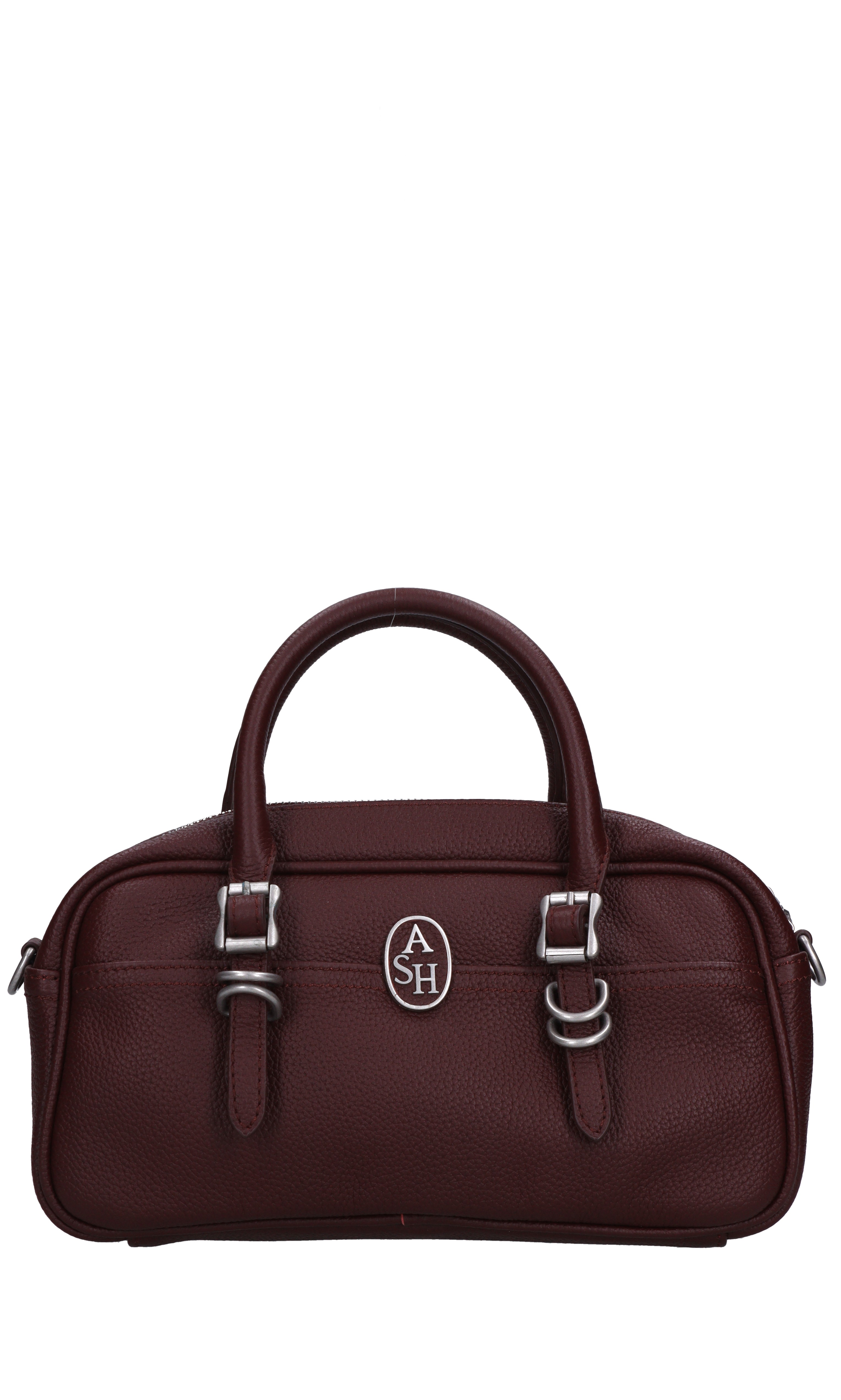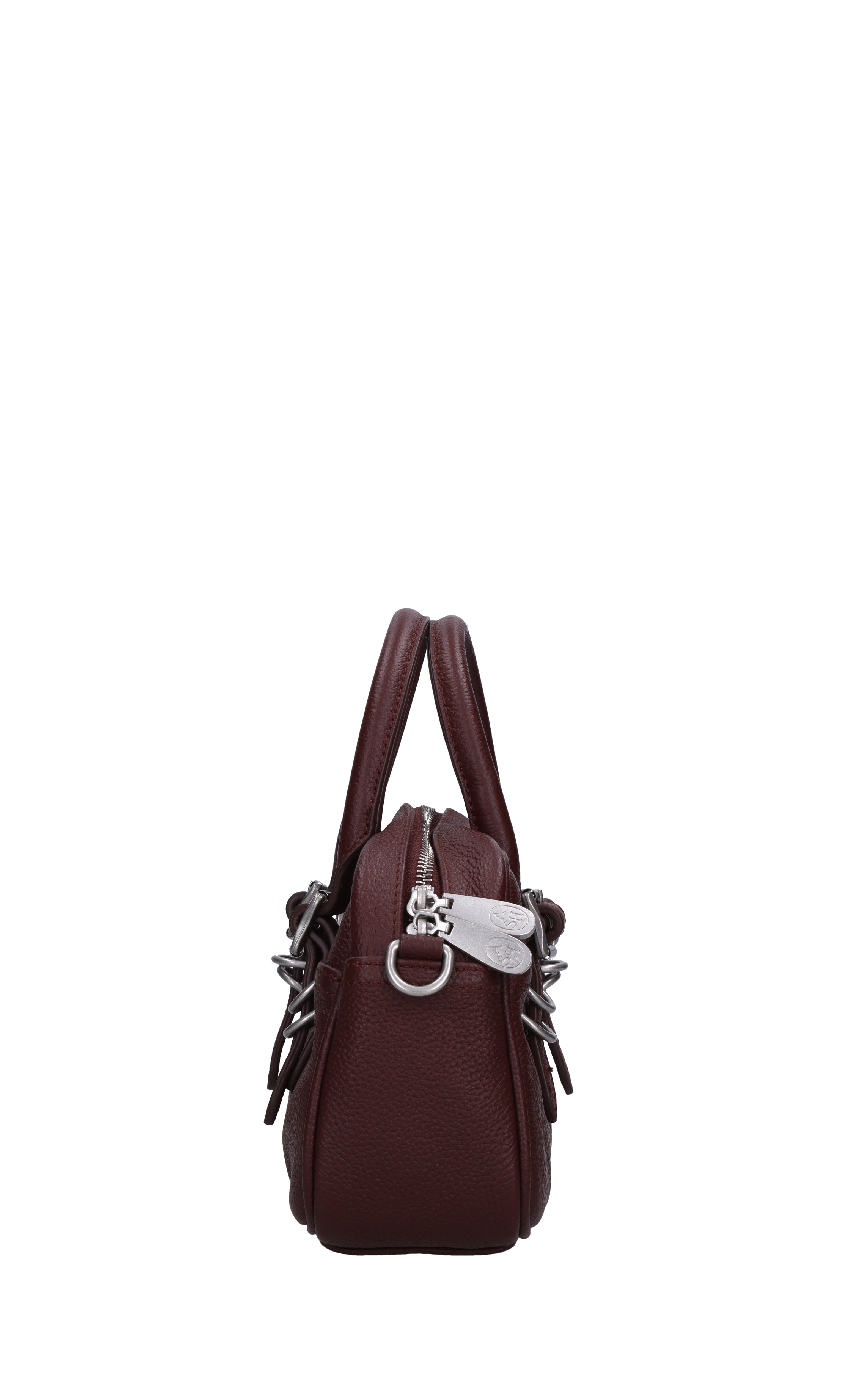 Leather bag. Hammered finish. 1 compartment. Zip closure. Adjustable and removable leather shoulder strap. Shipped in a transparent bag. No tag.