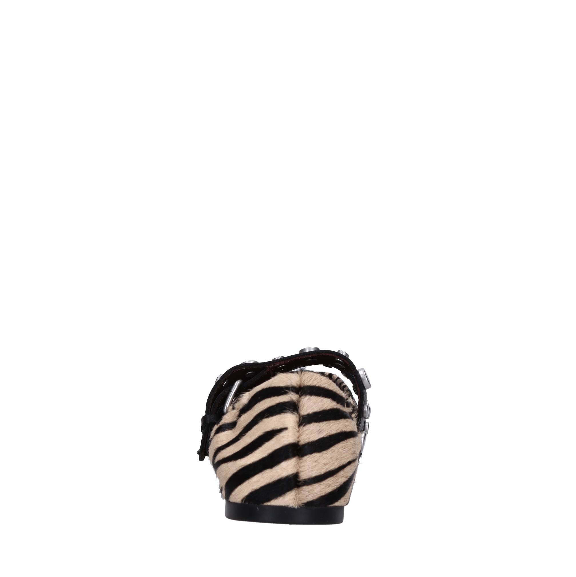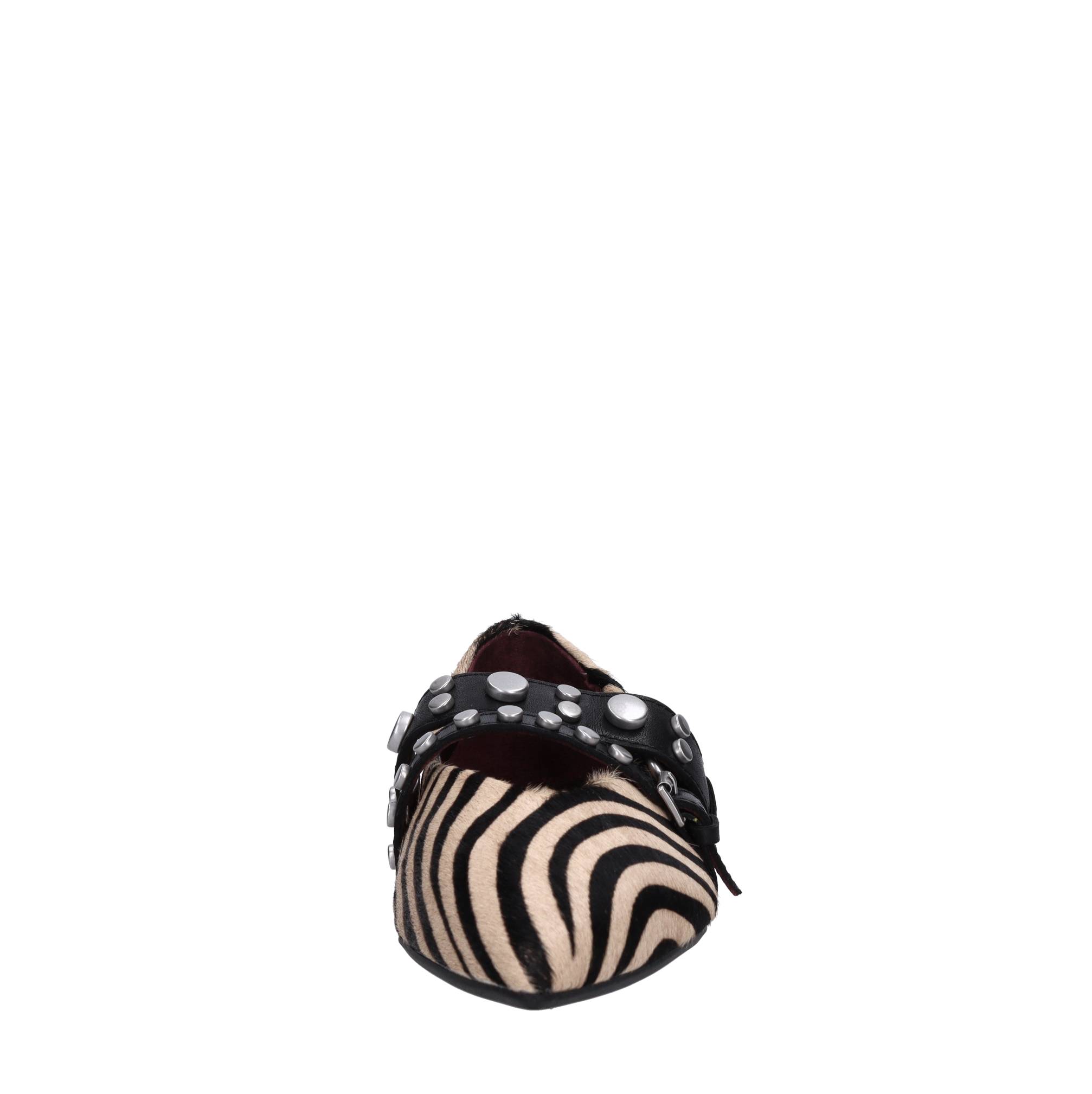 Pony skin ballet shoes. Leather innersole. Rubber outsole. Double strap with studs.