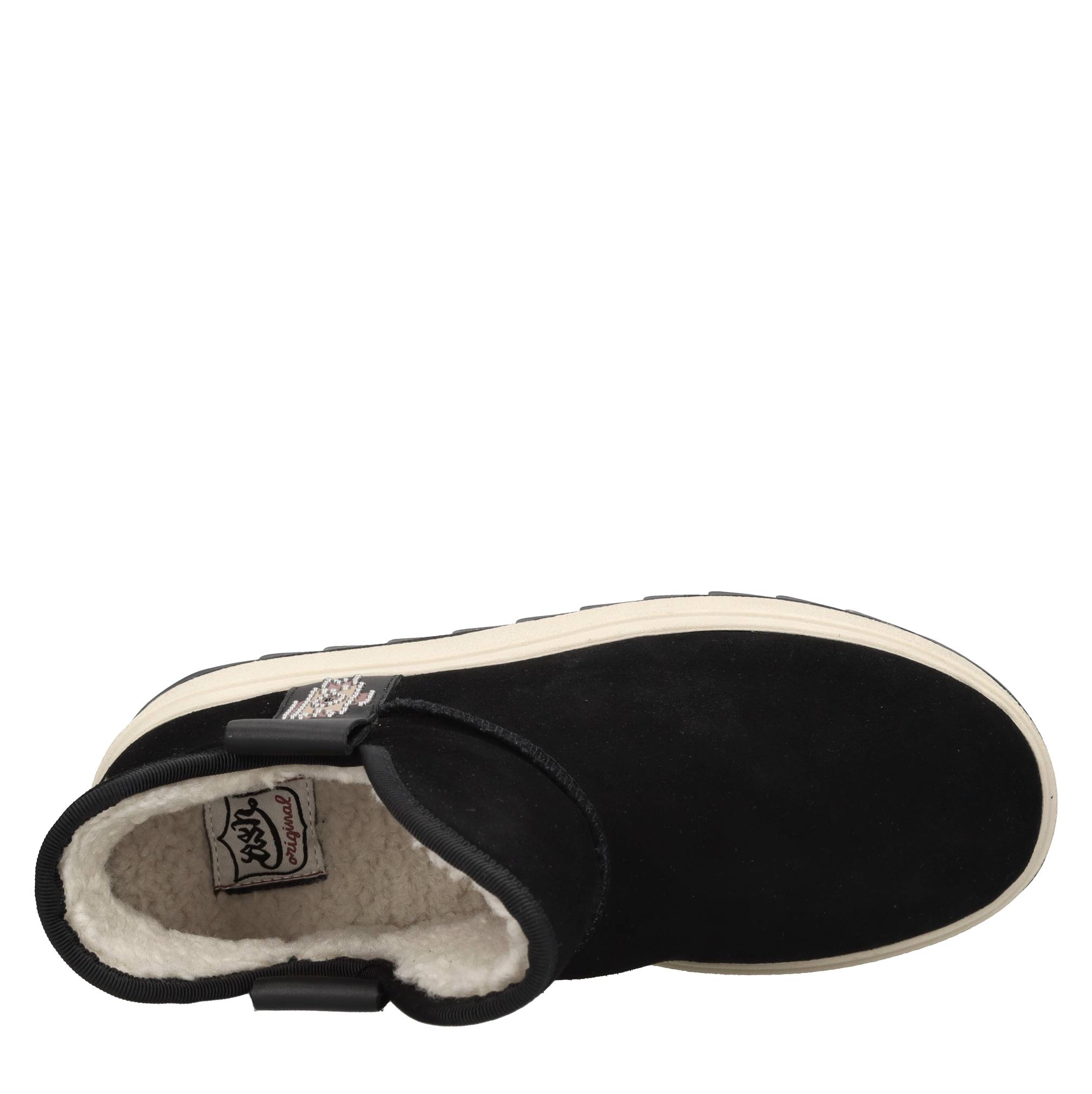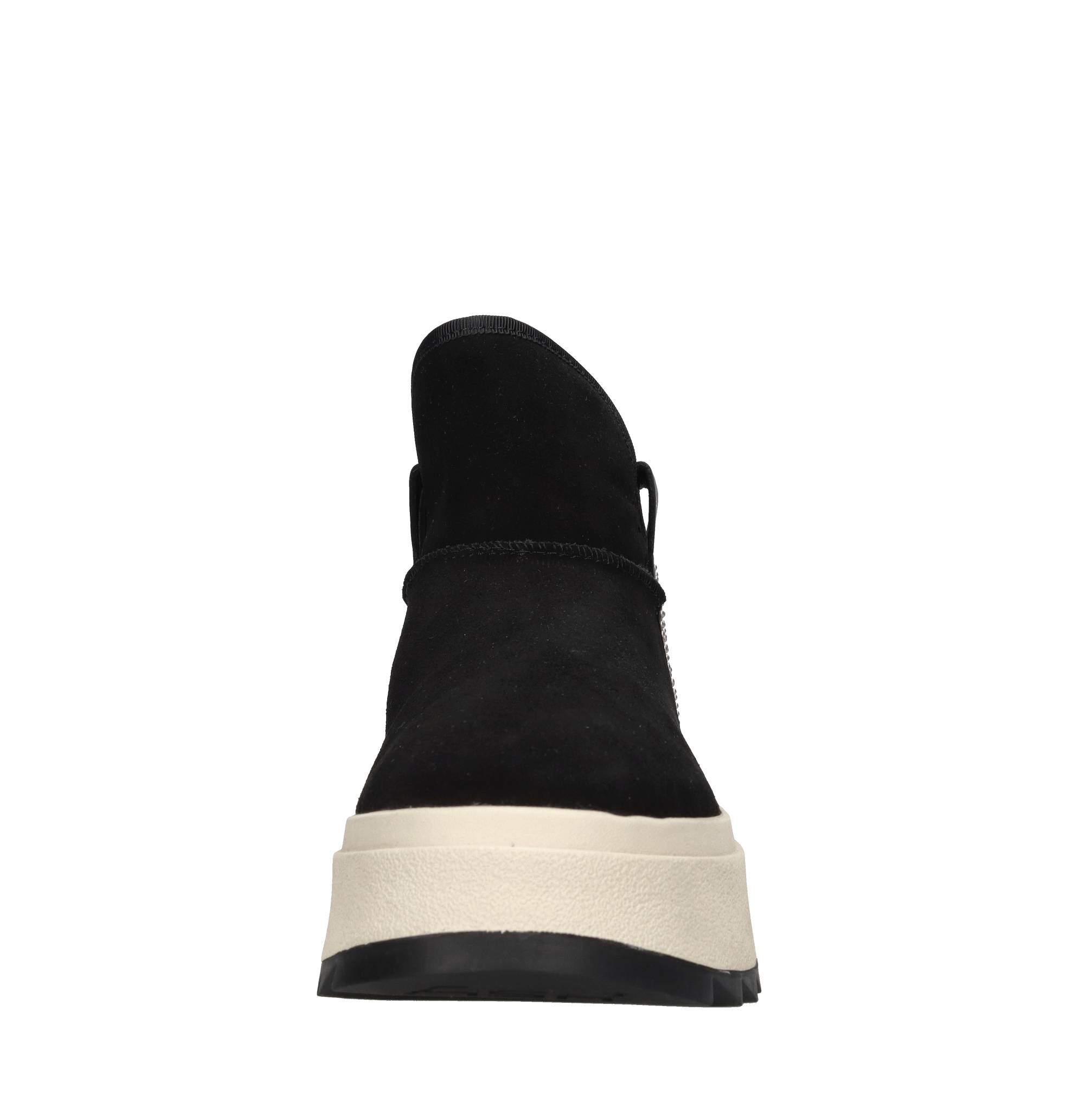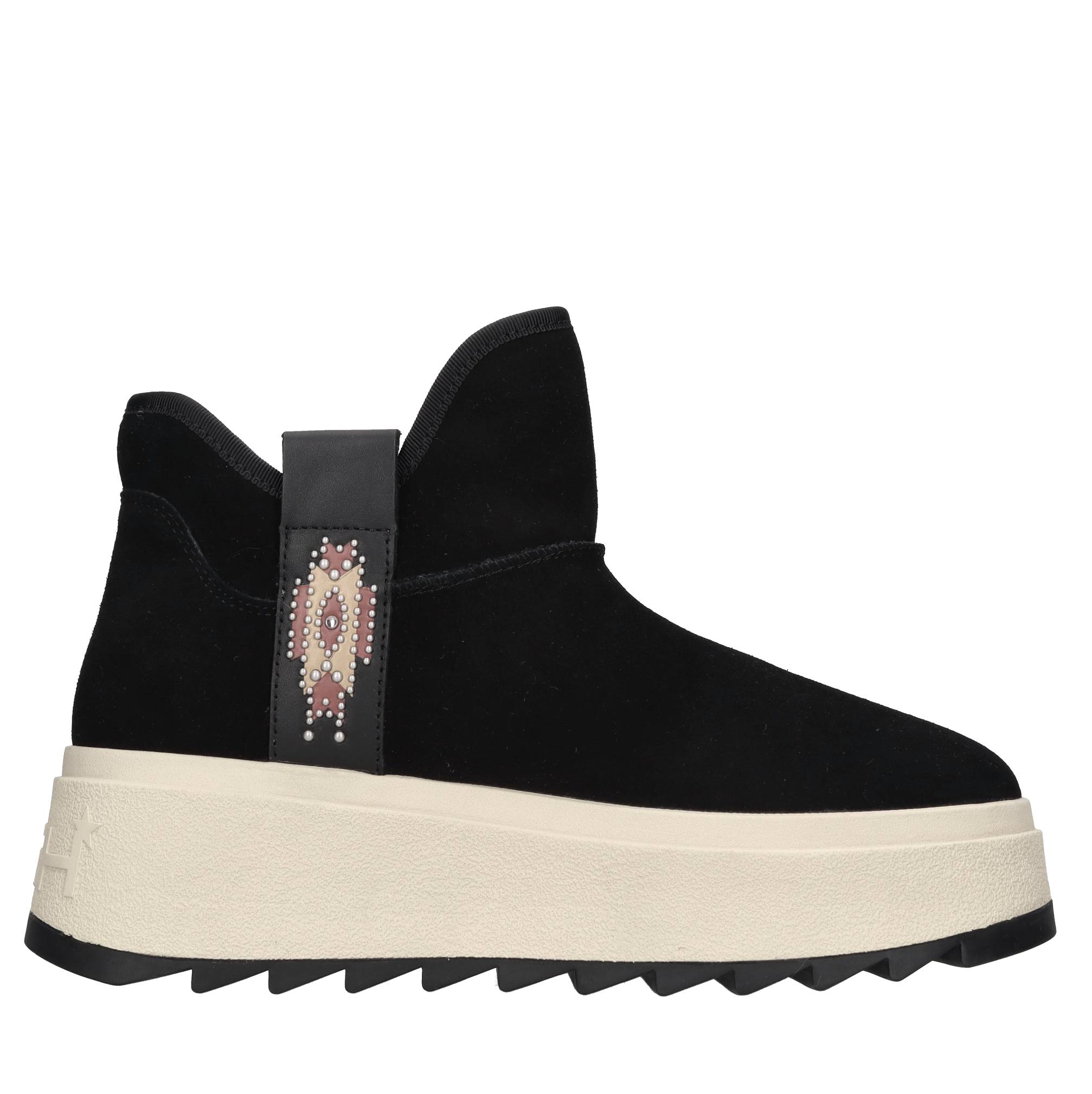 Suede ankle boots. Fabric upper. Rubber outsole.