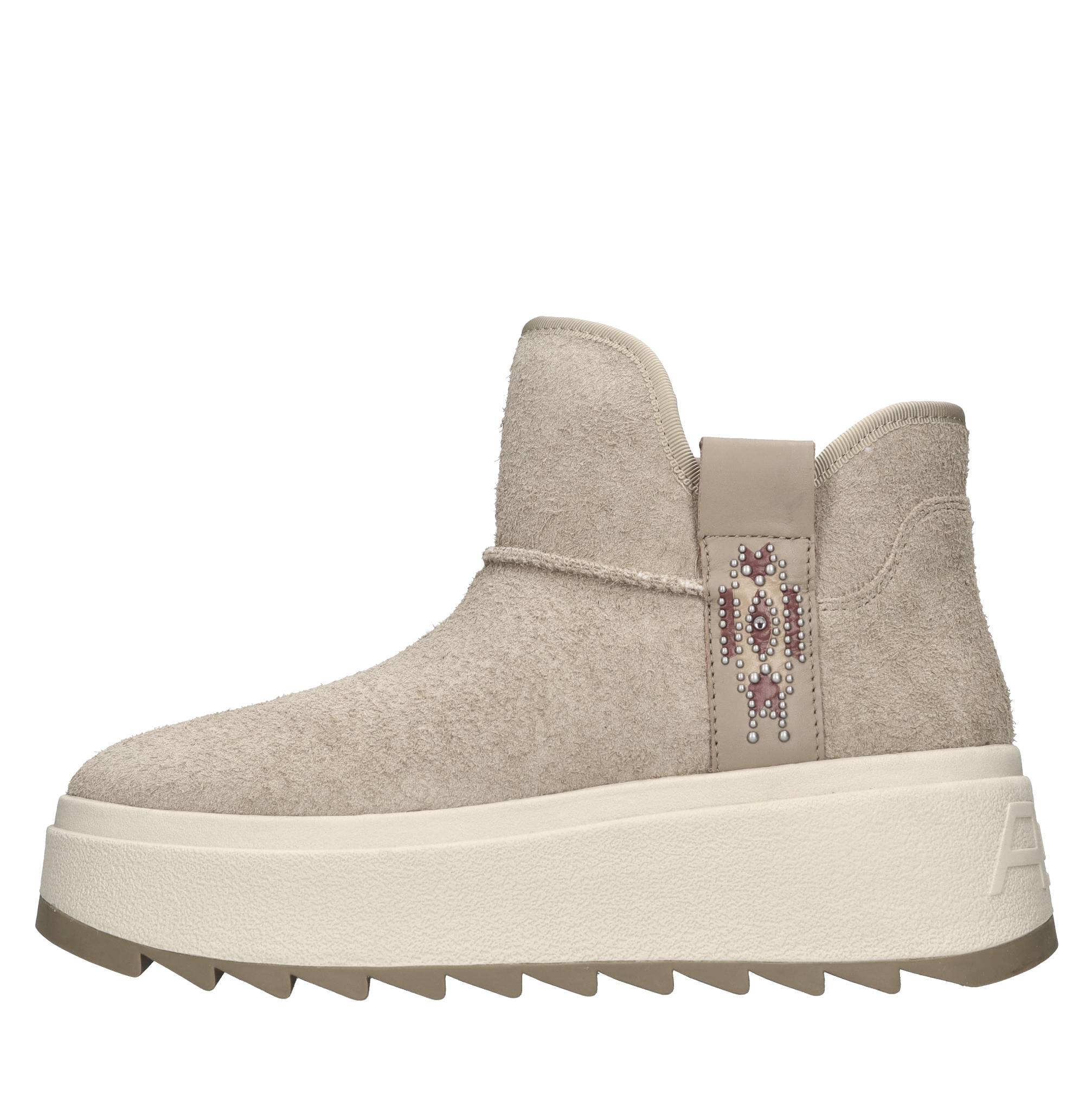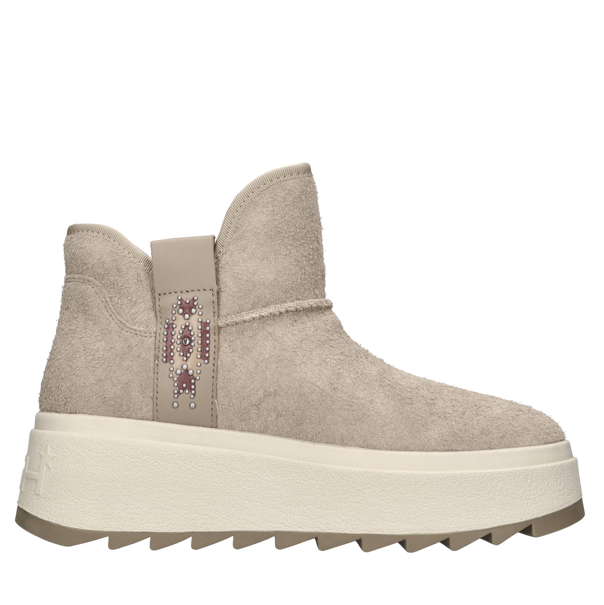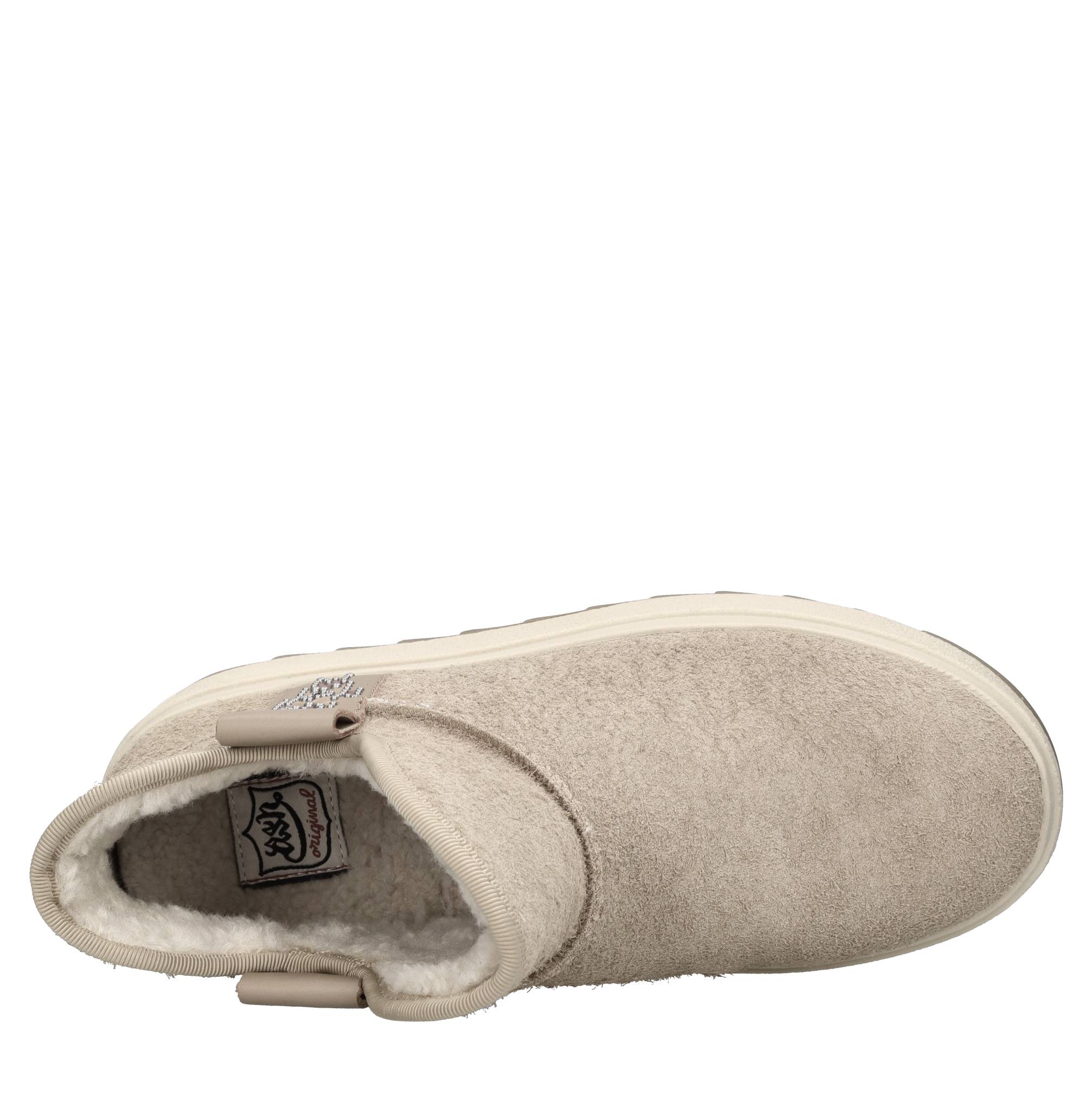 Suede ankle boots. Fabric upper. Rubber outsole.