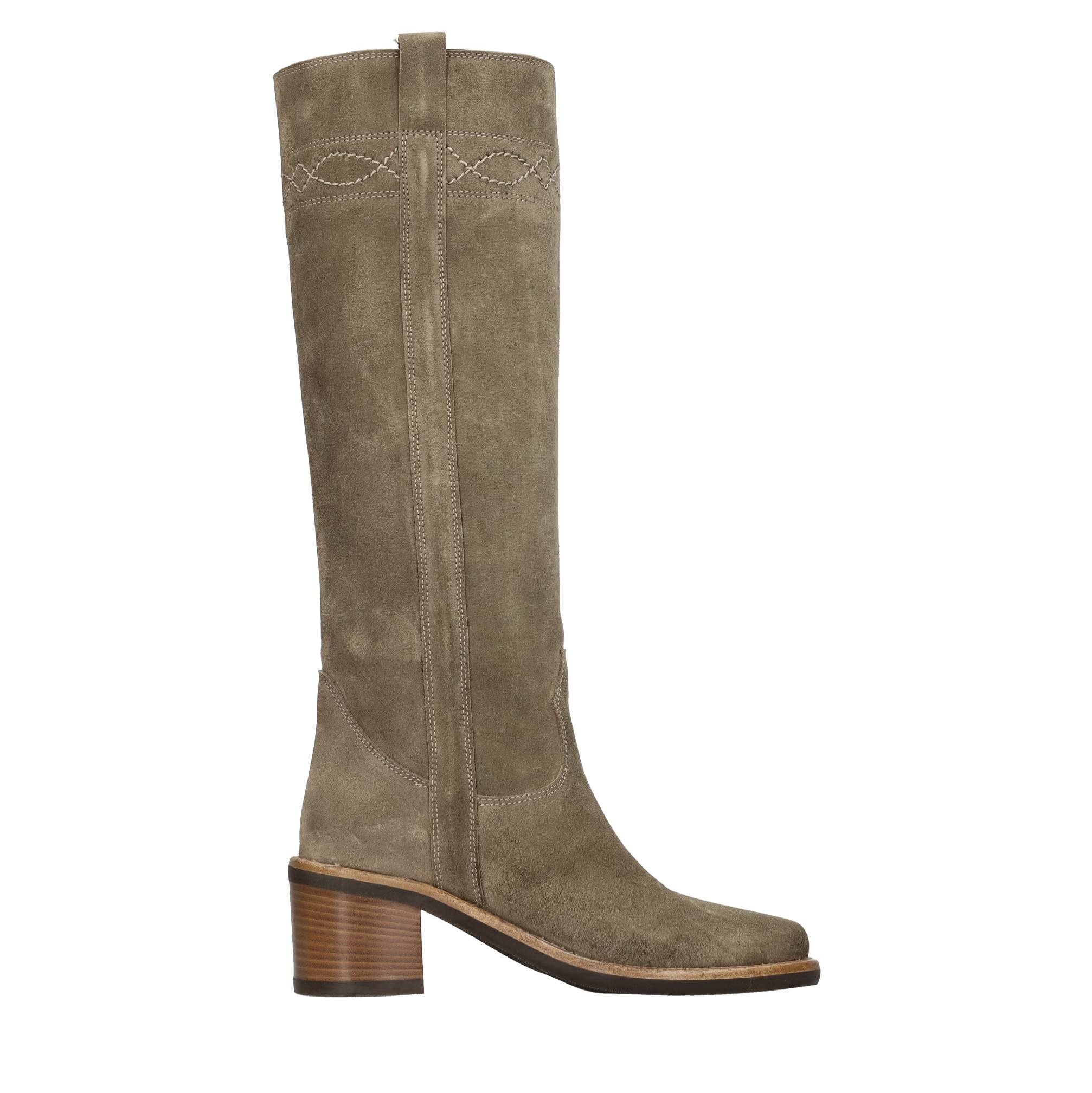Suede boots. Taupe color. Rubber outsole. Leather insole.