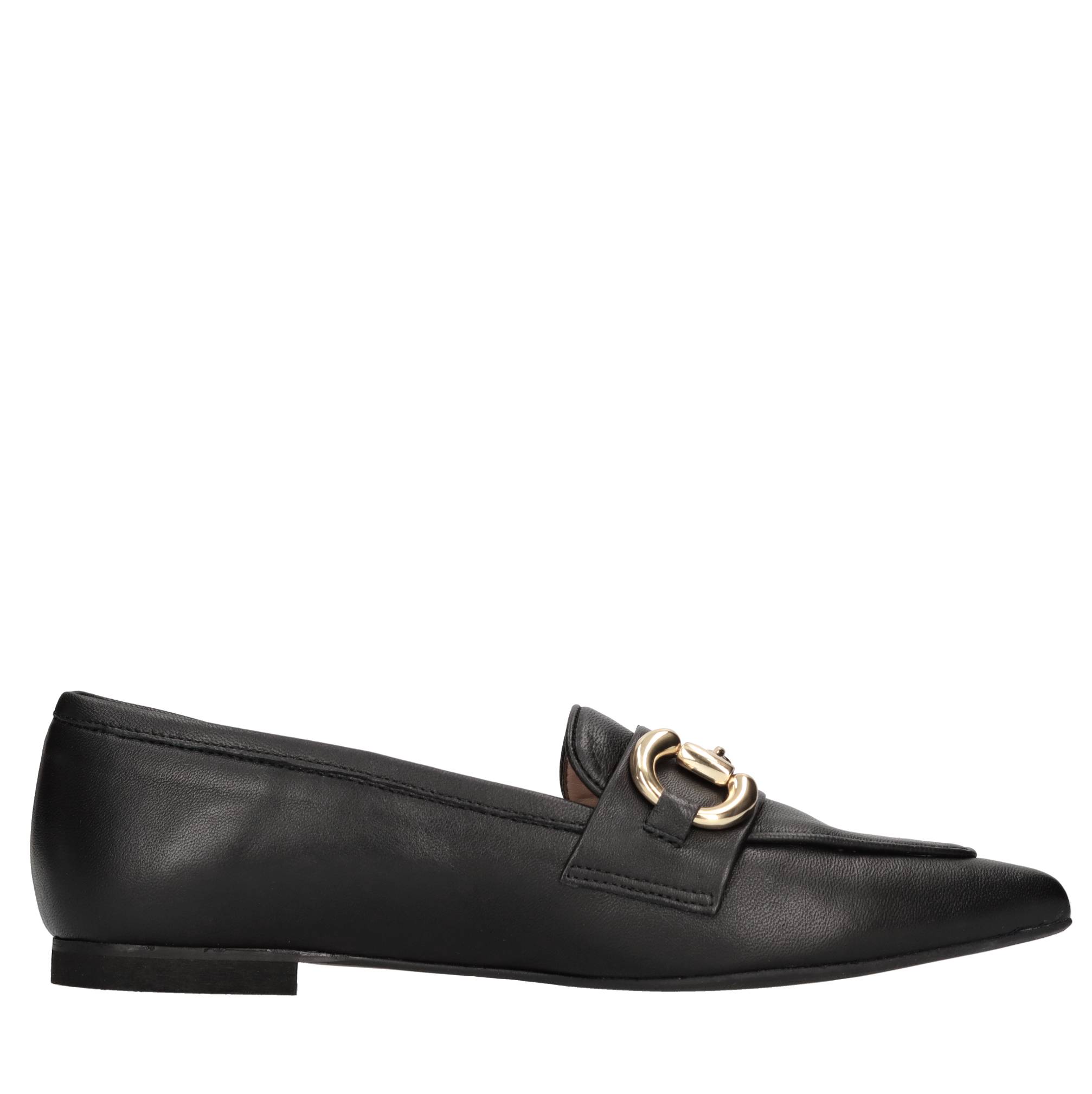 Leather moccasins. Gold-colored details. Inner upper in leather and ecoleather. Rubber outsole.