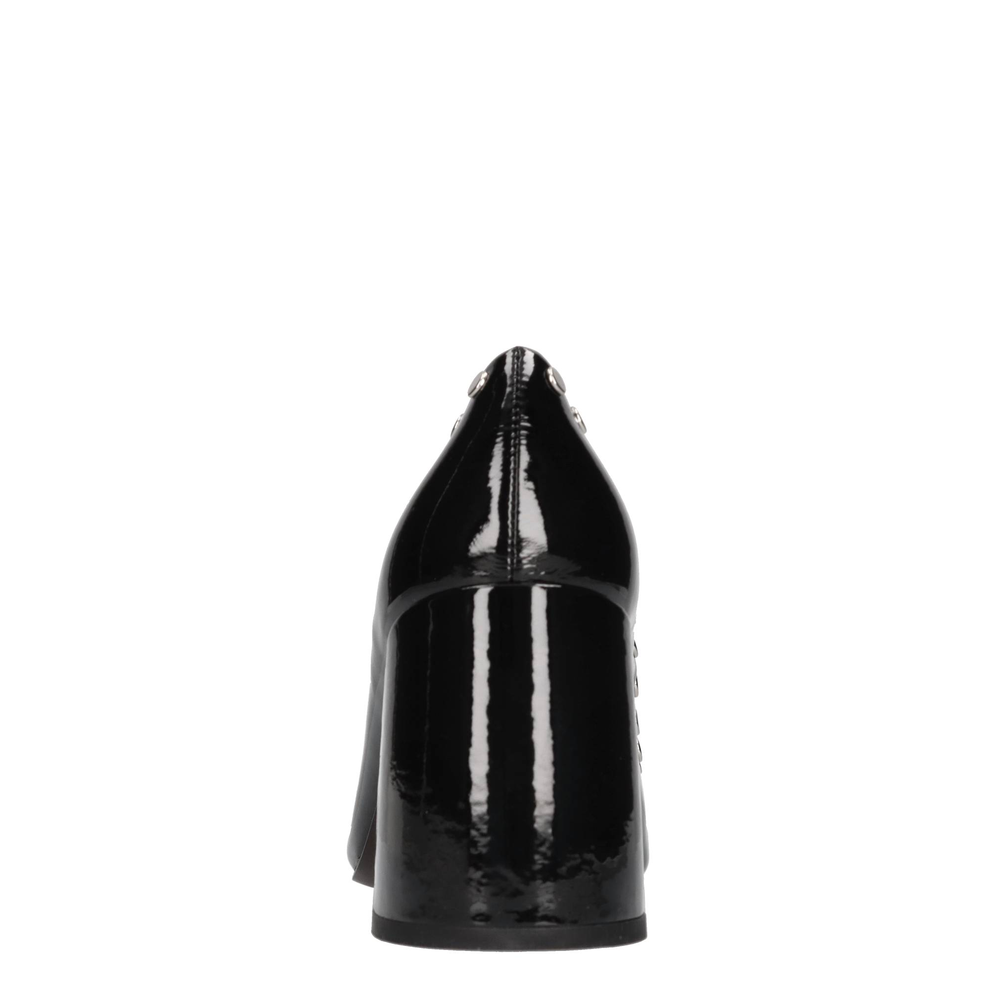 Patent leather pumps with studs. Leather inner upper. Rubber outer sole.
