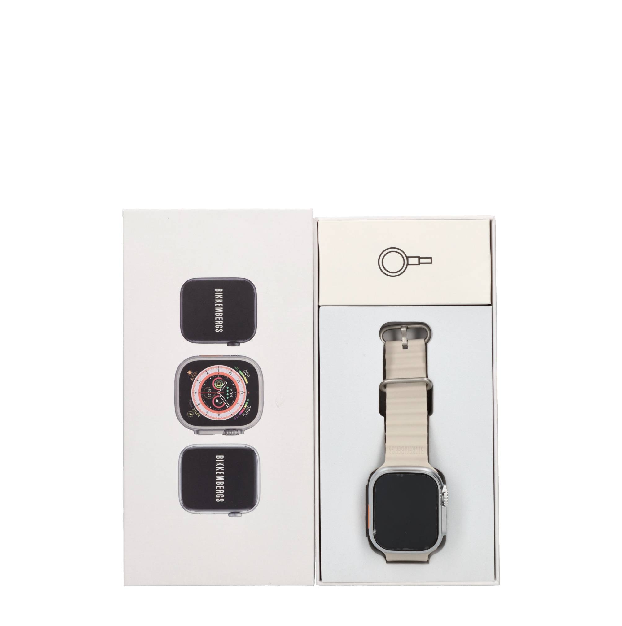 Unisex Smartwatch. Digital display. Aluminum case and silicone strap. Not waterproof.