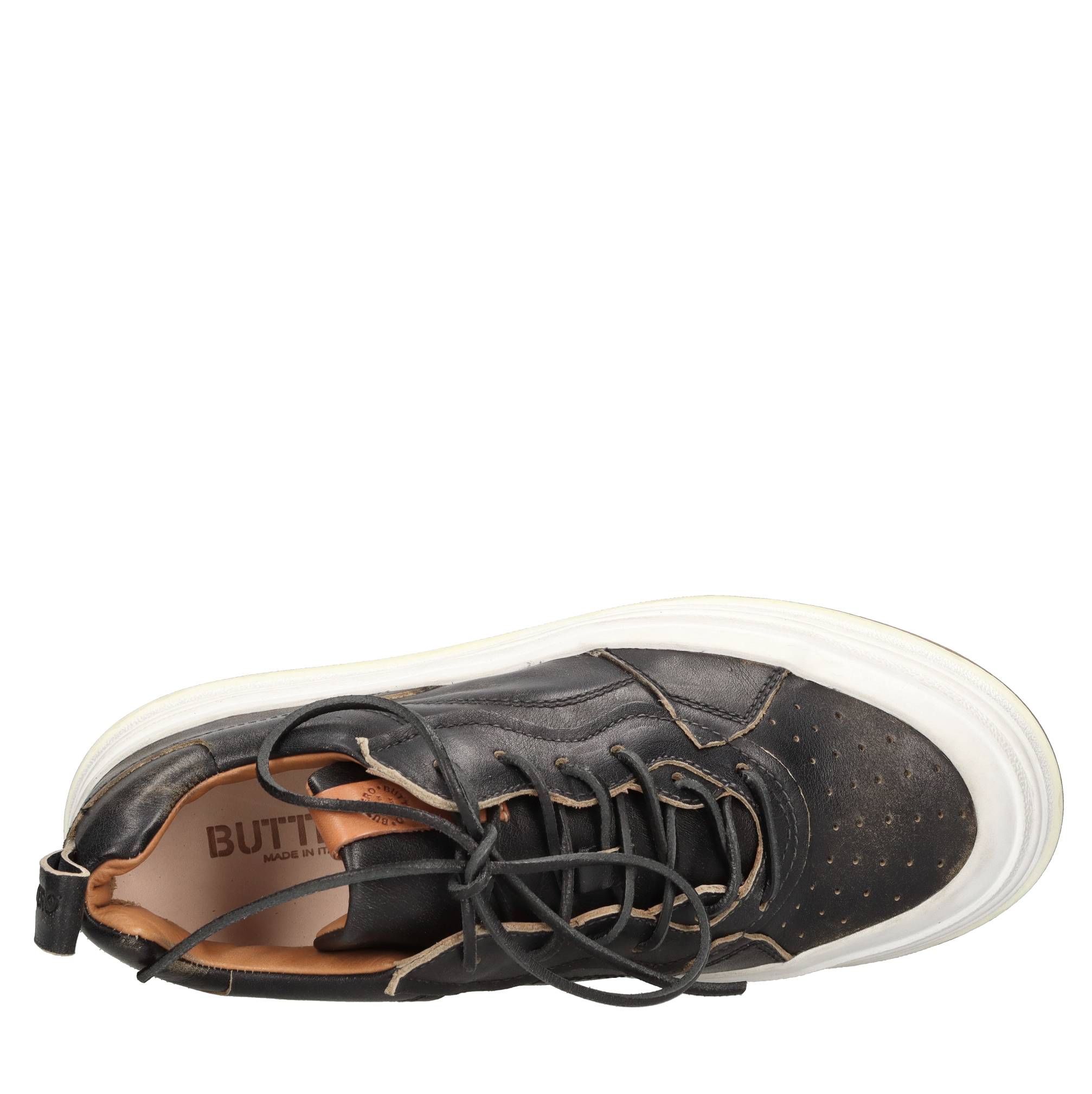Leather sneakers. Rubber outer sole. Leather inner upper. Vintage effect.