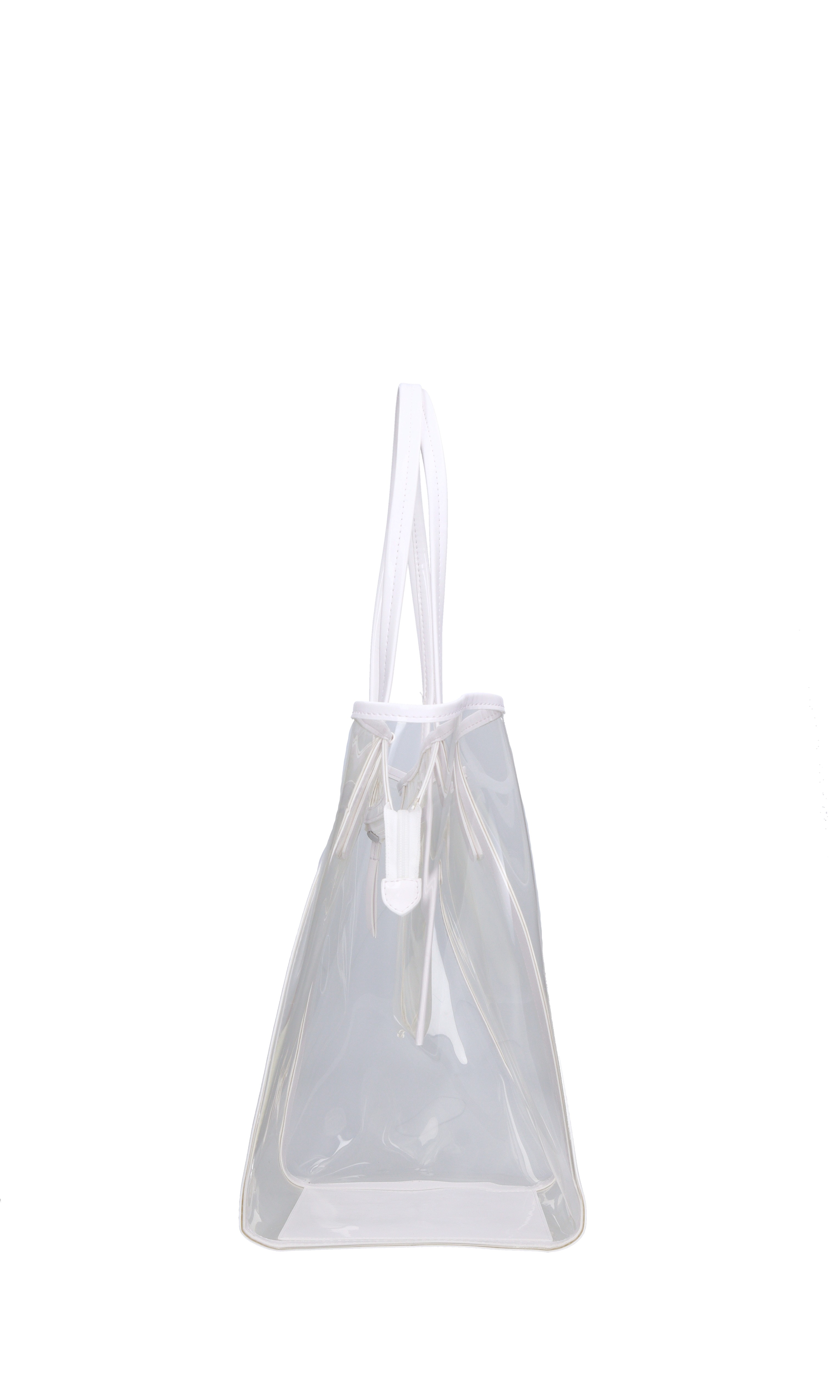 Plexi bag. 1 compartment. Zip closure. Eco-leather handle. Shipped in a transparent bag.