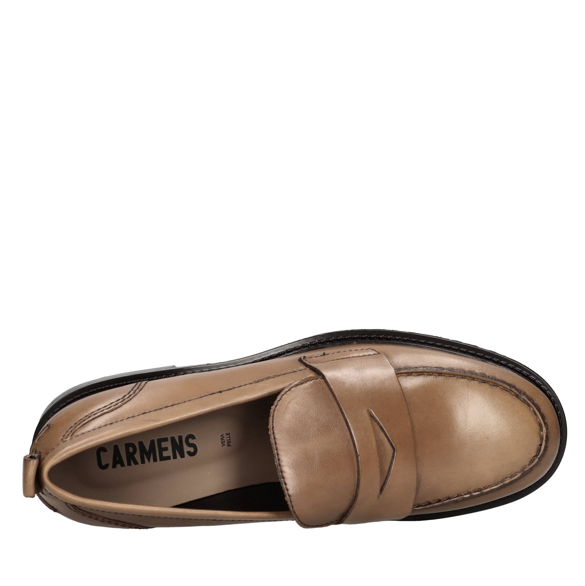 Leather moccasins. Leather innersole. Rubber outsole.