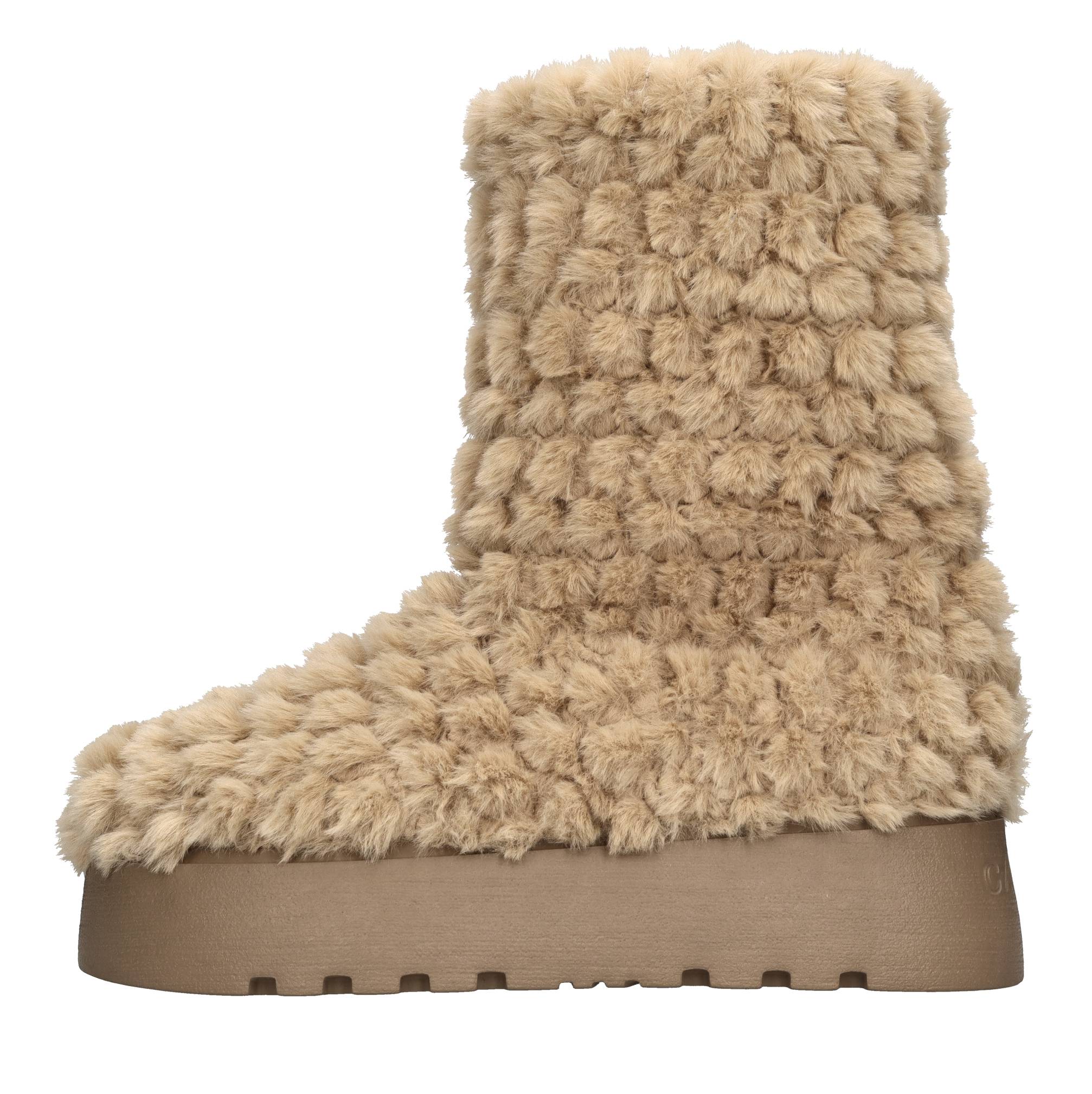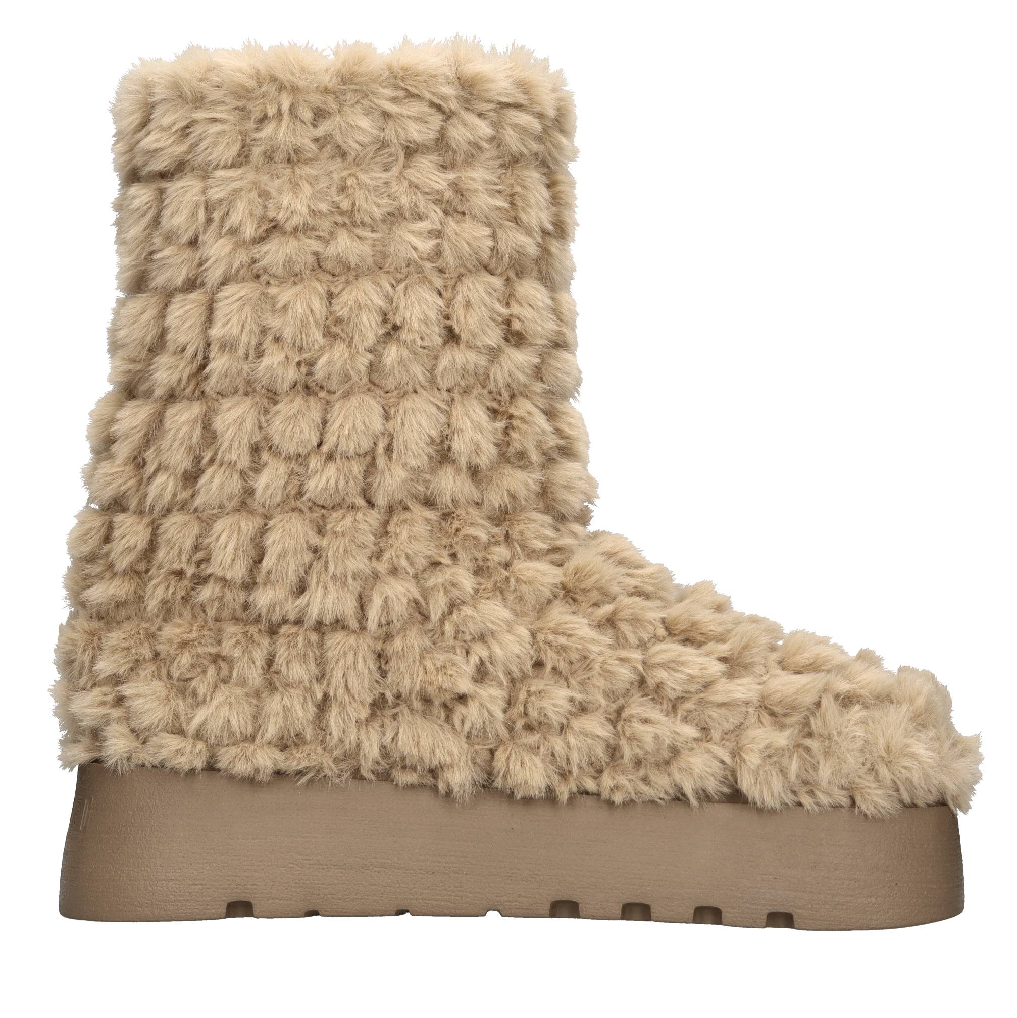 Faux fur ankle boots. Faux fur inner upper. Rubber sole. Samples shipped in a plain box.