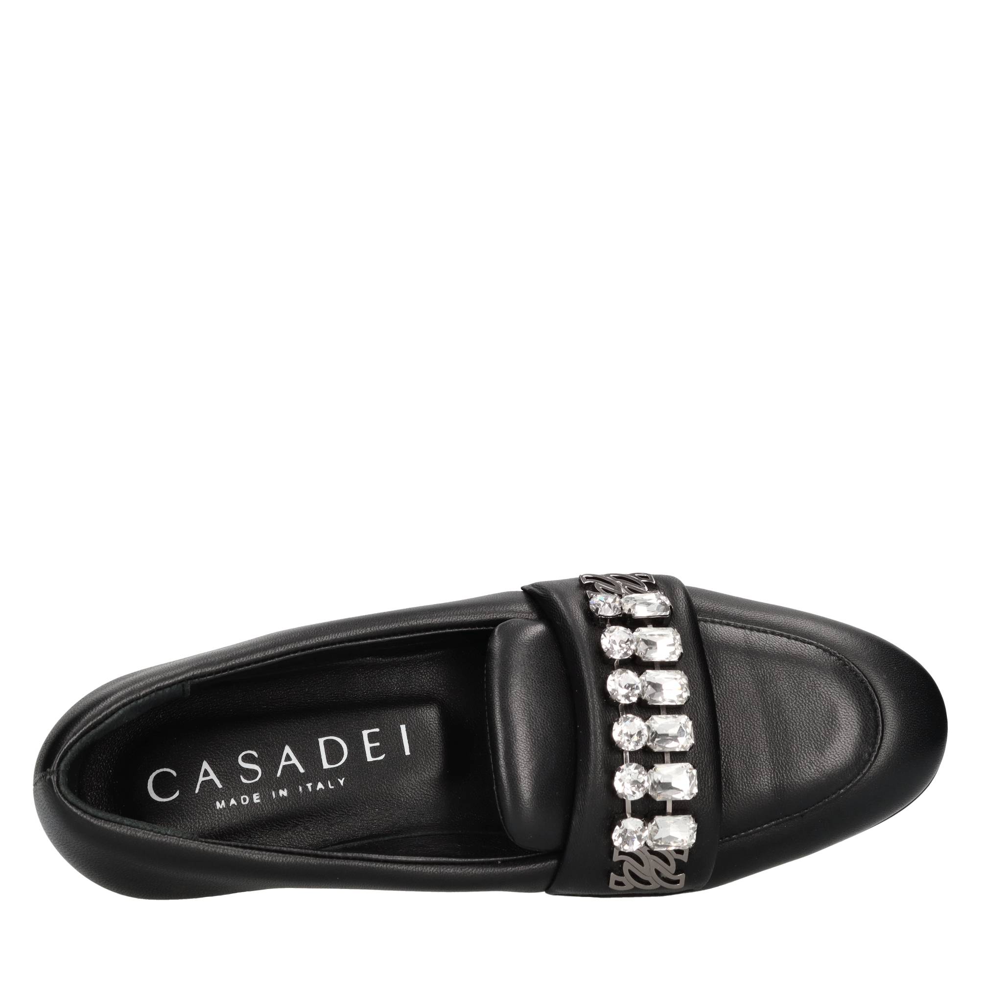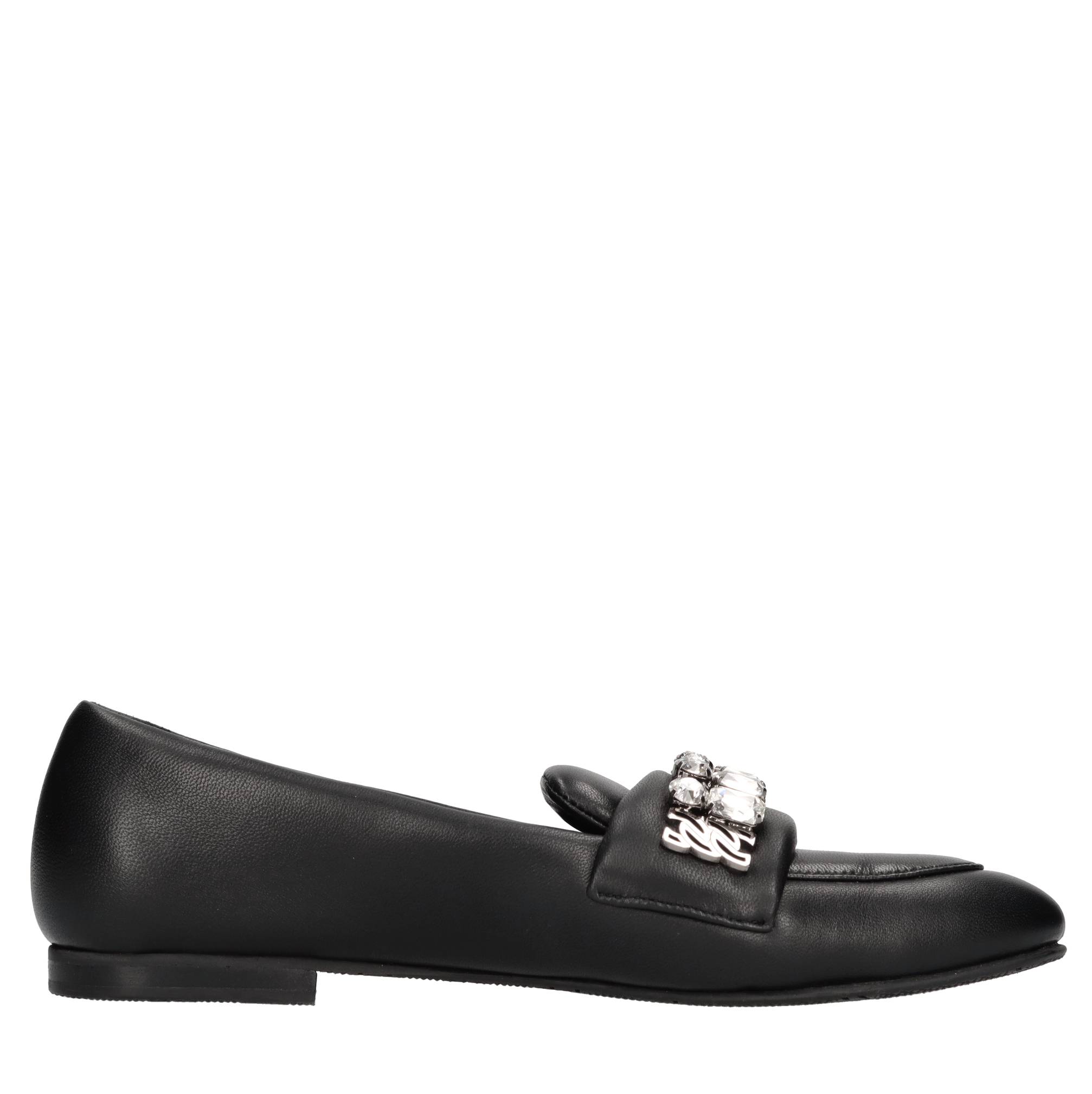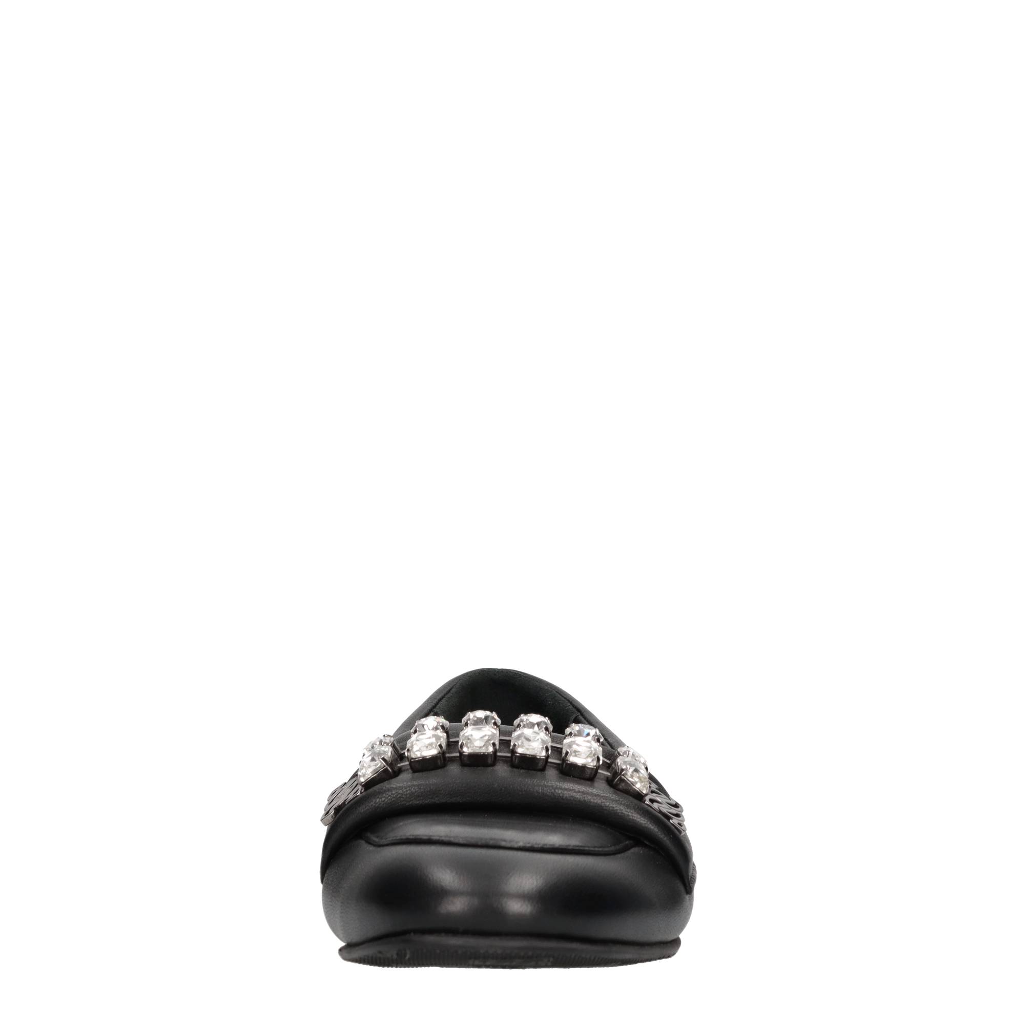 Leather and rhinestone loafers. Leather inner upper. Rubber outer sole. Sample, shipped in a plain box.