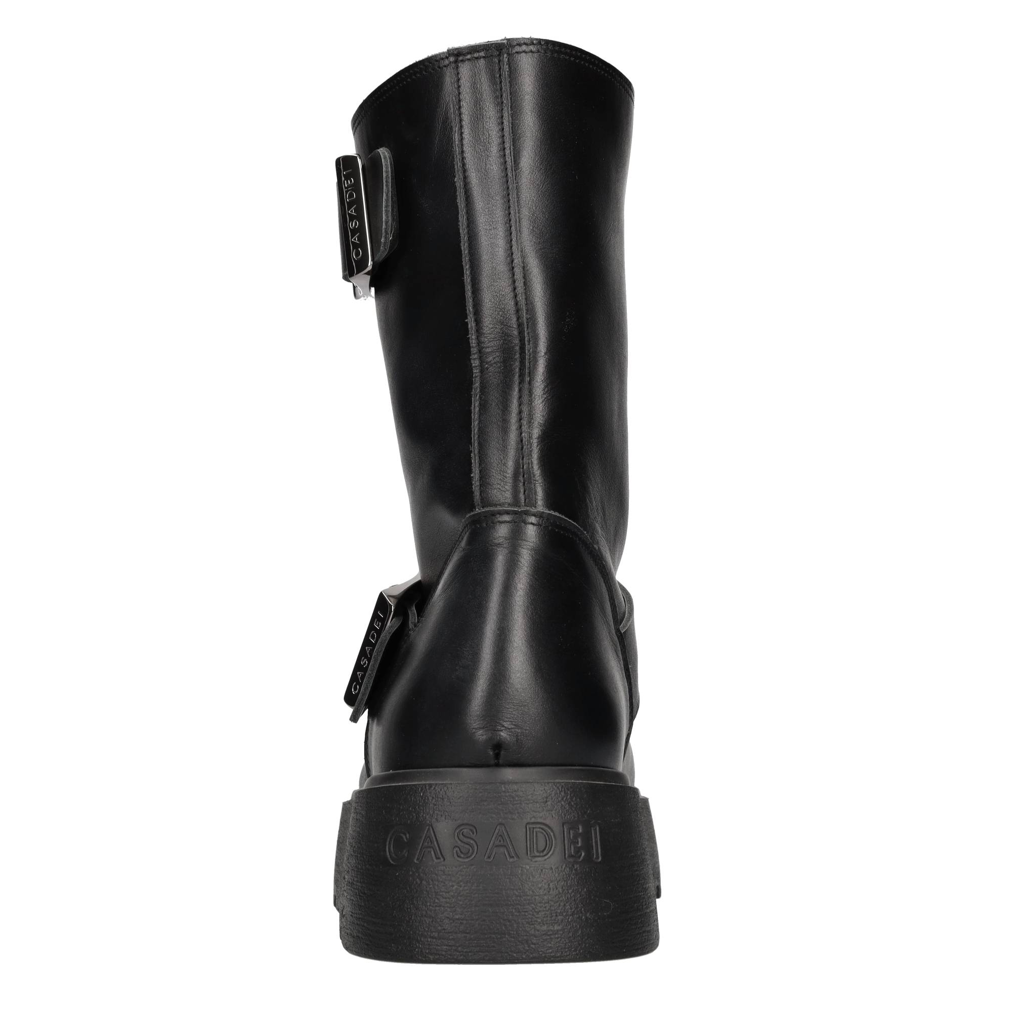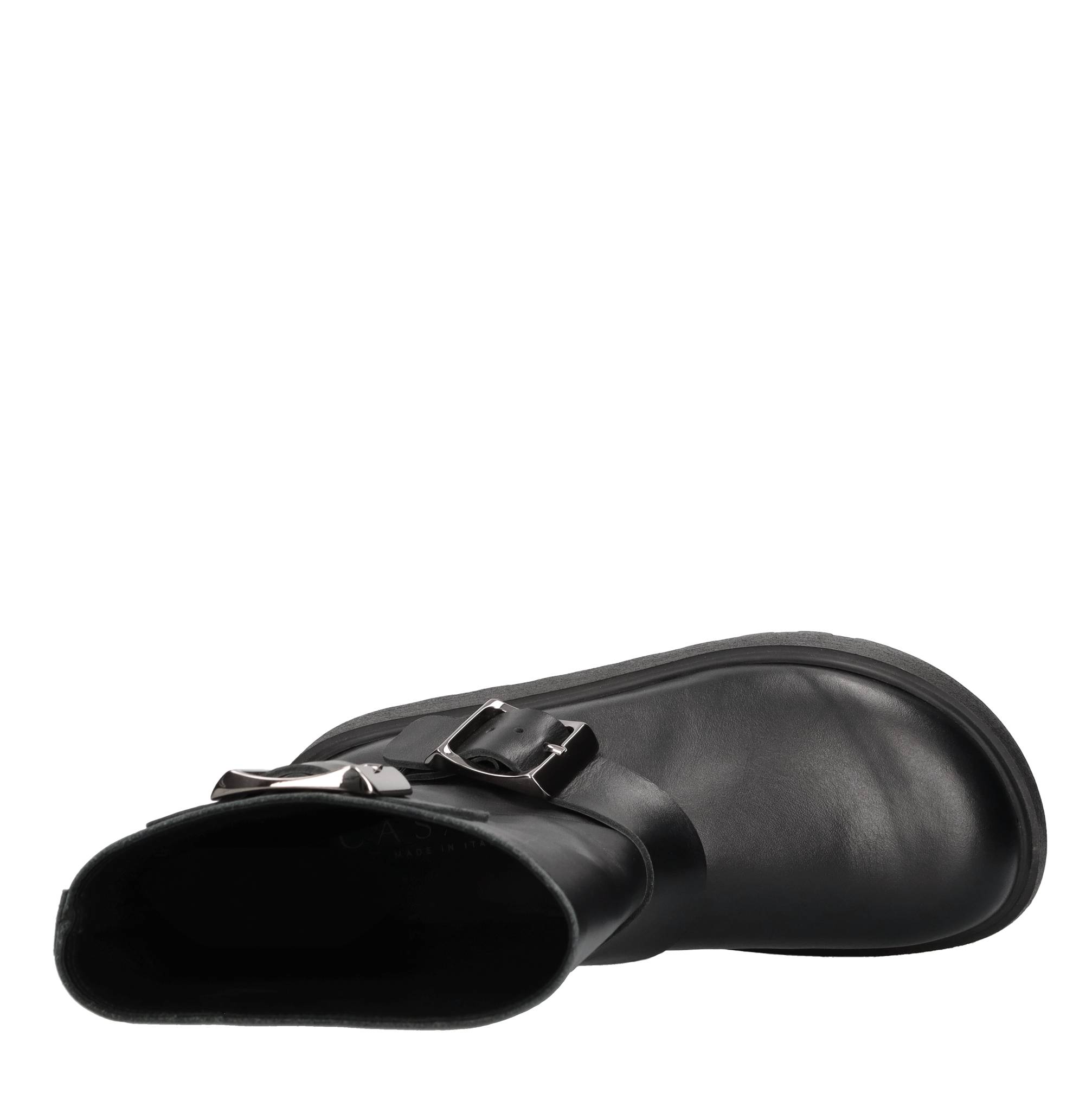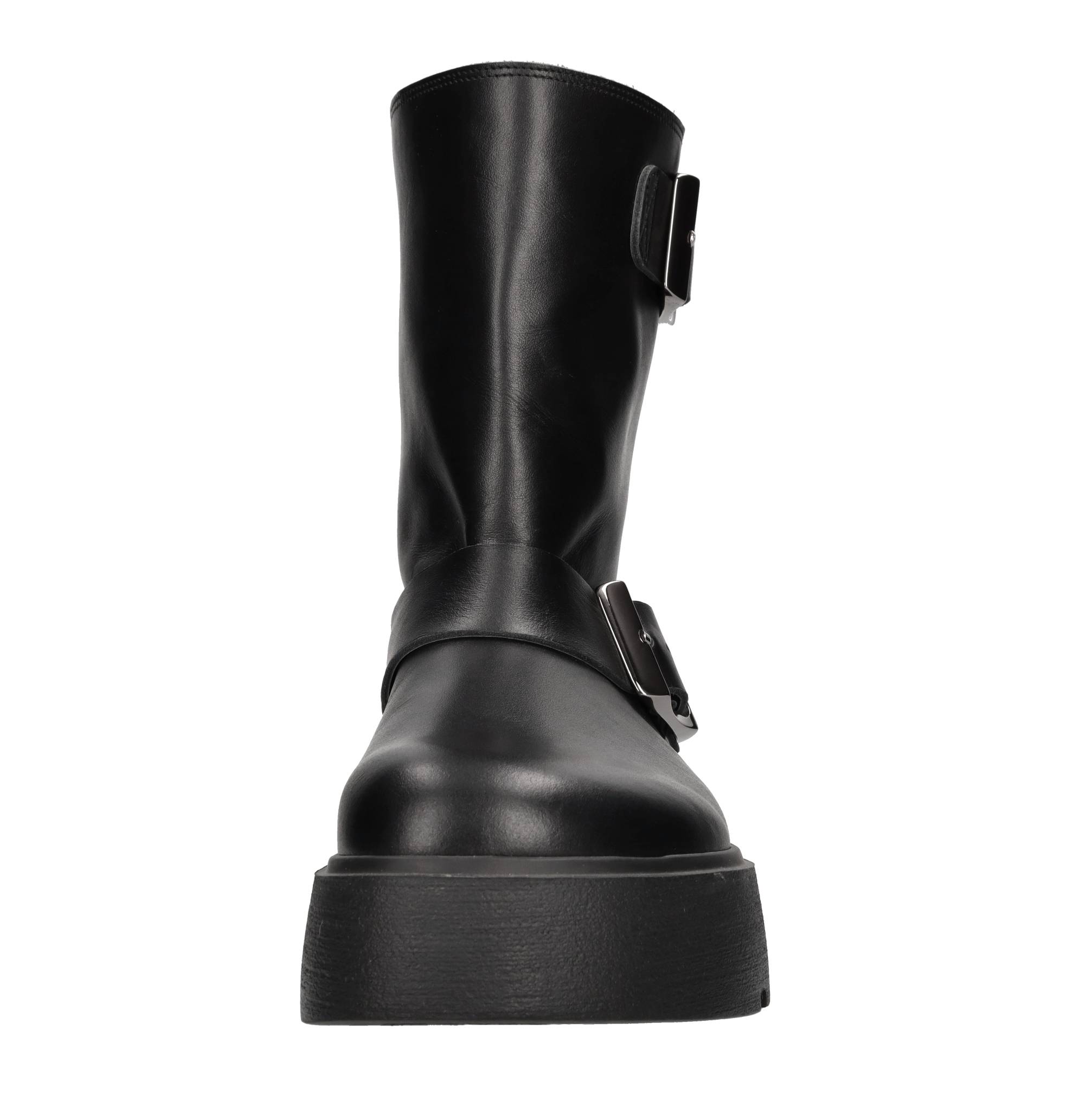 Leather biker boots. Leather upper. Rubber sole. Samples, shipped in a plain box. Minor imperfections.
