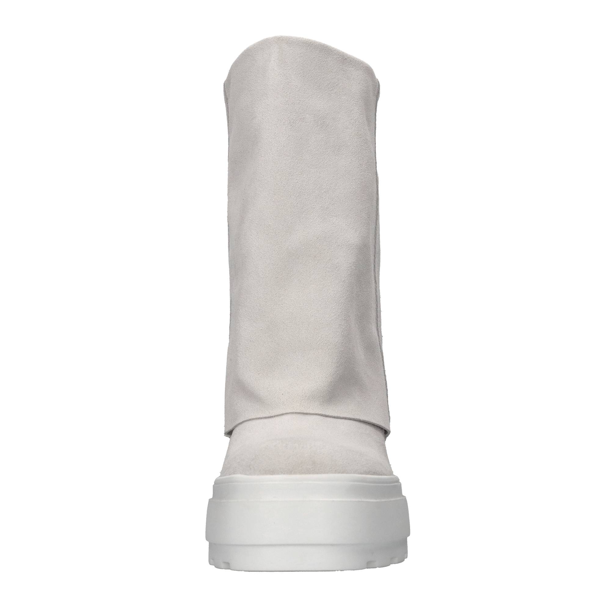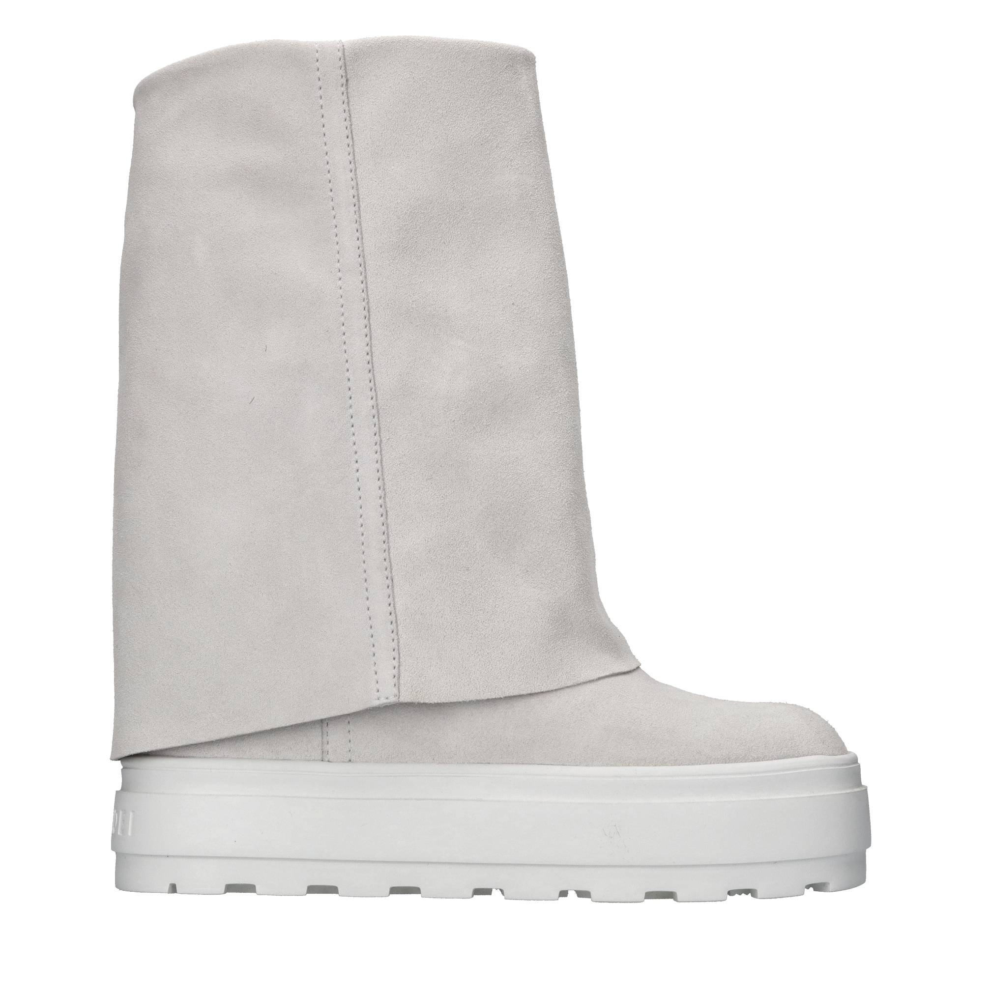 New Double Face suede ankle boots. Leather inner upper. Rubber sole. 8 cm internal wedge heel. Sample, shipped in a plain box. Minor imperfections.