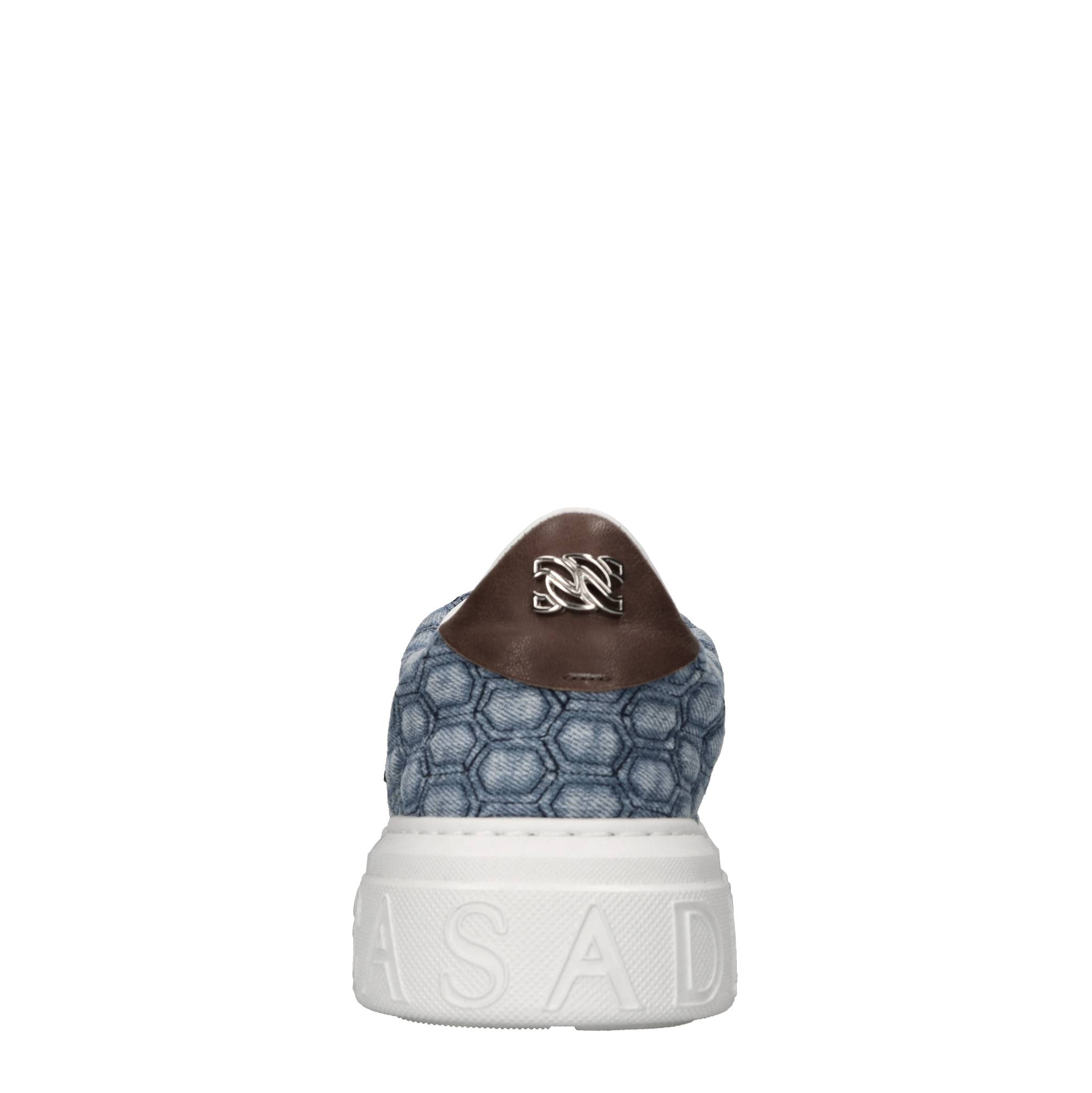 Off-road sneakers in denim and leather. Leather inner upper. Rubber sole.