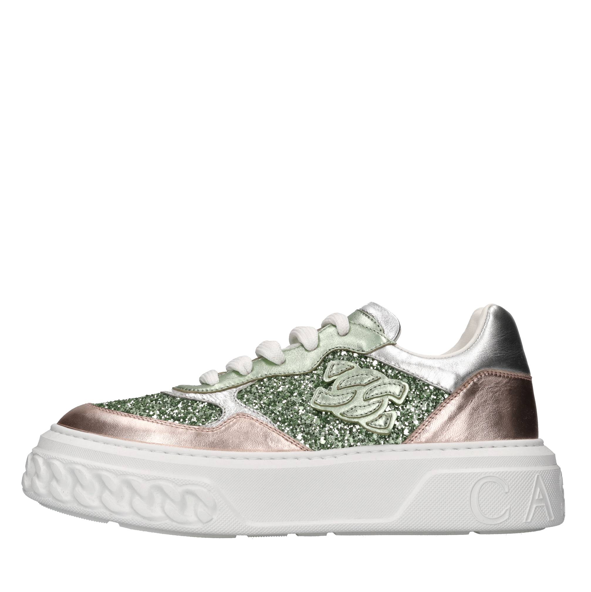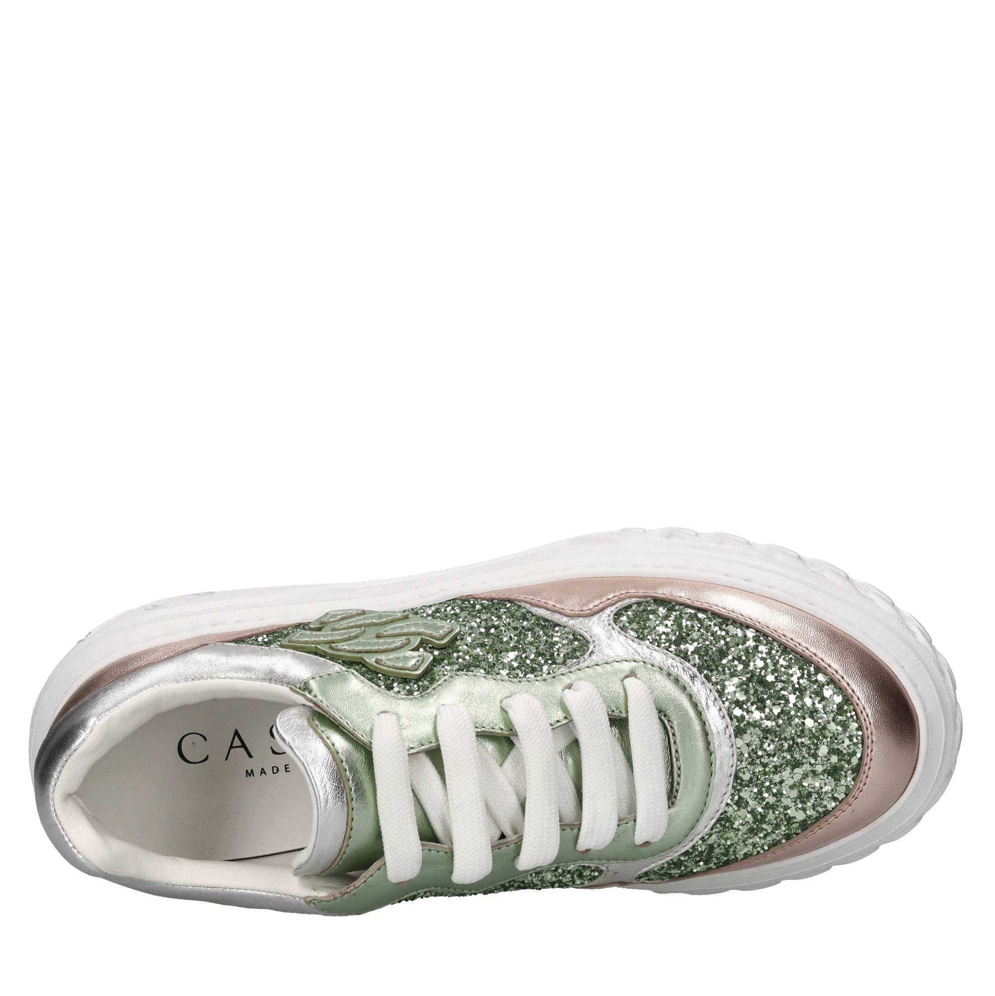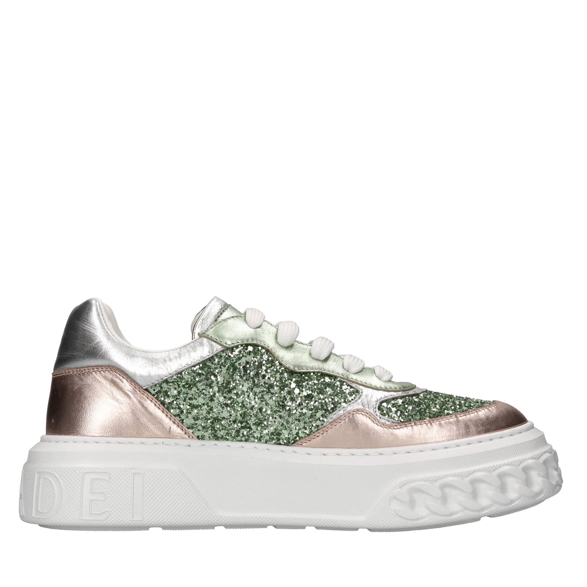 Off-road sneakers in leather and glitter. Leather inner upper. Rubber sole. Sample, shipped in a plain box. Minor imperfections.