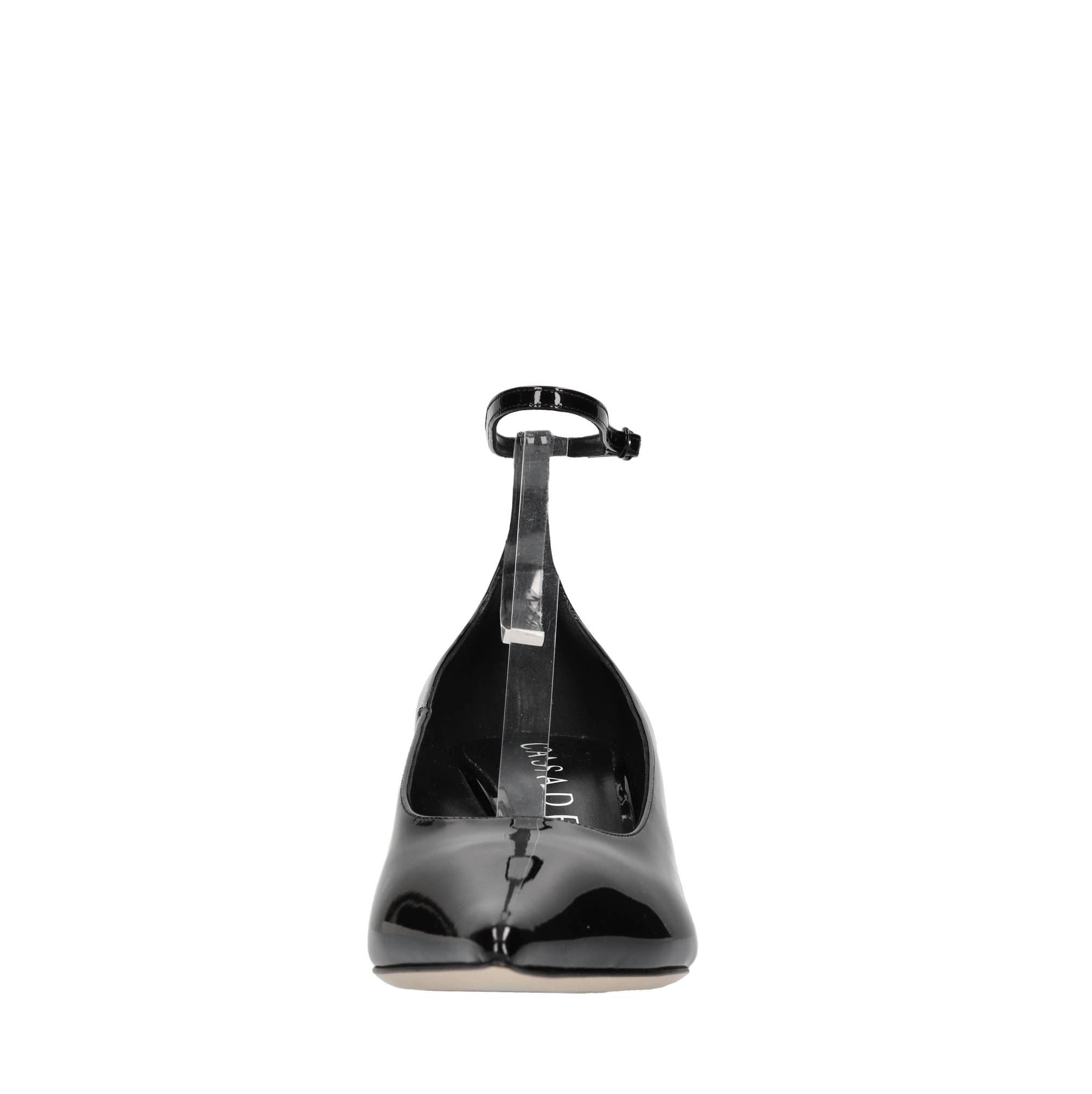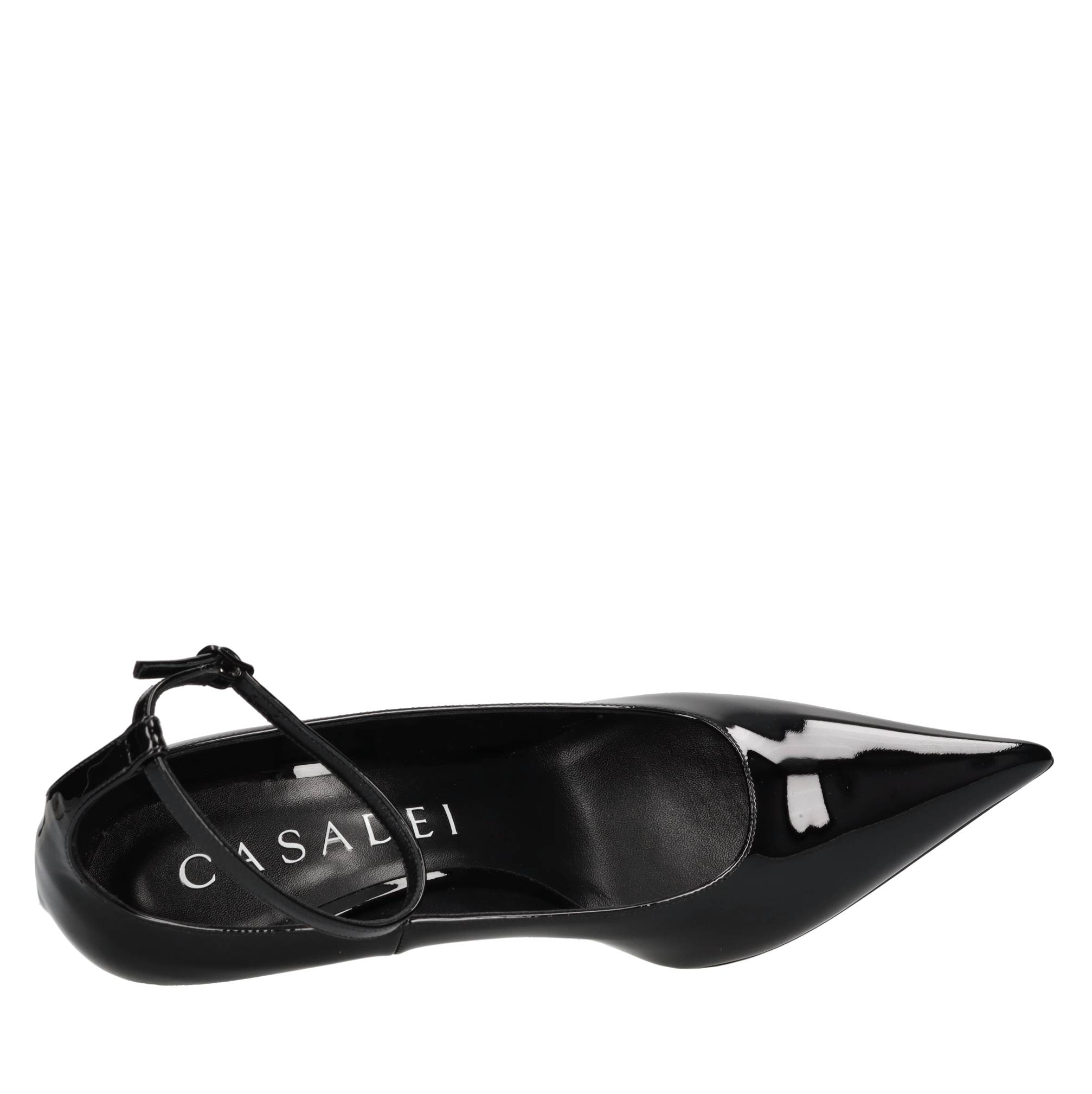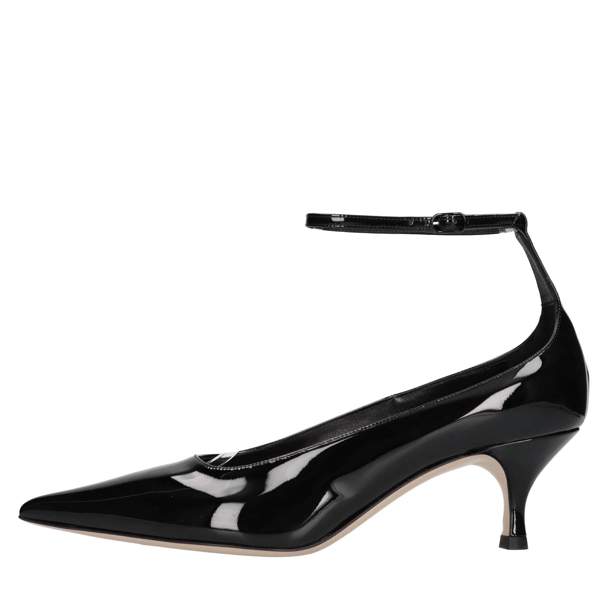 Patent leather pumps. Leather upper. Leather sole. Sample, shipped in a plain box. We do not recommend applying protective rubber to the sole. This alters the balance of the shoe and may cause the heel to break. Any repairs to damage caused by this modification, if required, will be at the customer's expense.