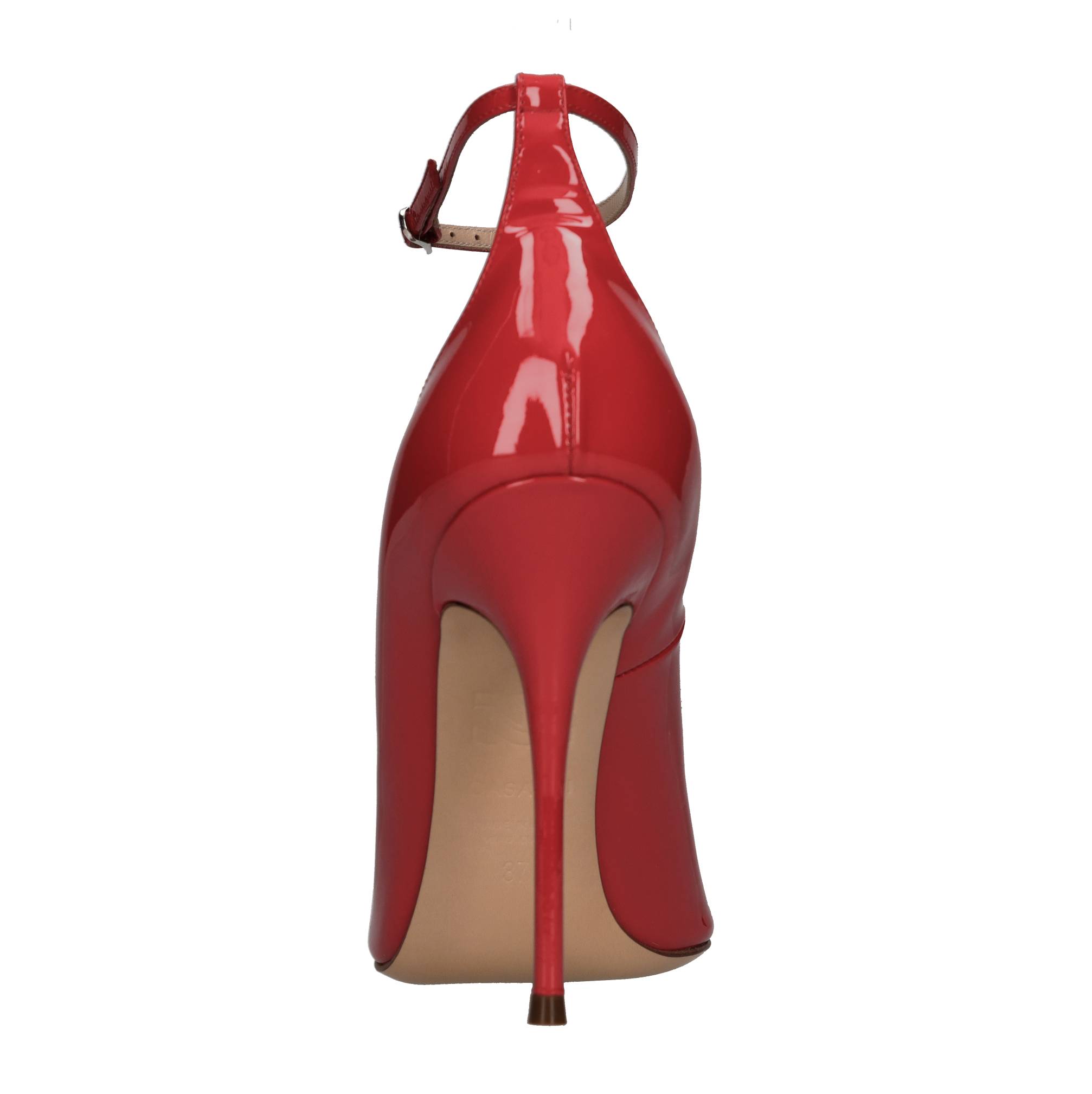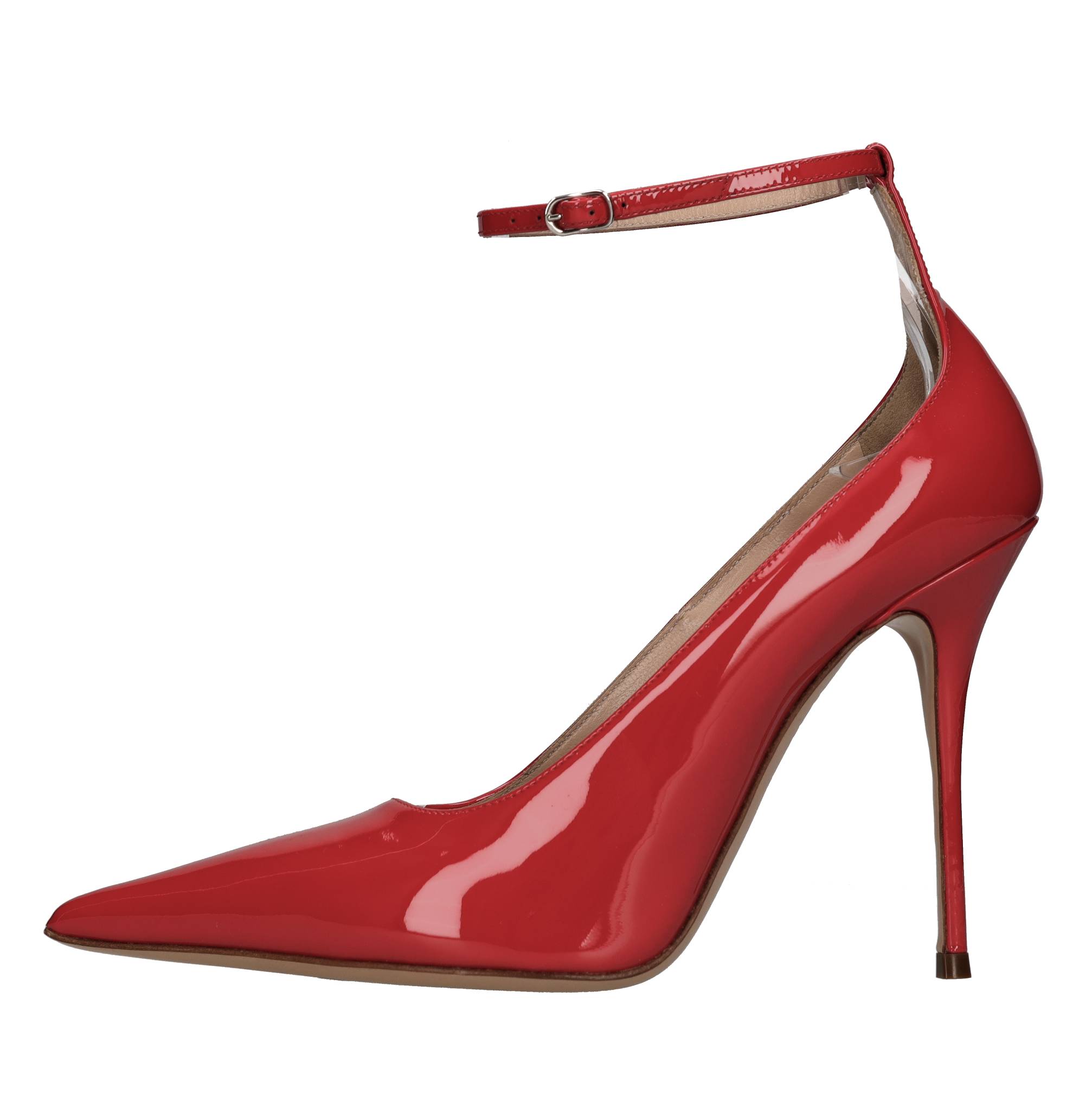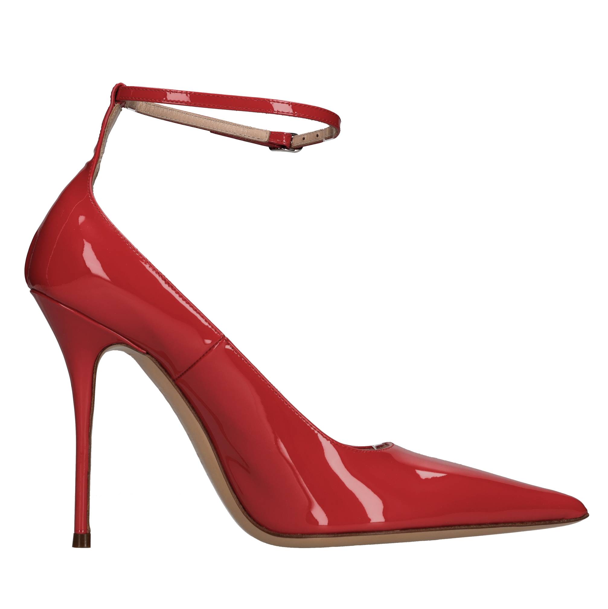 Patent leather pumps. Leather upper. Leather sole. Sample, shipped in a plain box. We do not recommend applying protective rubber to the sole. This alters the balance of the shoe and may cause the heel to break. Any repairs to damage caused by this modification, if required, will be at the customer's expense.