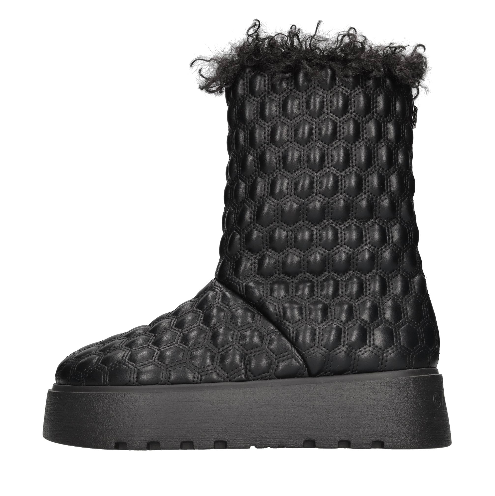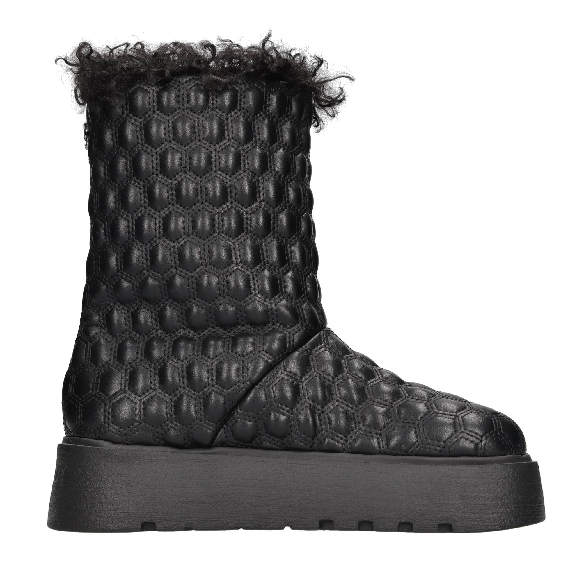 Quilted faux leather ankle boots. Faux fur inner upper. Rubber sole. Samples shipped in a plain box.