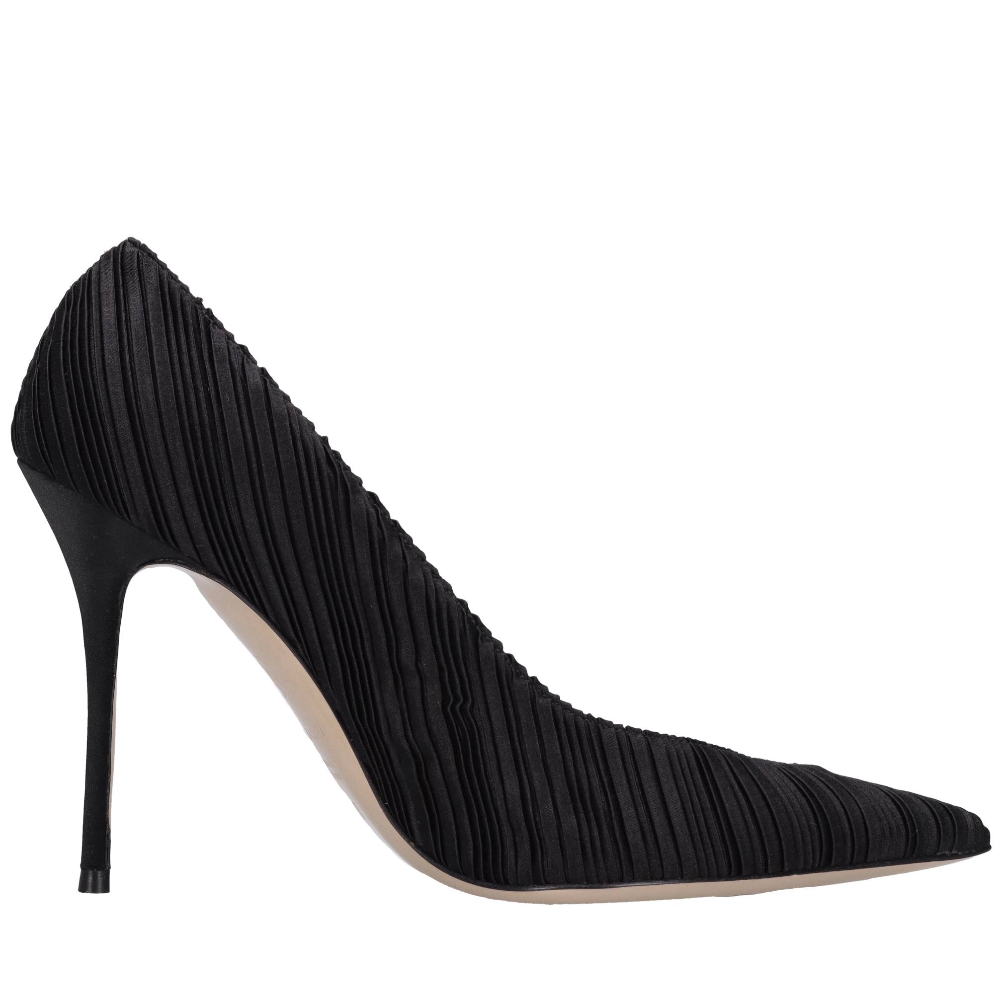 Satin pumps. Leather insole. Leather outer sole. Sample. Small imperfections on outer sole. Shipped on neutral box. We do not recommend applying protective rubber to the sole. This alters the balance of the shoe and may cause the heel to break. Any repairs to damage caused by this modification, if required, will be at the customer's expense.