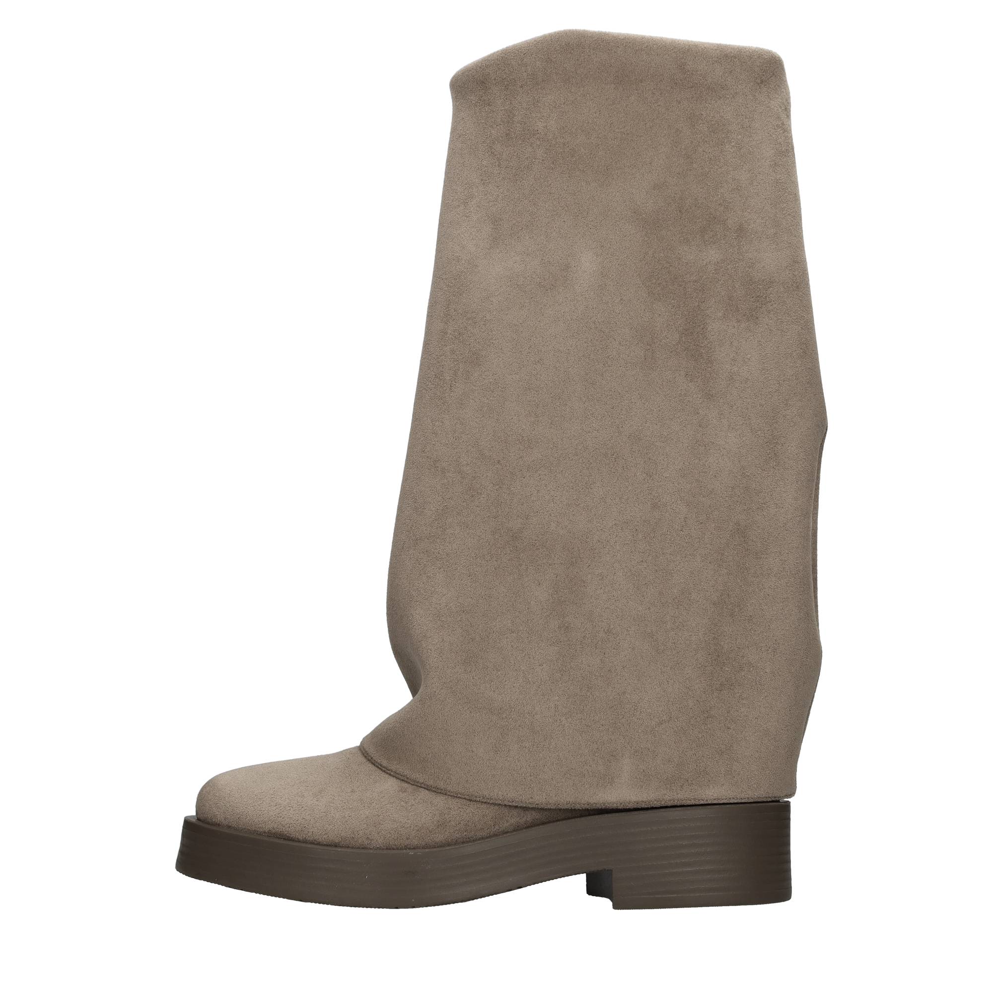 Stretch eco-suede boots. Leather and eco-leather upper. Rubber sole. Samples shipped in a plain box.