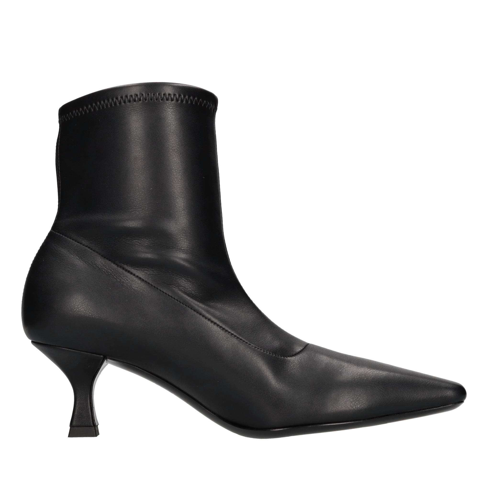 Stretch faux leather ankle boots. Leather and faux leather upper. Leather sole. Samples shipped in a plain box.