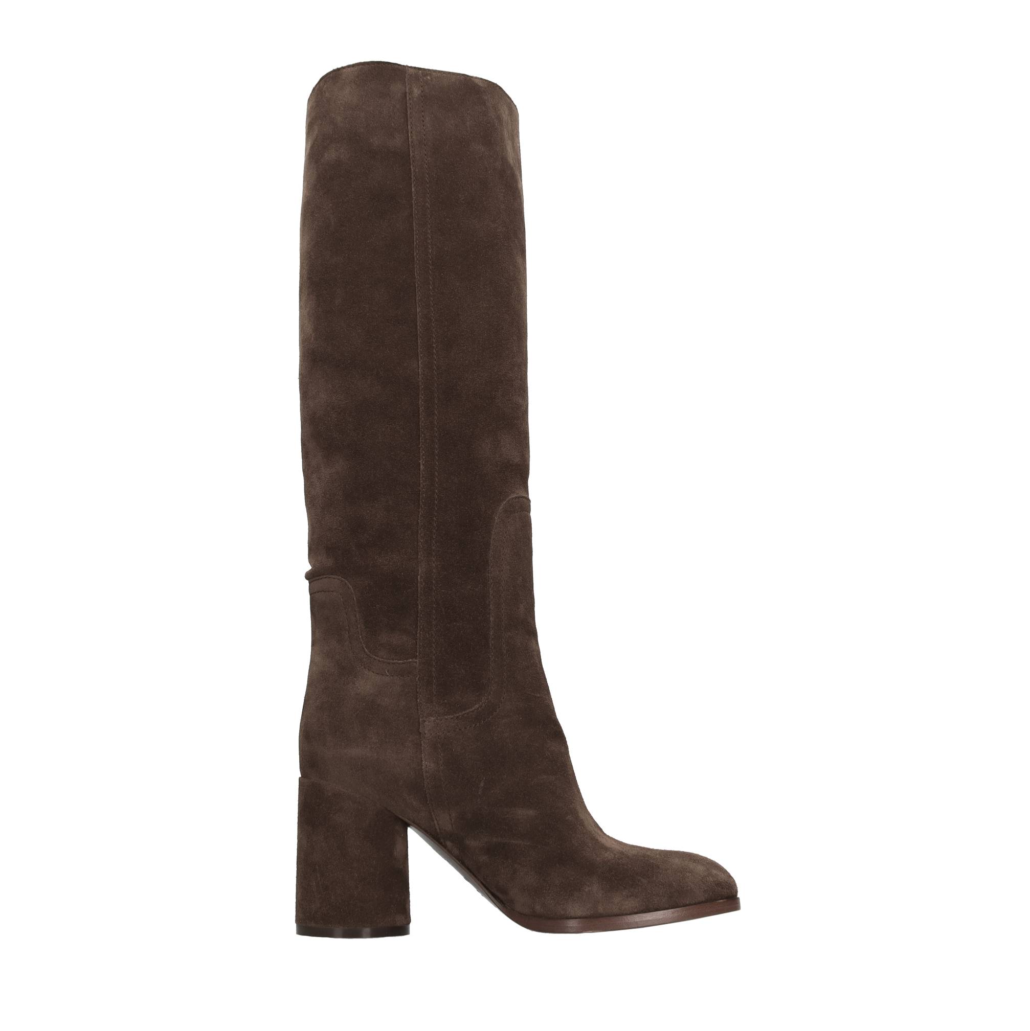 Suede boots. Leather inner upper. Leather sole. Samples shipped in a plain box.