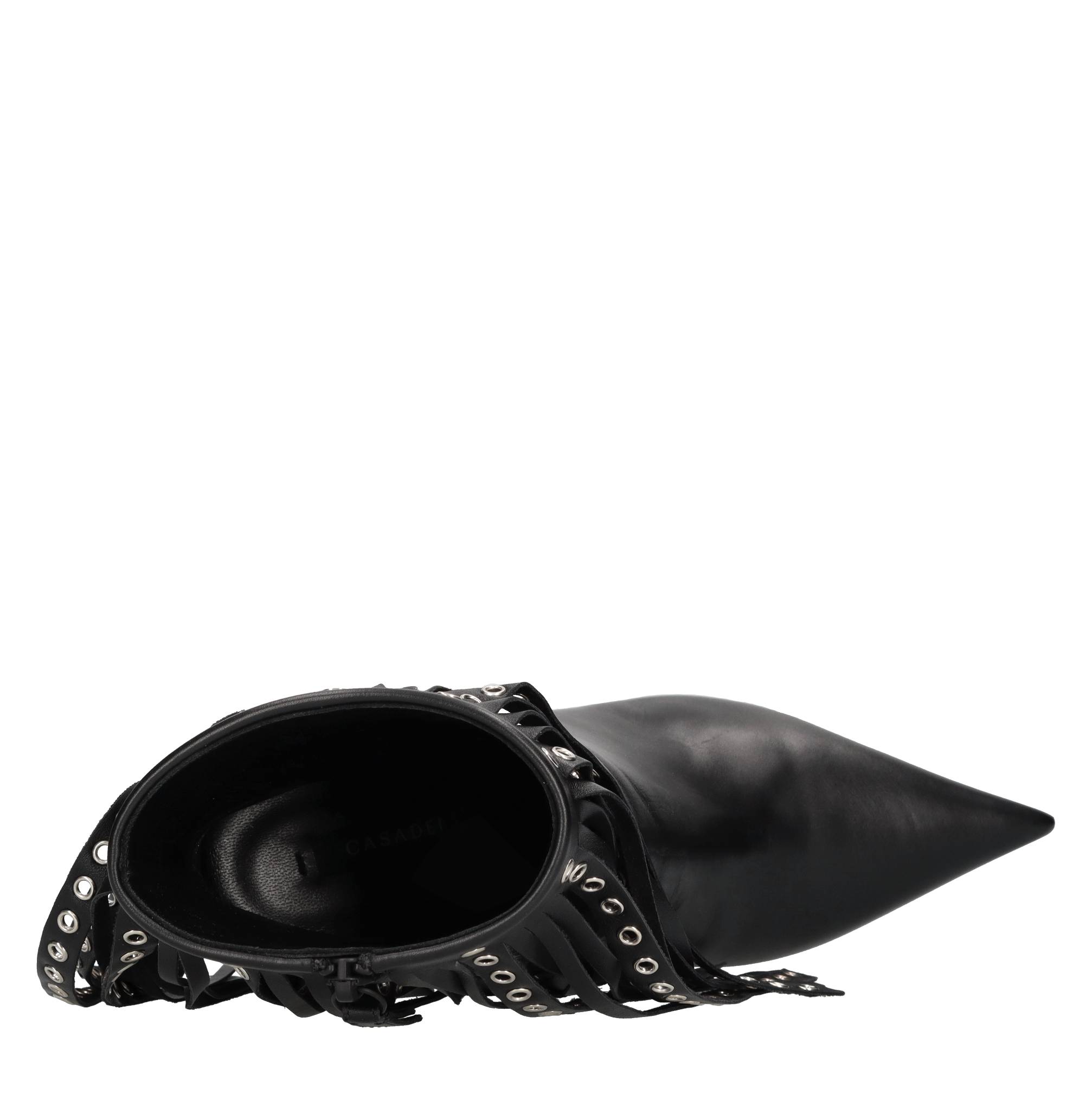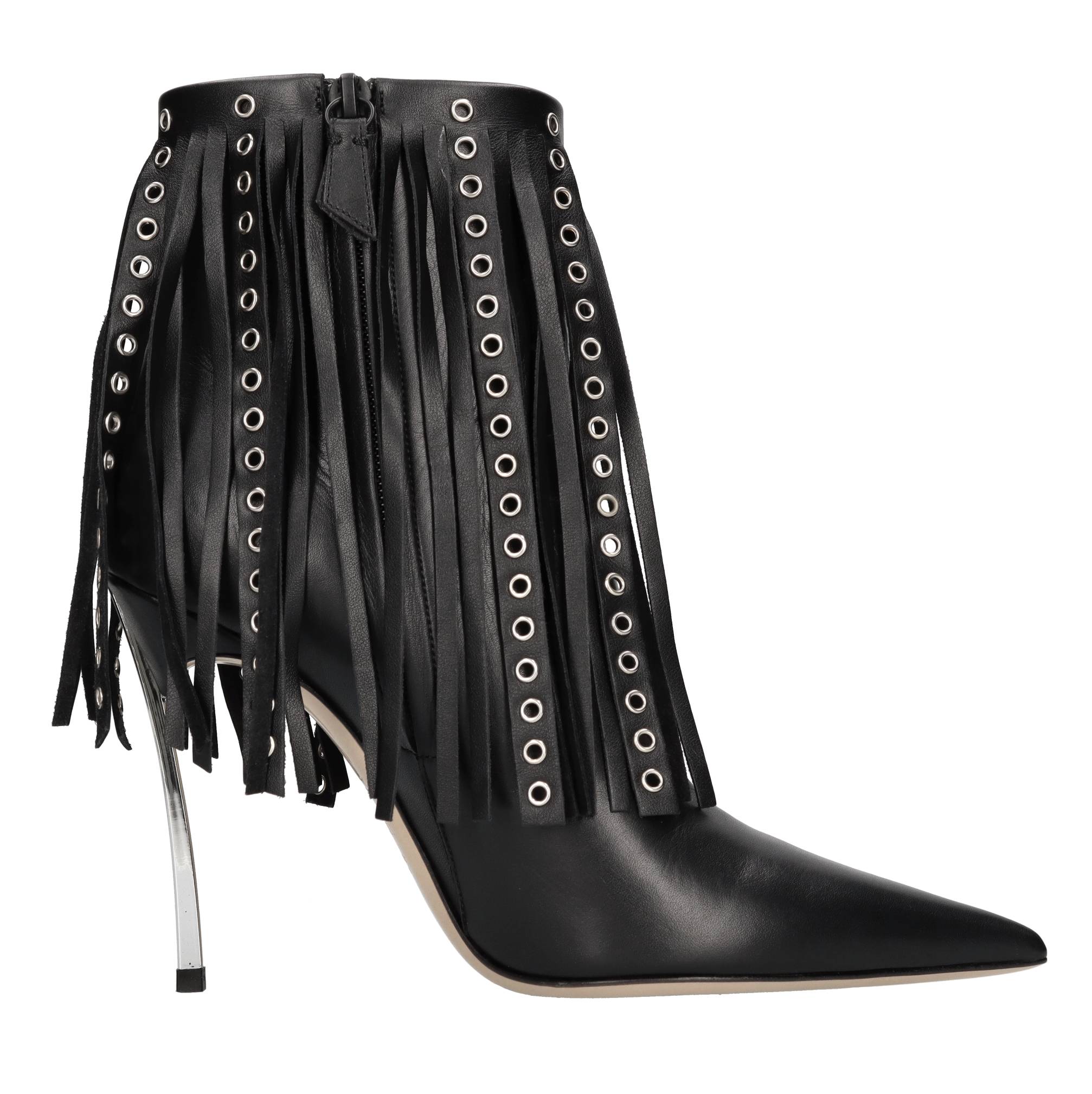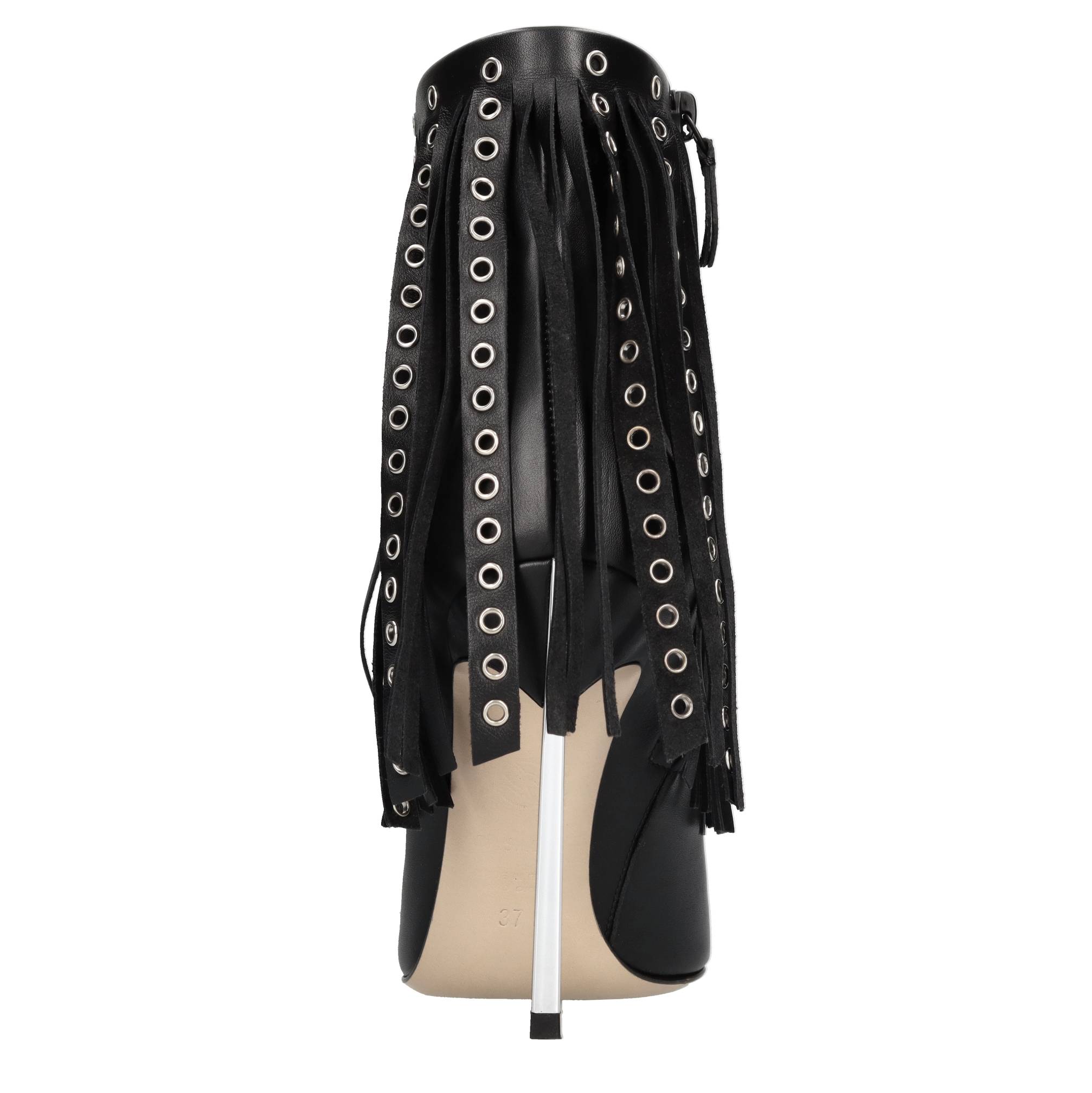 Superblade ankle boots in leather with silver perforated studs. Leather upper. Leather sole. Sample, shipped in a plain box. We do not recommend applying protective rubber to the sole. This alters the balance of the shoe and may cause the heel to break. Any repairs to damage caused by this modification will be at the customer's expense.