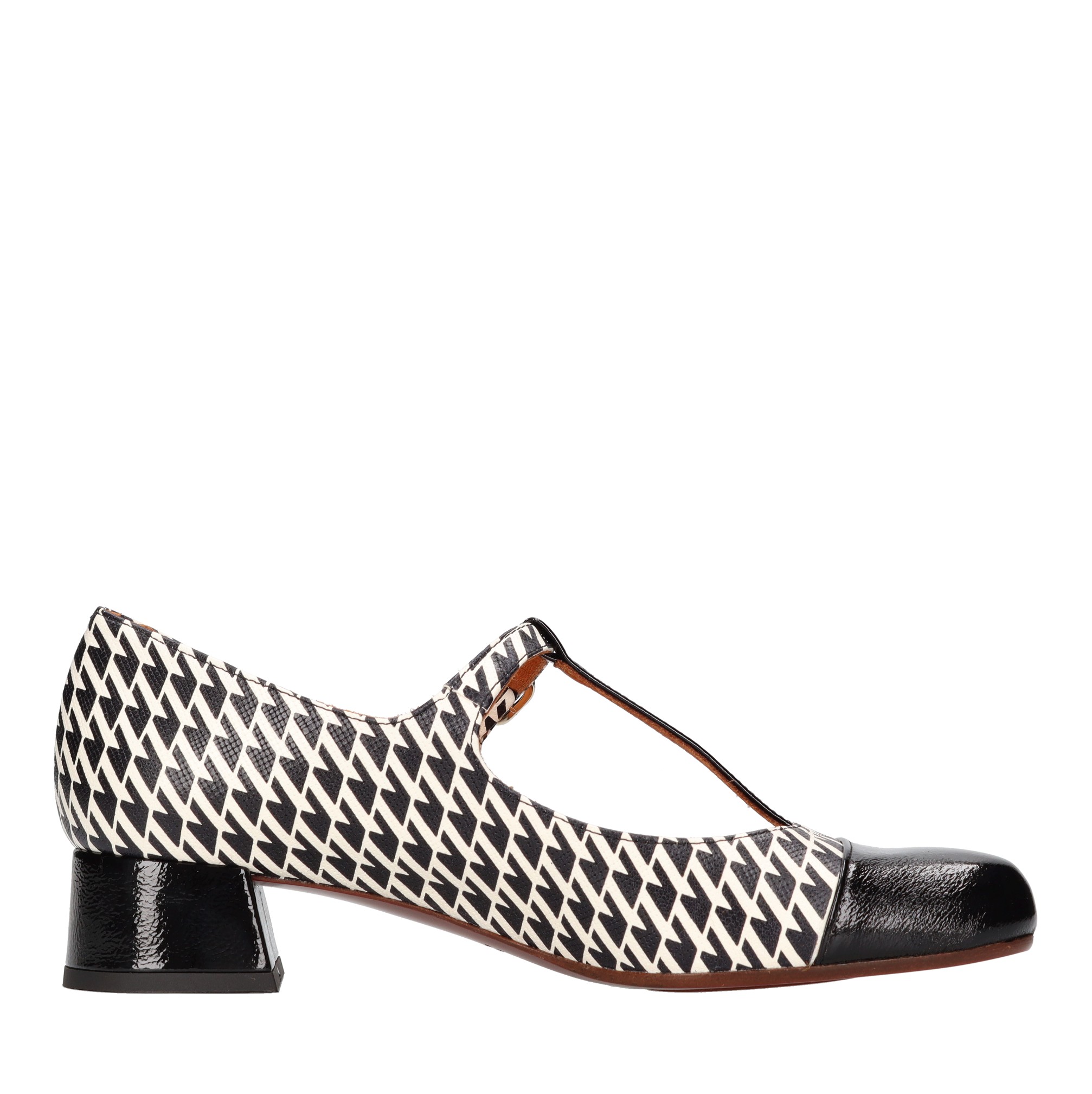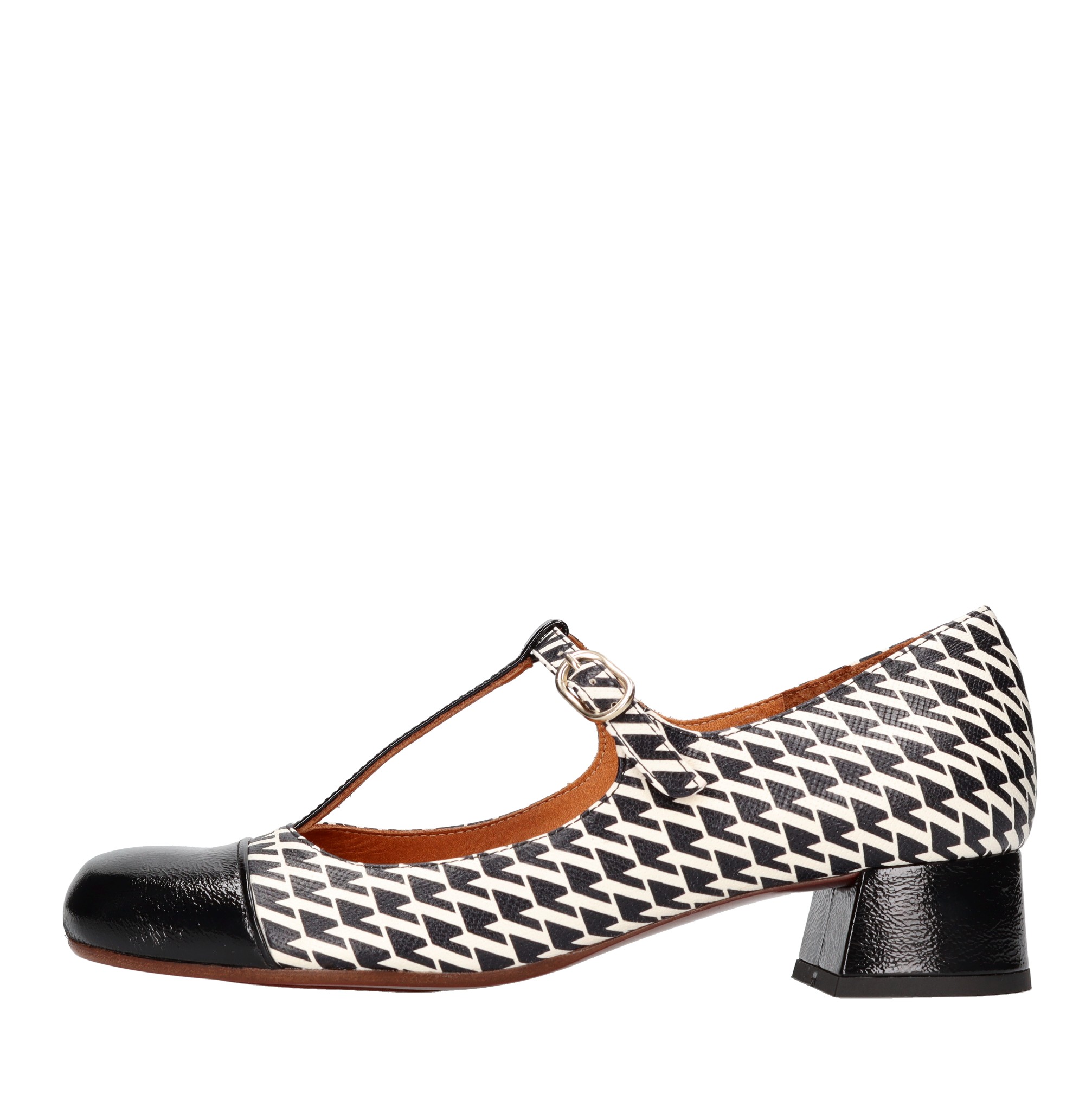 REVITA45 model décolleté in leather with geometric pattern. Leather lined heel. Leather outsole with a piece of non-slip rubber. Internal leather upper.