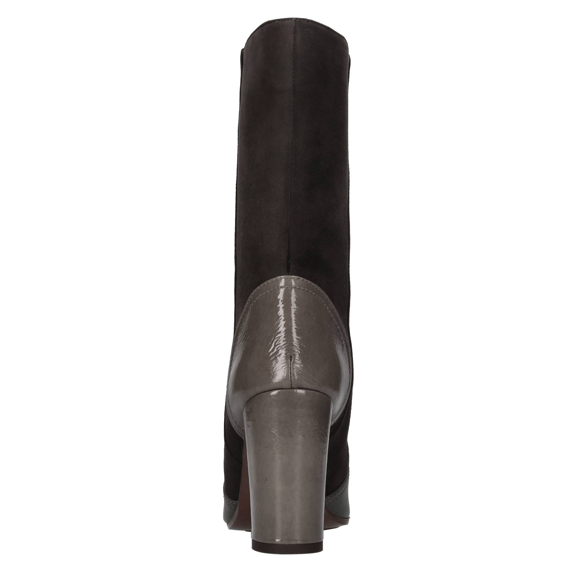 Suede and leather ankle boots. Leather inner upper. Leather and rubber outer sole.