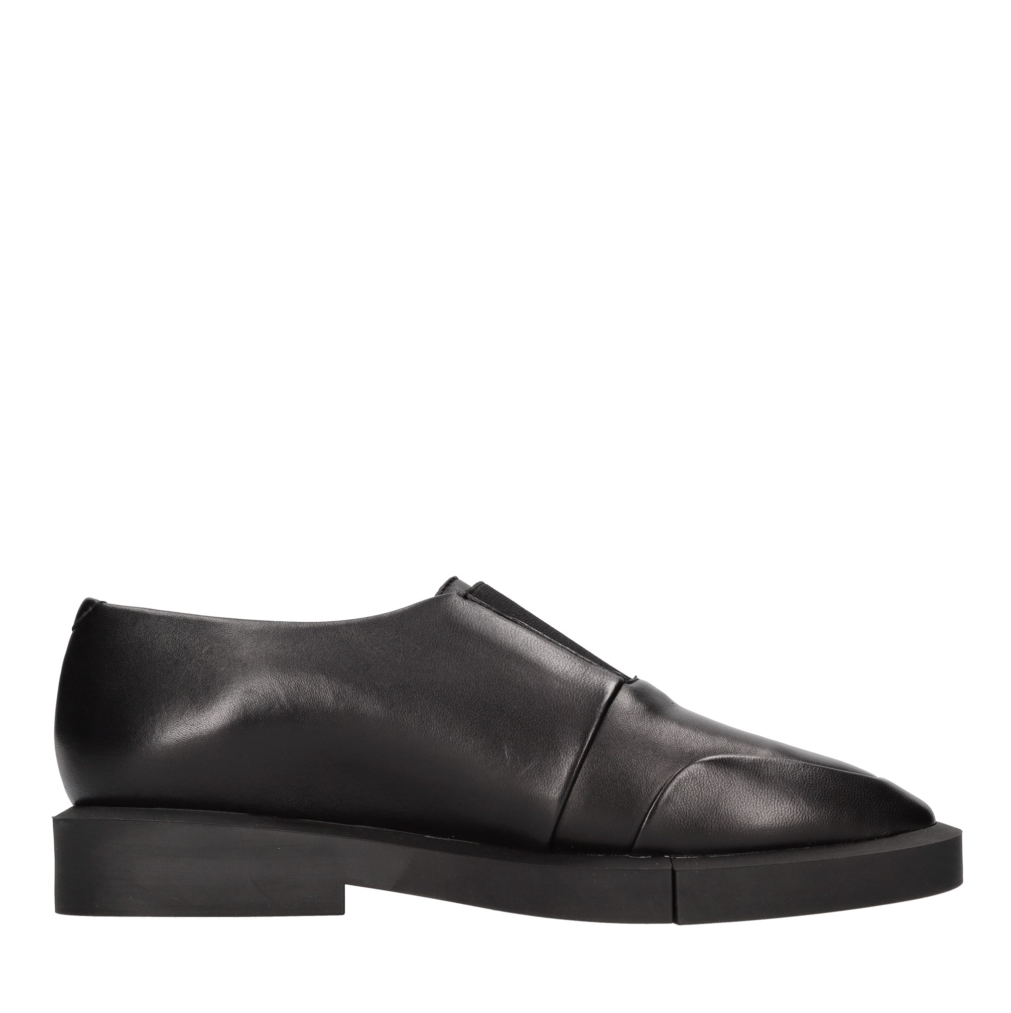 Leather moccasins. Front elastic. Rubber outsole. Leather upper and insole.