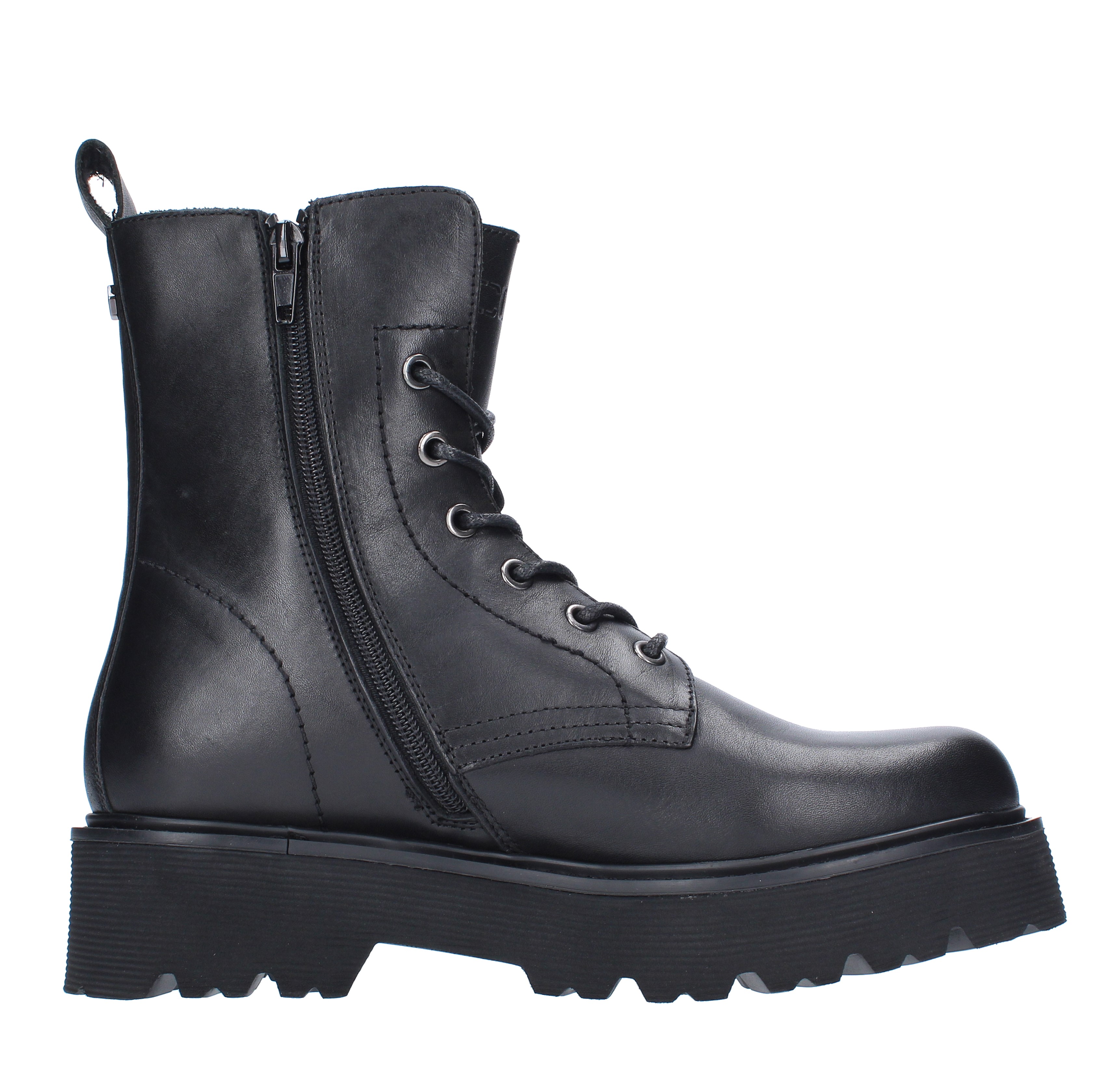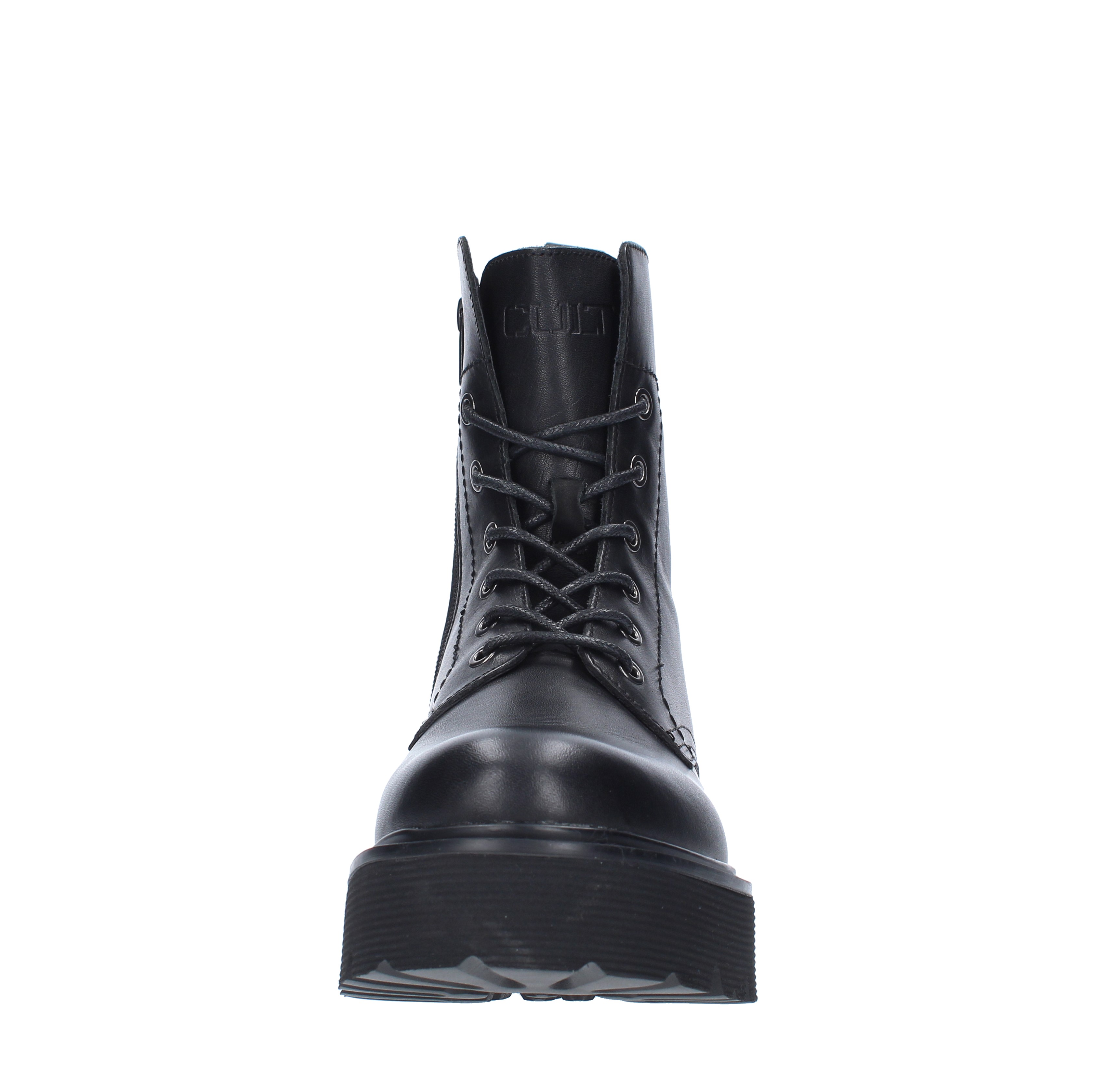 Ankle boots model CLE103130 in leather. Front closure with laces and side zip. Platform 3,5cm. Rubber outsole. Leather innersole.