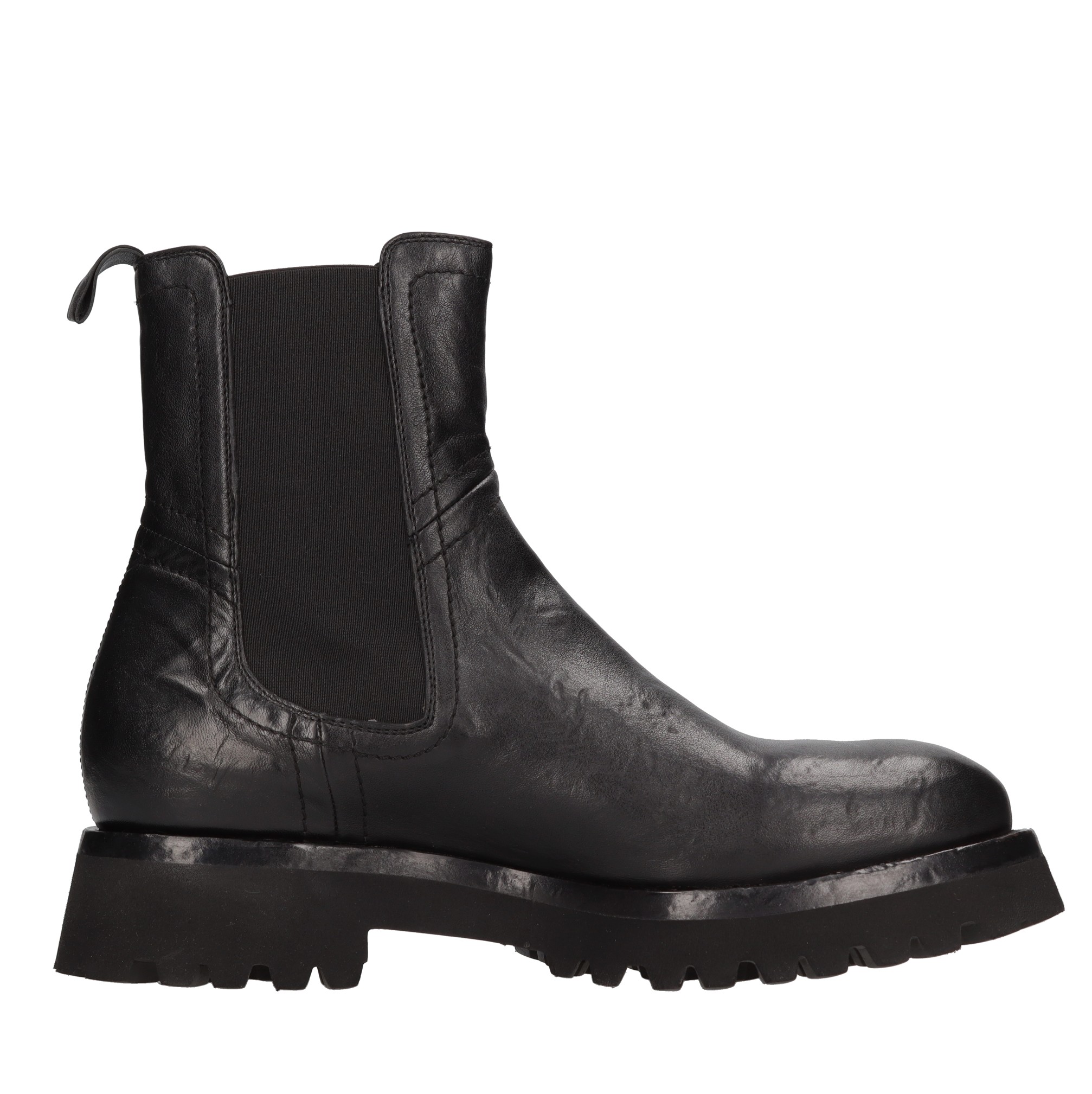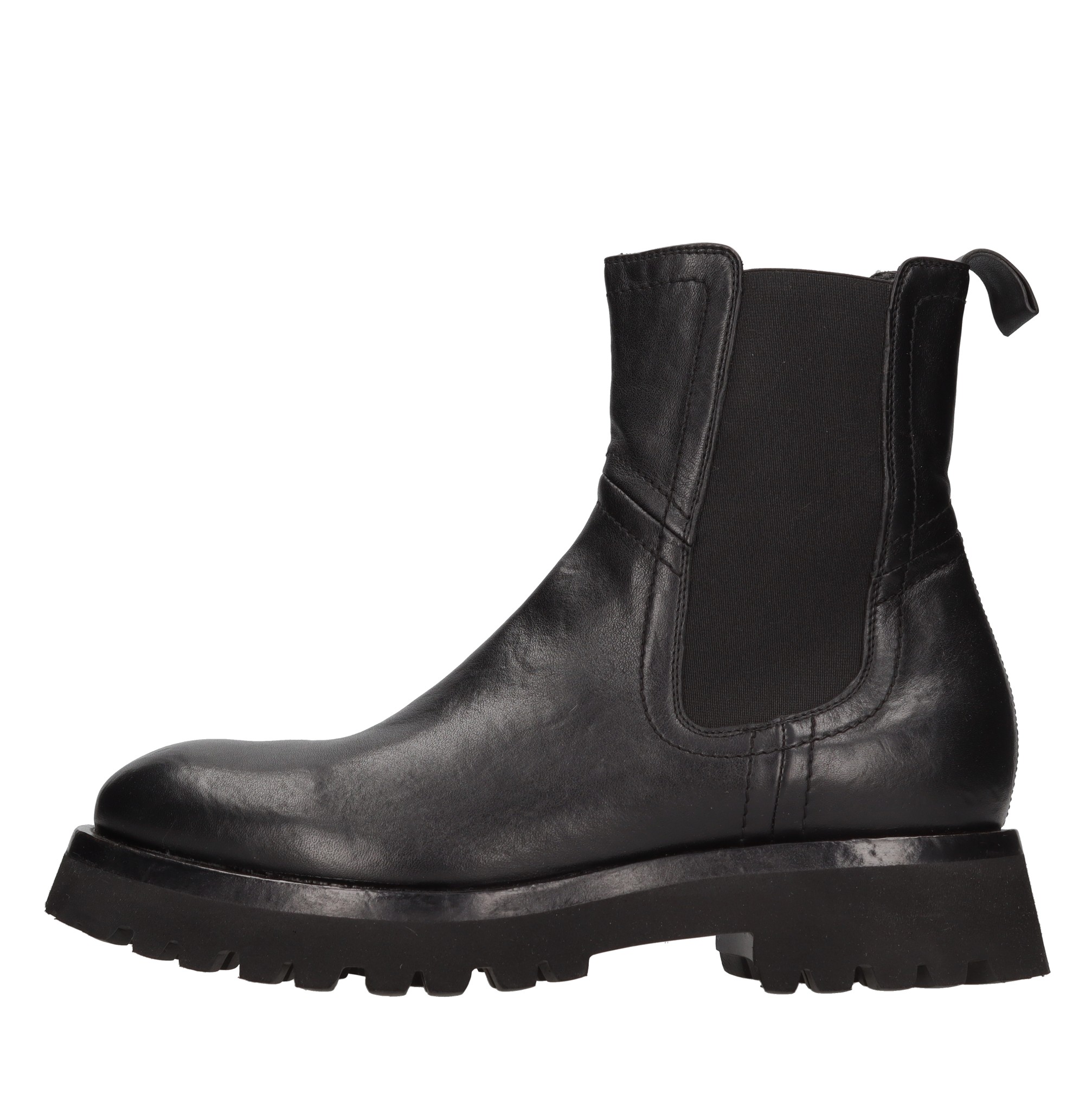 Leather Beatles ankle boots. Side elastics. Internal leather upper. Rubber outer sole.