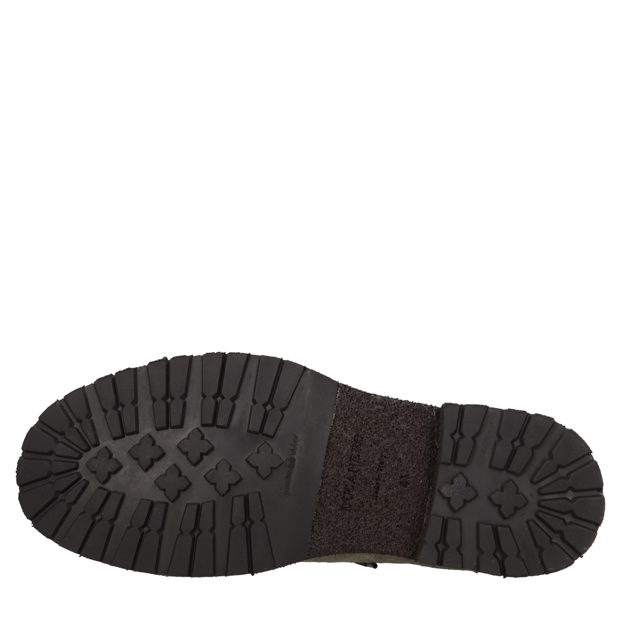 Suede ankle boots. Internal leather upper. Rubber outer sole.