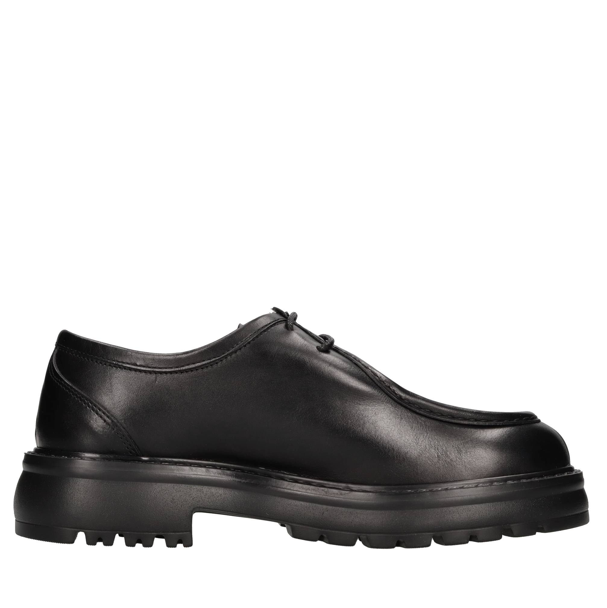 Leather lace-ups. Leather inner upper. Leather and rubber outer sole. Shipped in a plain box.