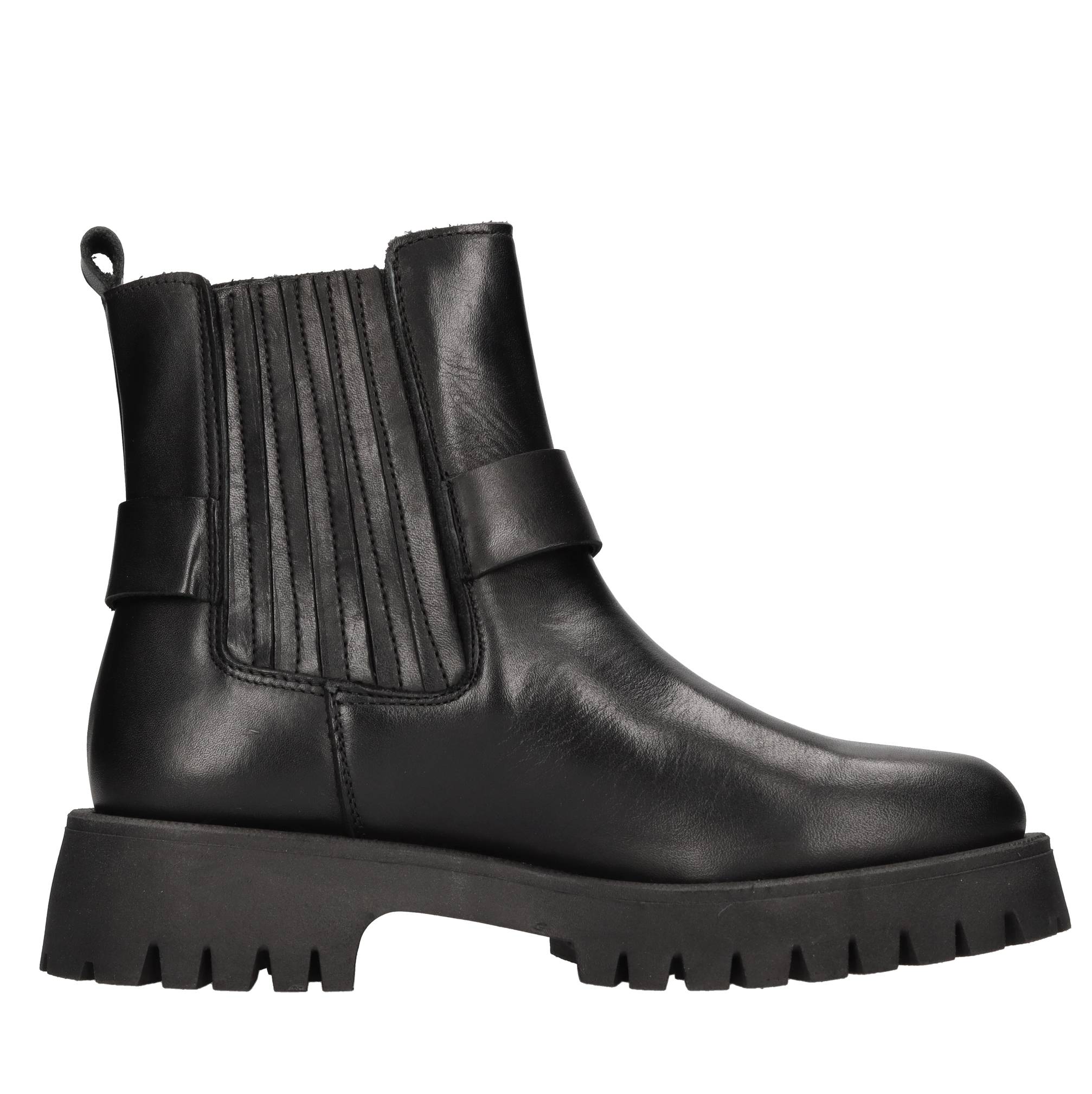 Leather ankle boots. Faux leather upper. Rubber outsole.
