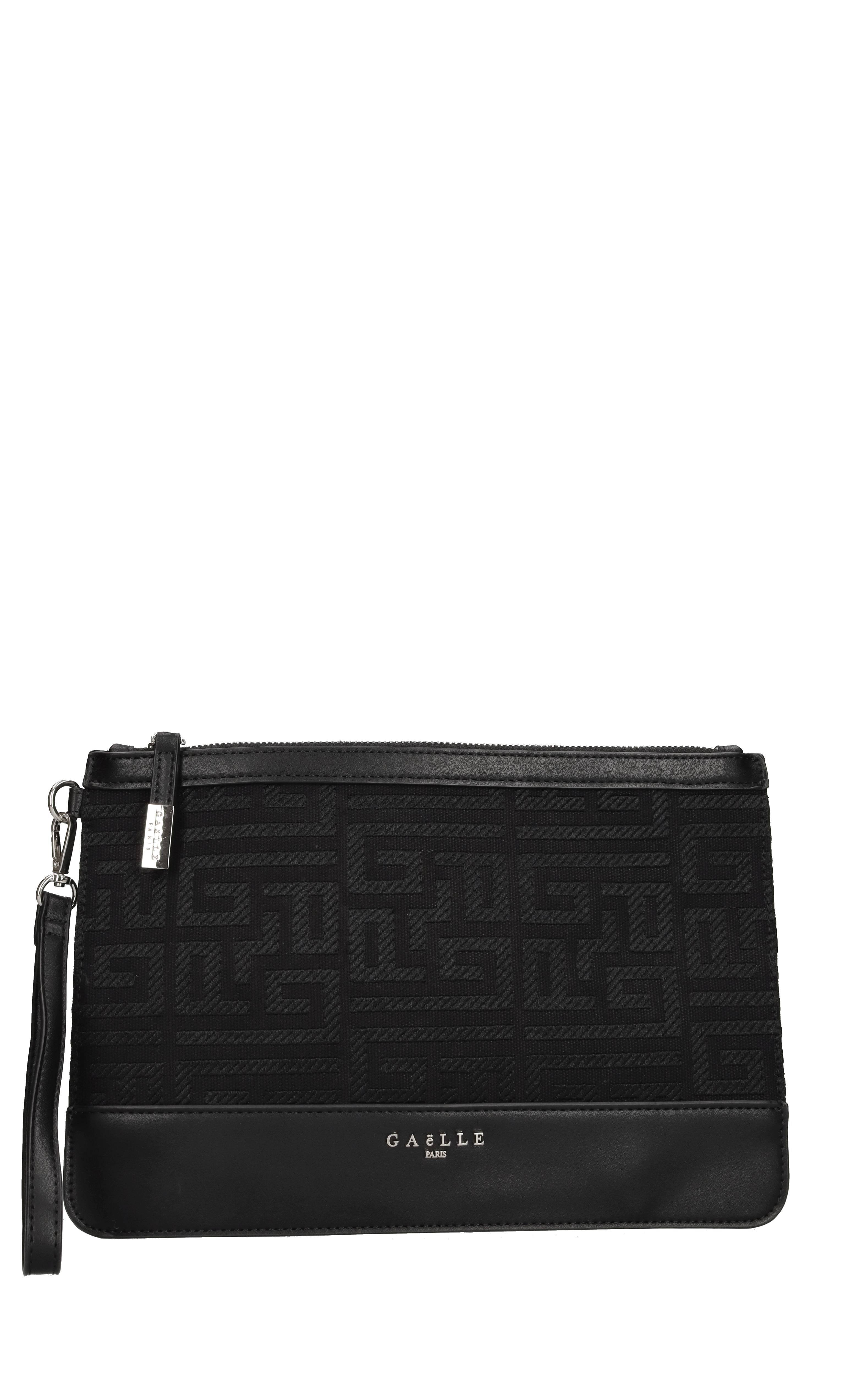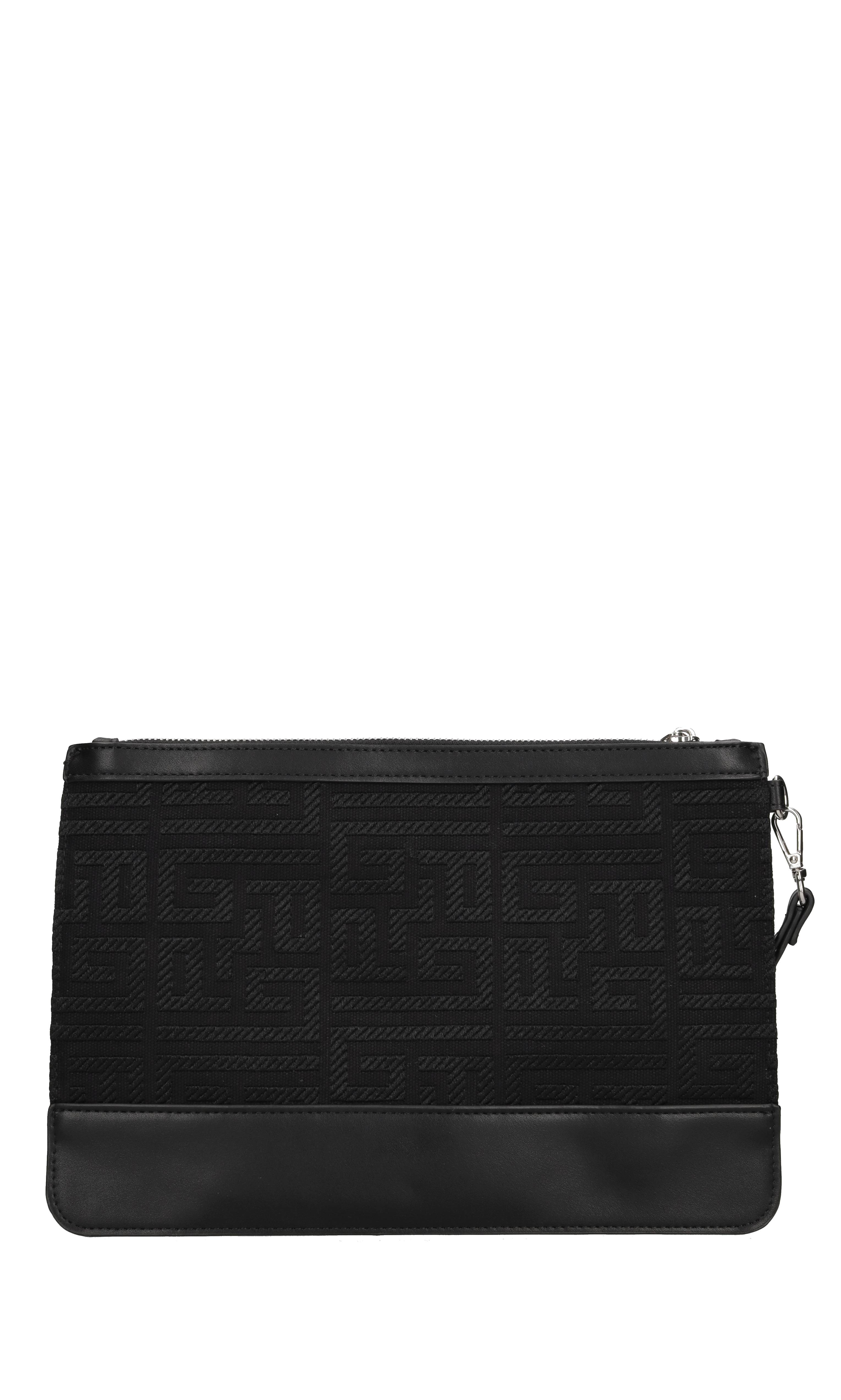 Faux leather and fabric bag. 1 compartment. Zip closure. Removable wrist strap.