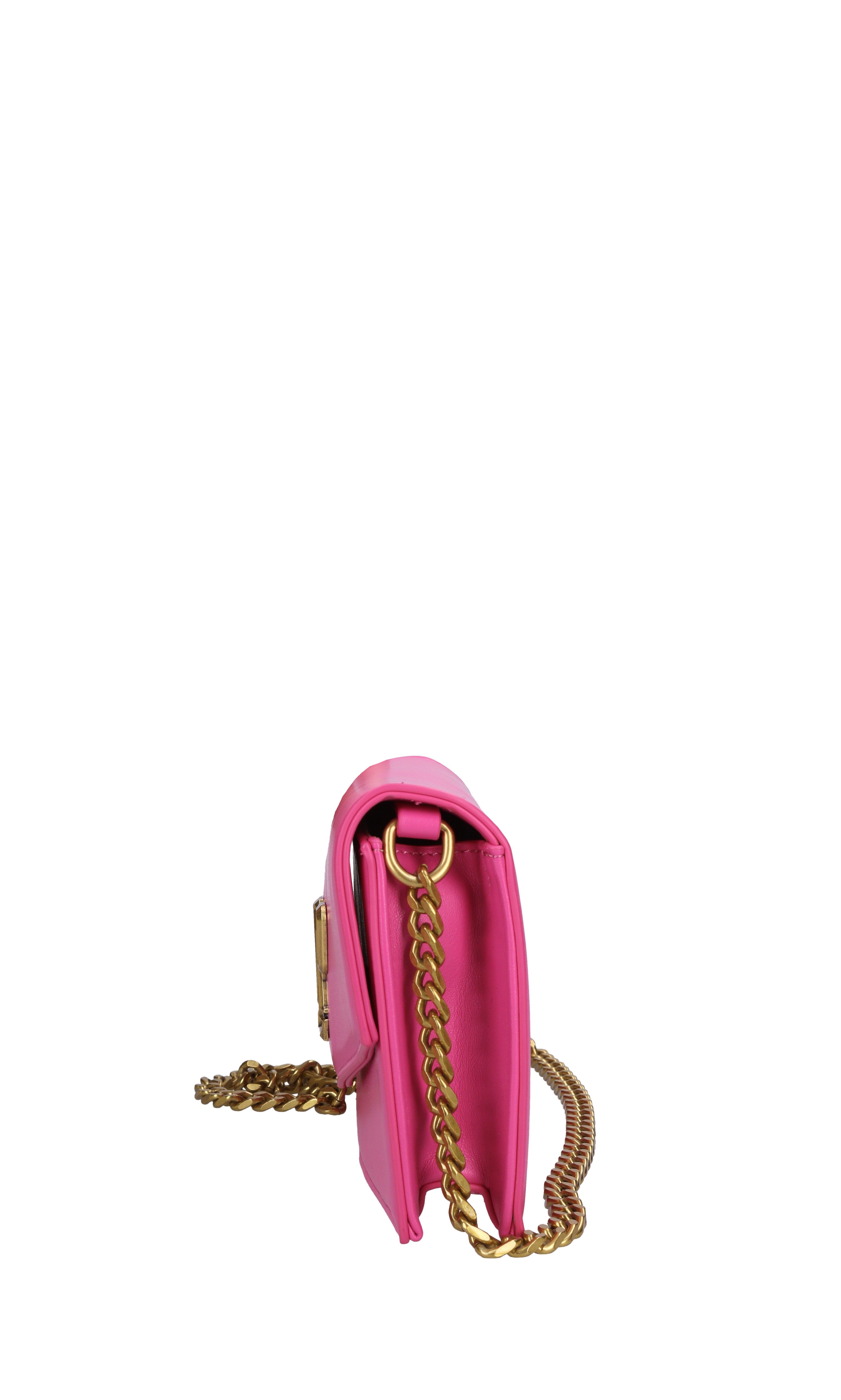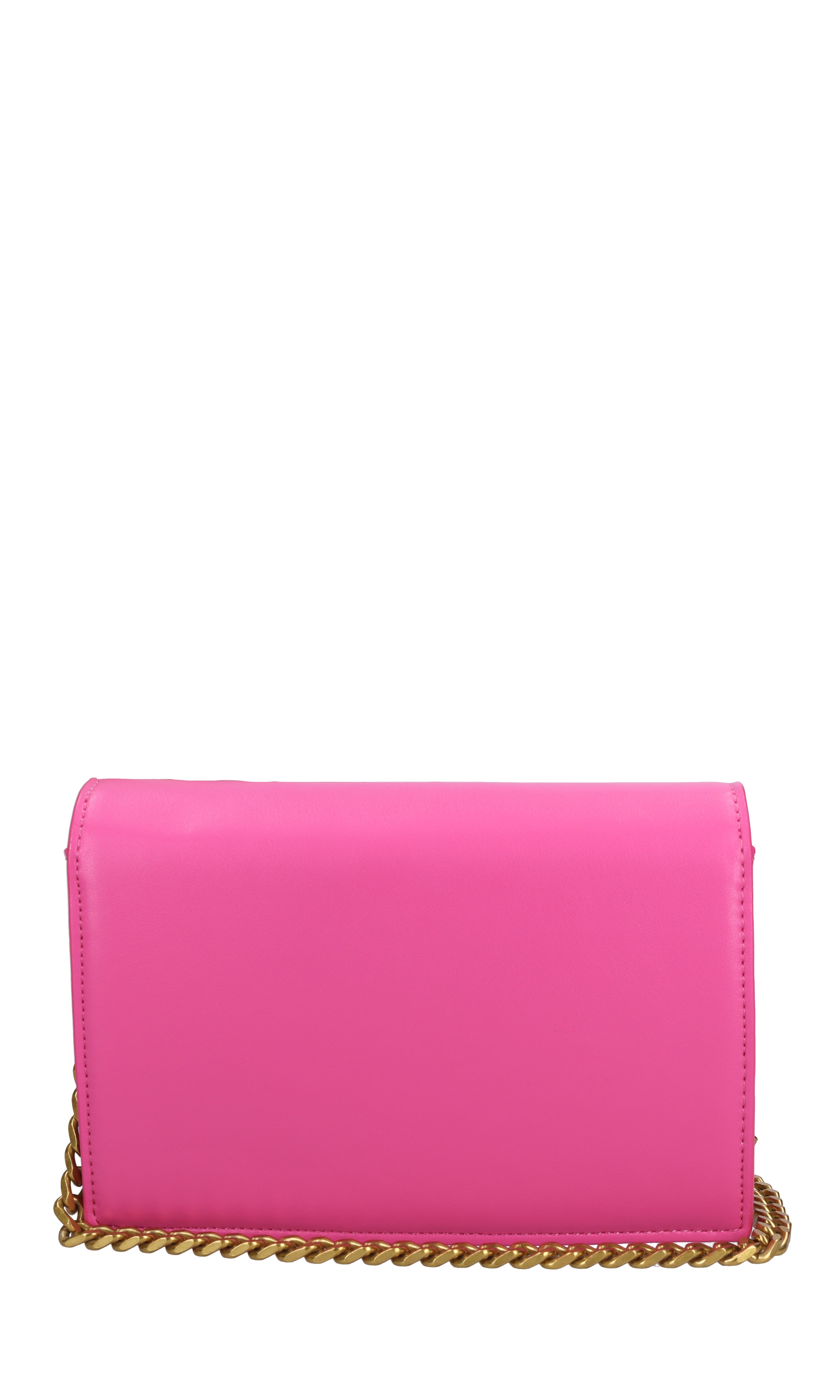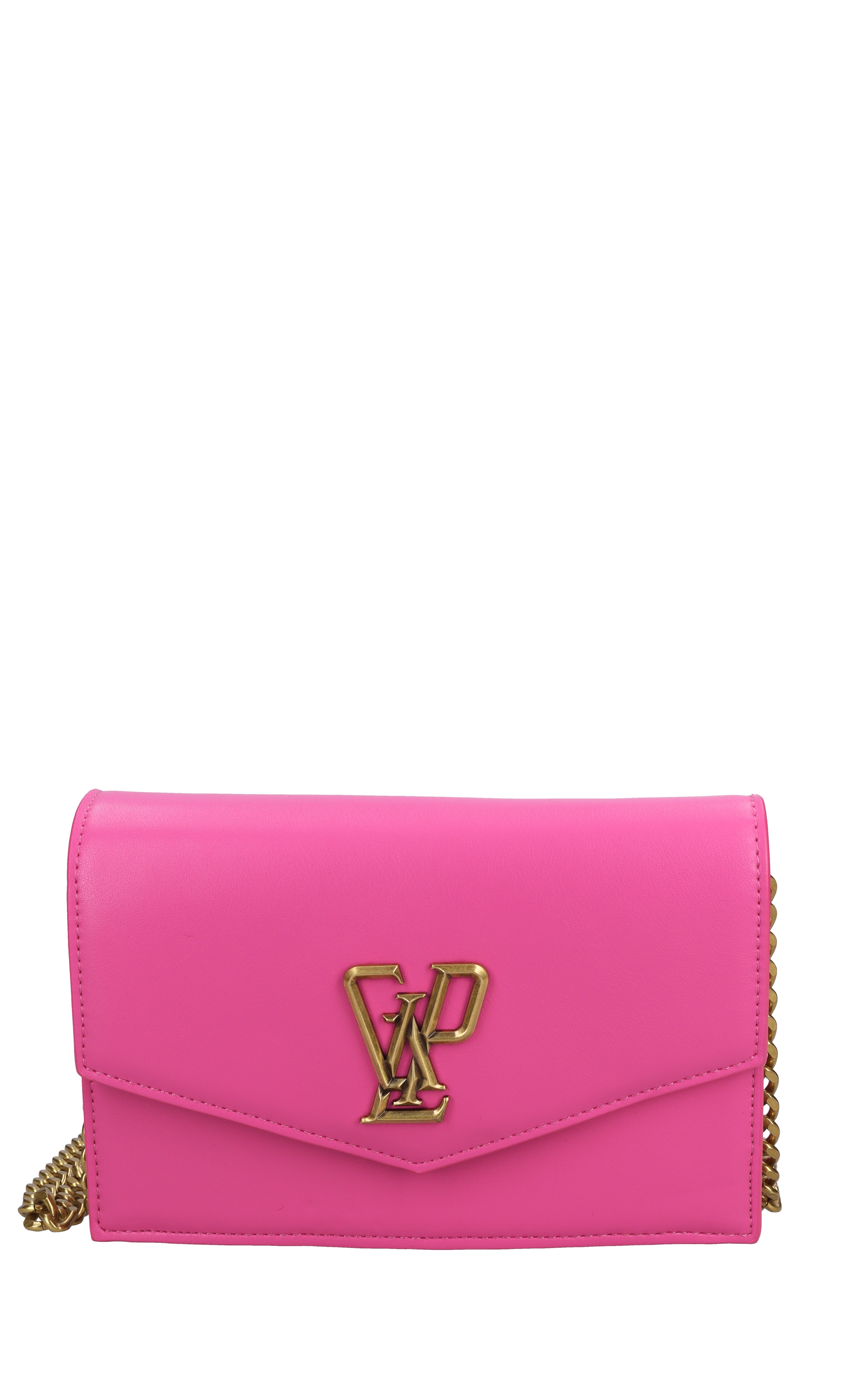 Faux leather bag. 1 Compartment. Flap with snap button closure. Golden chain shoulder strap.