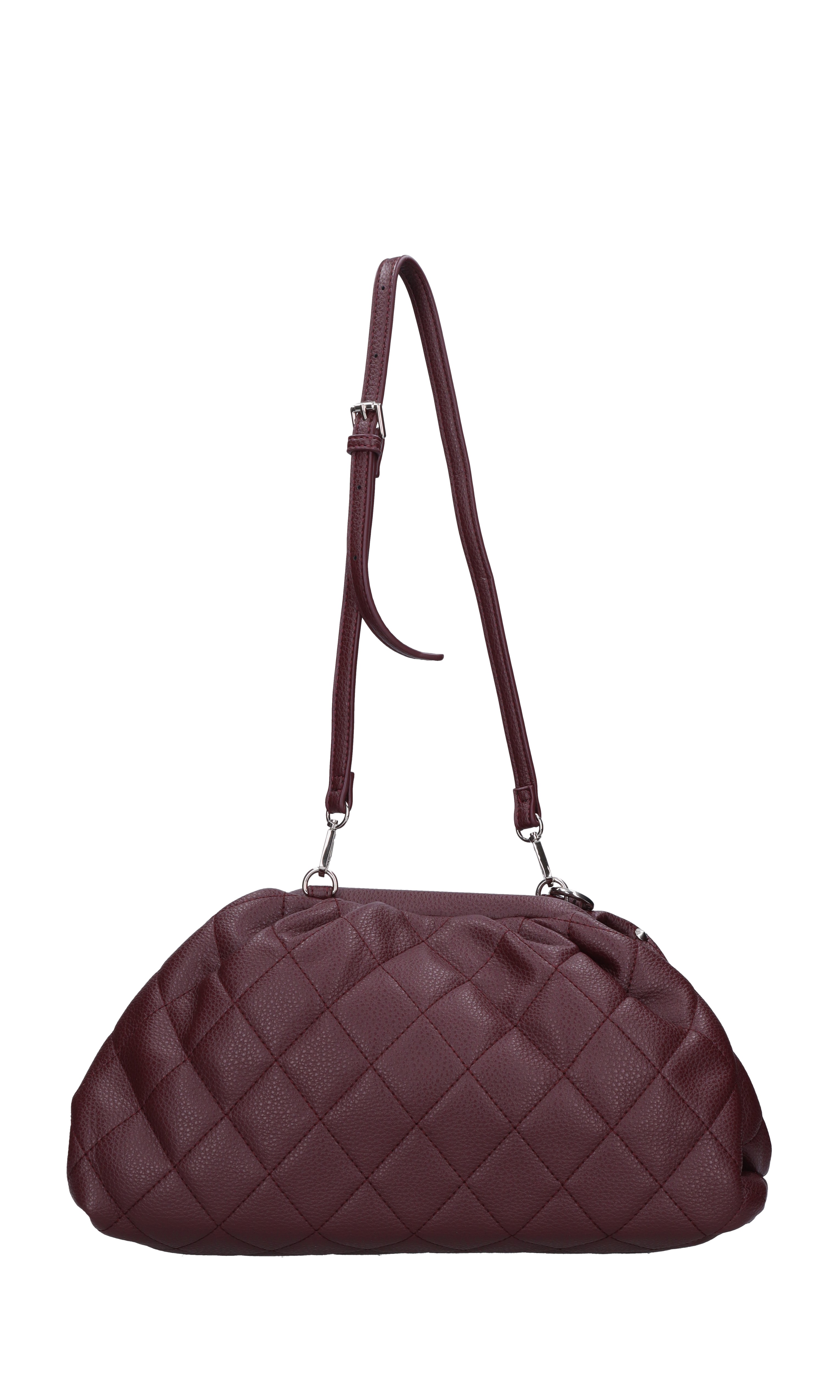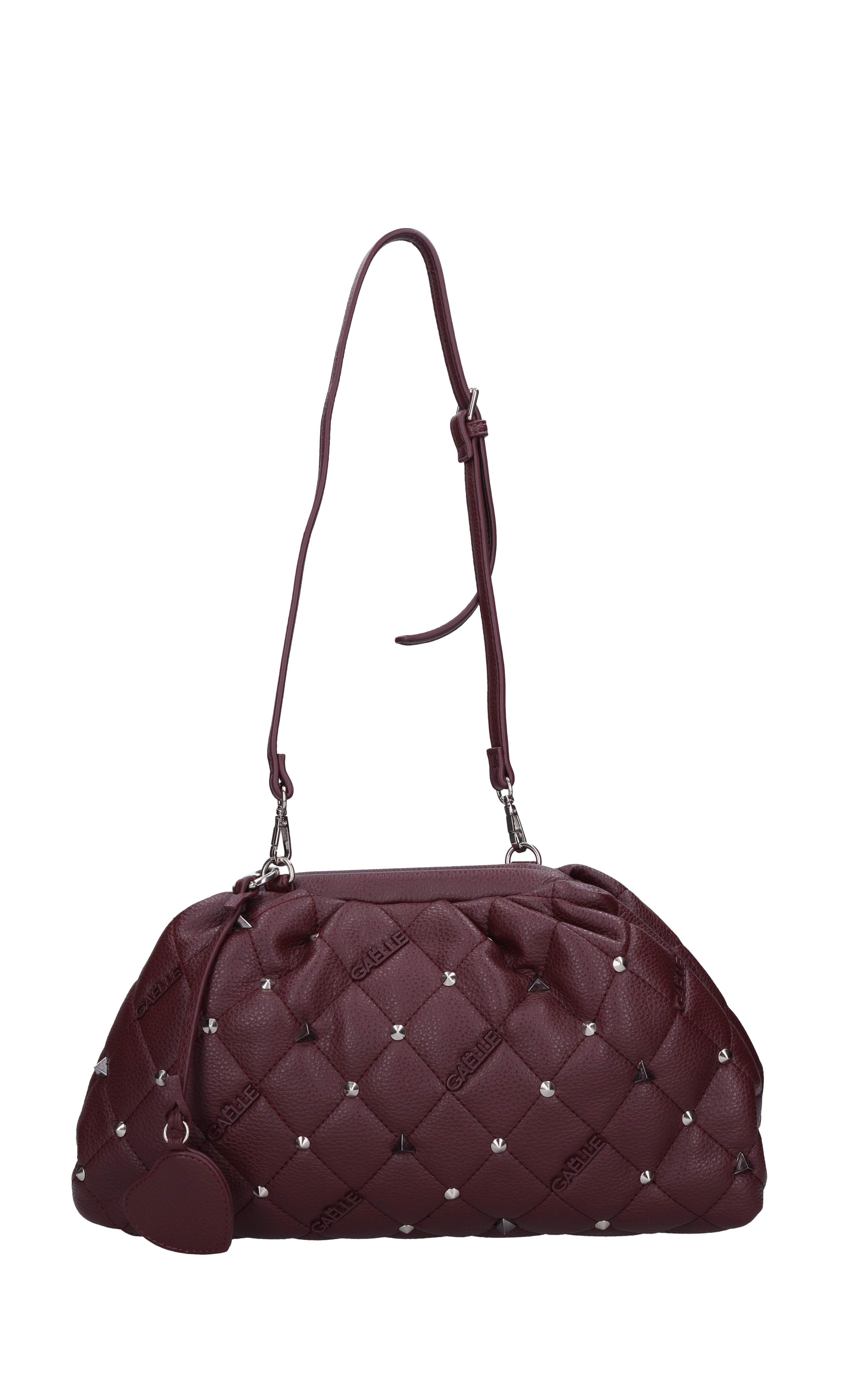 Faux leather bag. Automatic magnet closure. 1 compartment. Adjustable and removable shoulder strap. Removable charm.