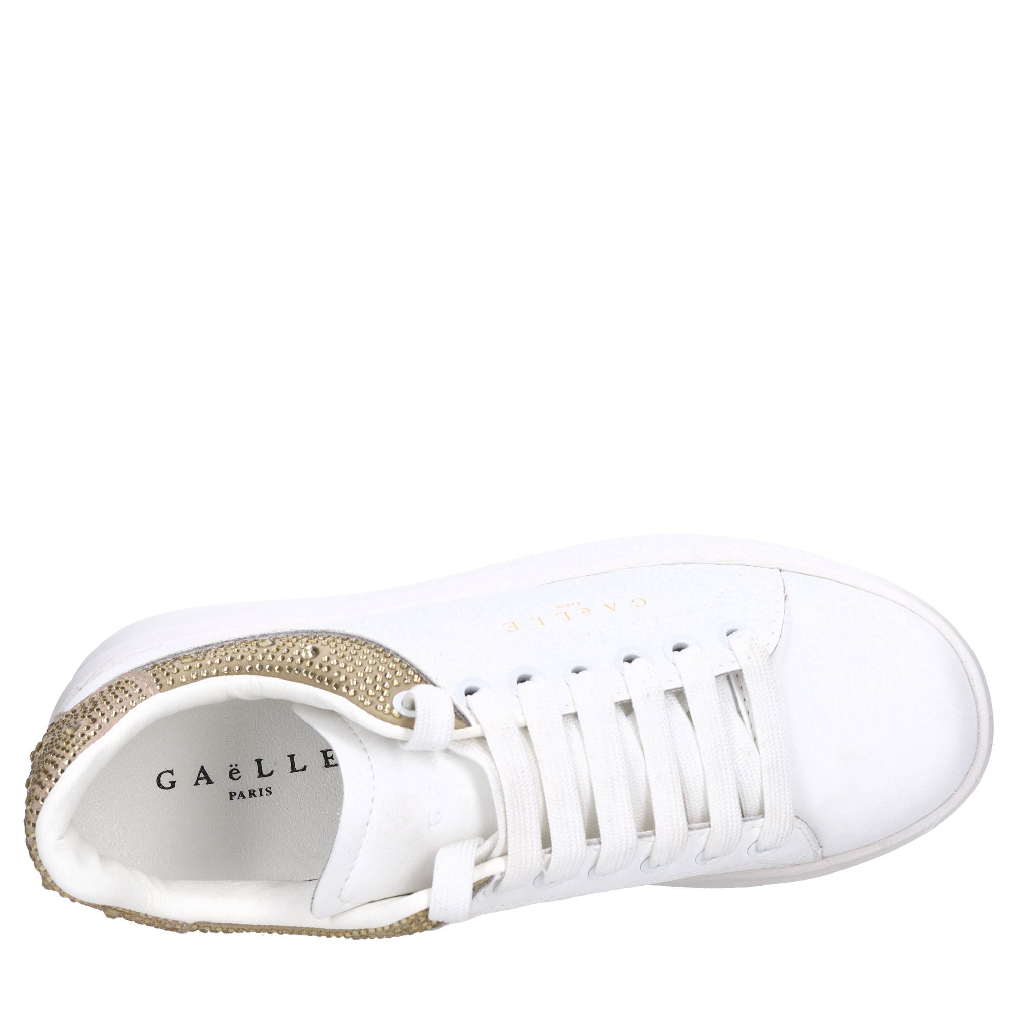 Leather and rhinestone sneakers. Faux leather upper. Rubber outsole.