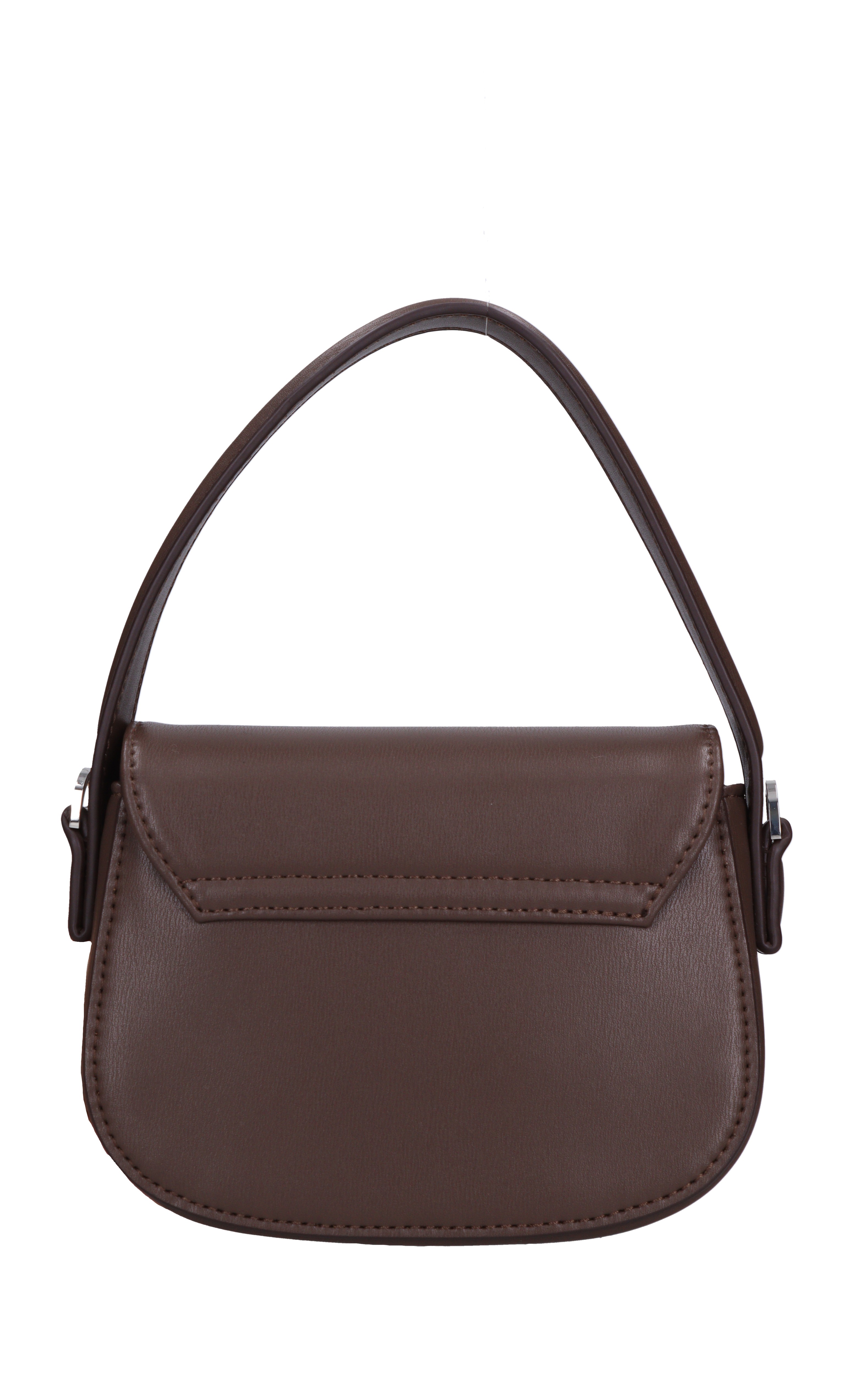 Mini faux leather bag. 1 compartment. Flap closure with snap button. Adjustable and removable faux leather shoulder strap. Shipped in a transparent bag.