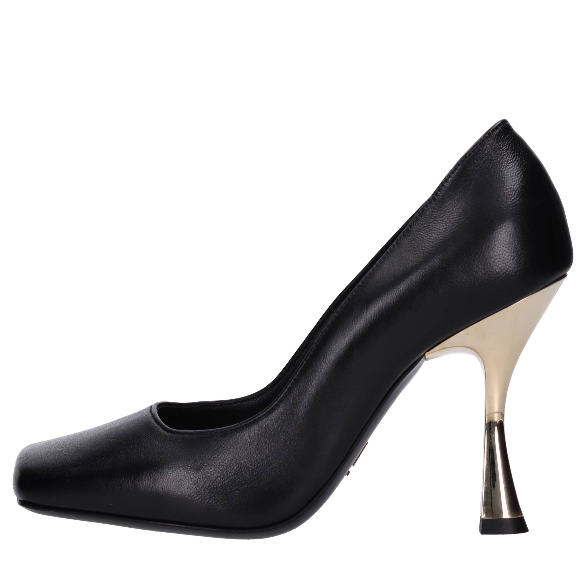 Leather pumps. Leather inner upper. Leather outer sole with rubber insert. Small imperfections on the leather and outer sole. Gold-coloured metal heel.