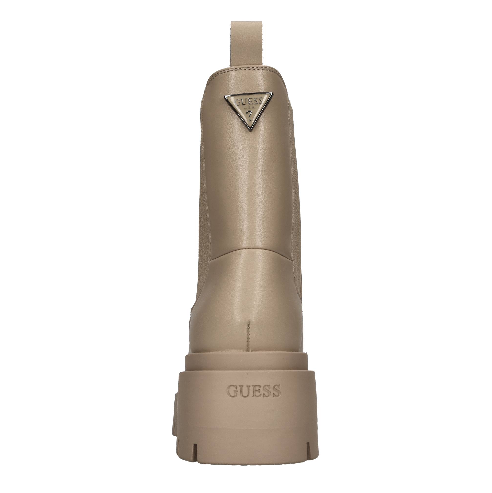 Faux leather and fabric ankle boots. Leather, faux leather, and fabric upper. Rubber outsole.