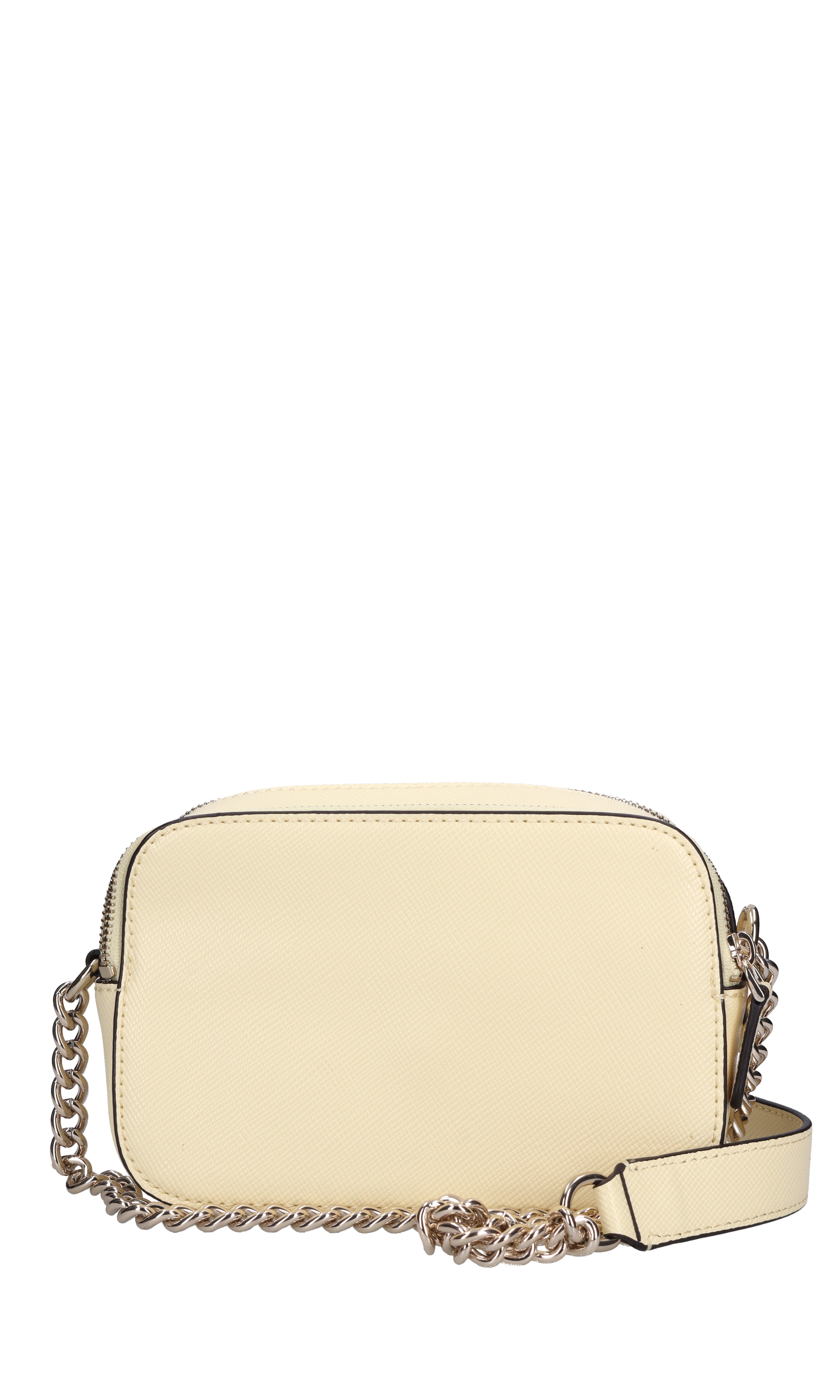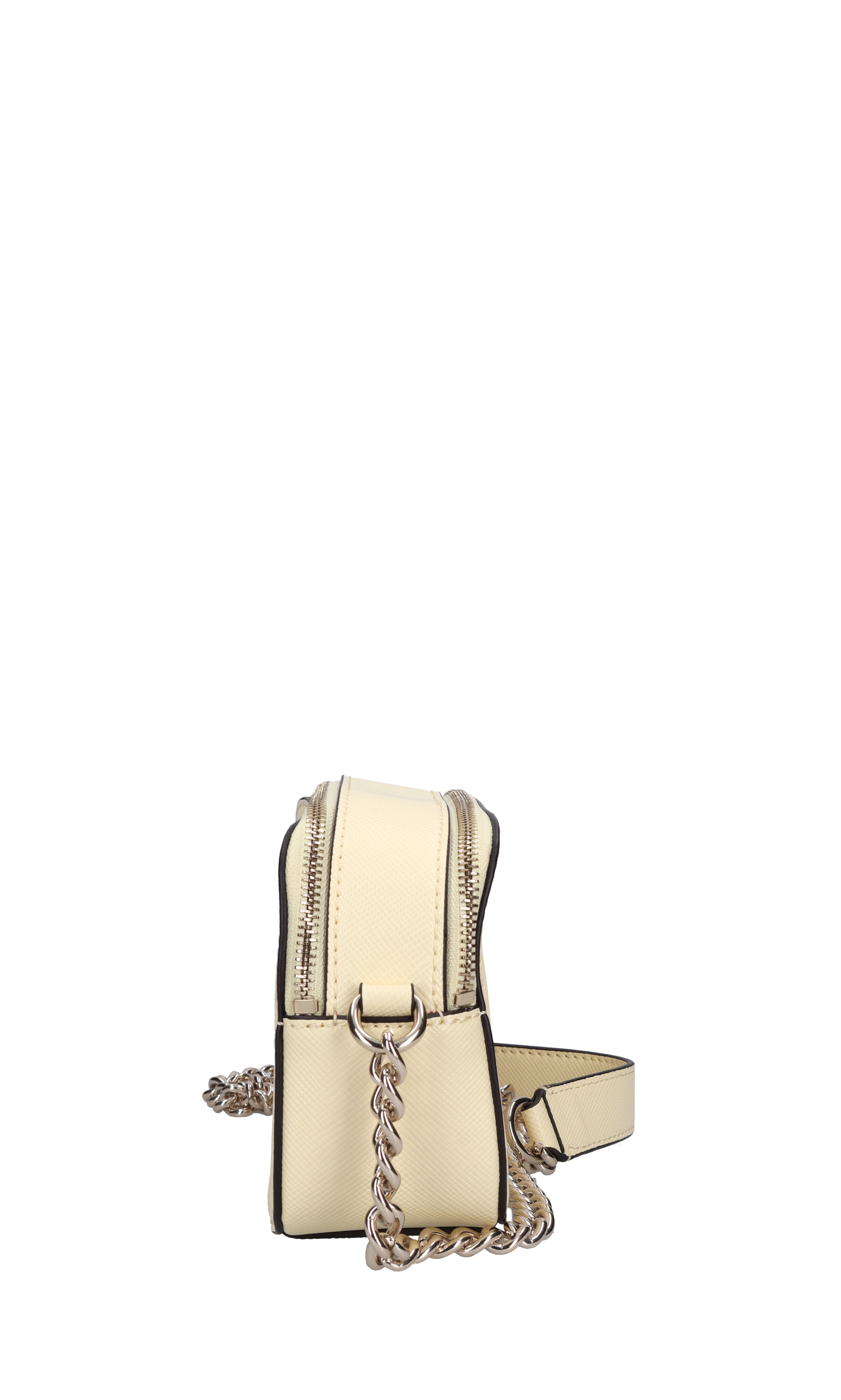 Faux leather bag. 2 compartments. Non-removable gold chain shoulder strap. Zip closure. Shipped in a transparent bag.