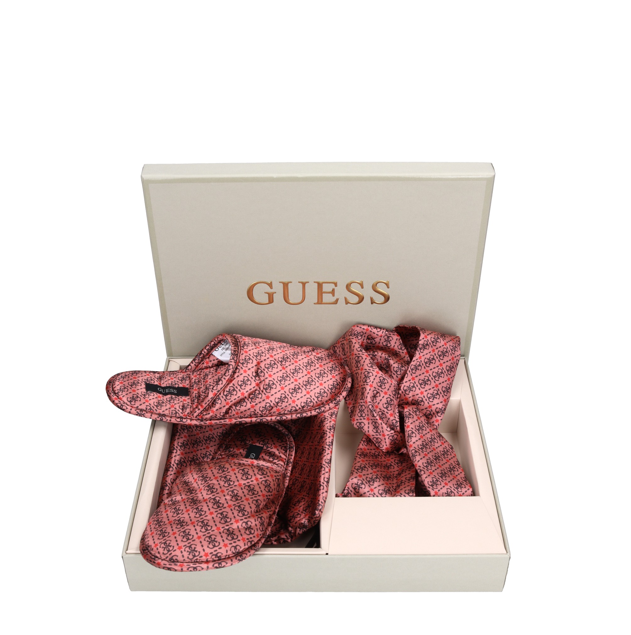 Gift box with headband and slippers with polyester fabric pouch. Box dimensions: 33 x 27 x 5.5