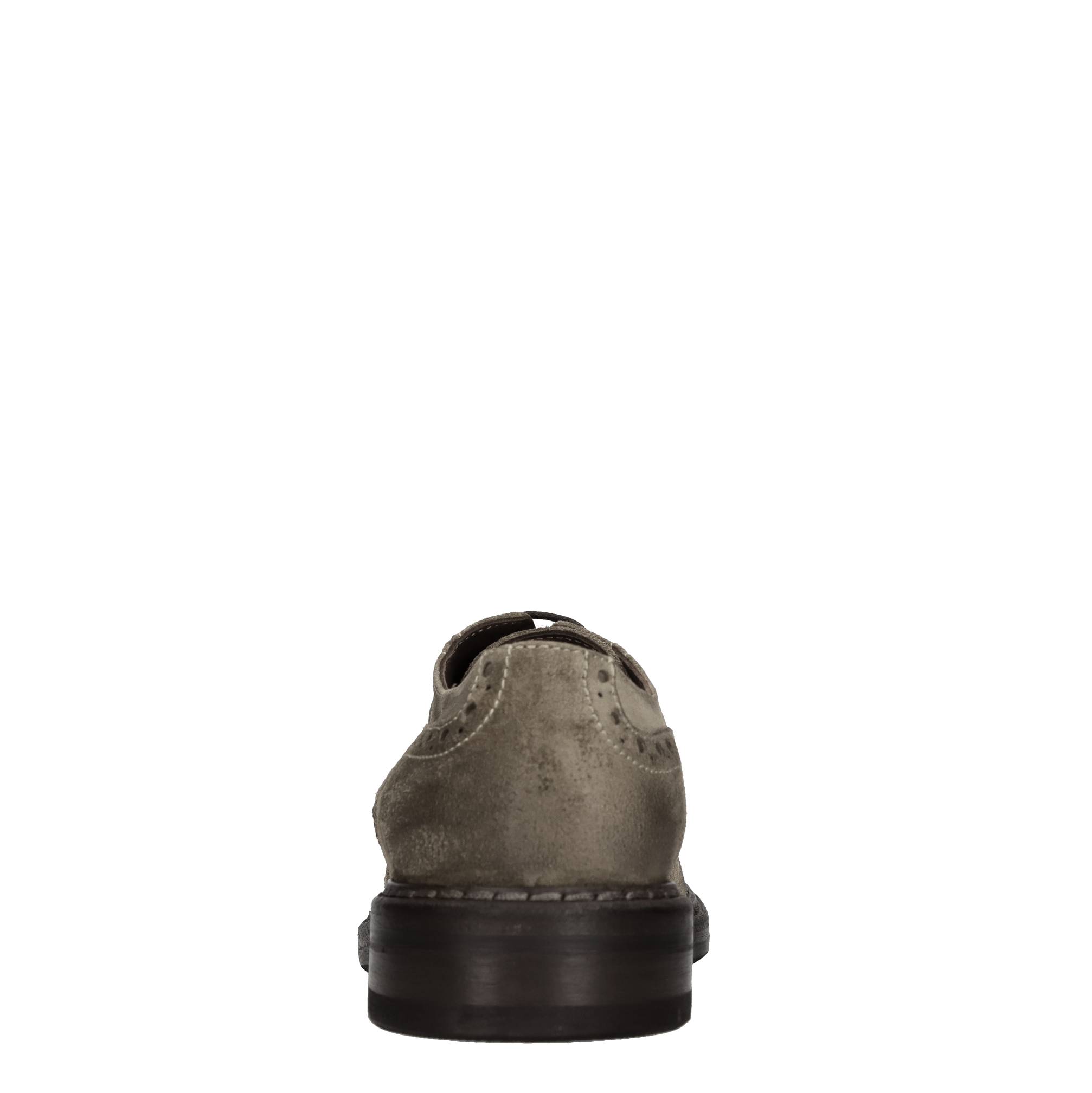 Suede lace-ups. Vintage effect. Leather inner upper. Leather outer sole.
