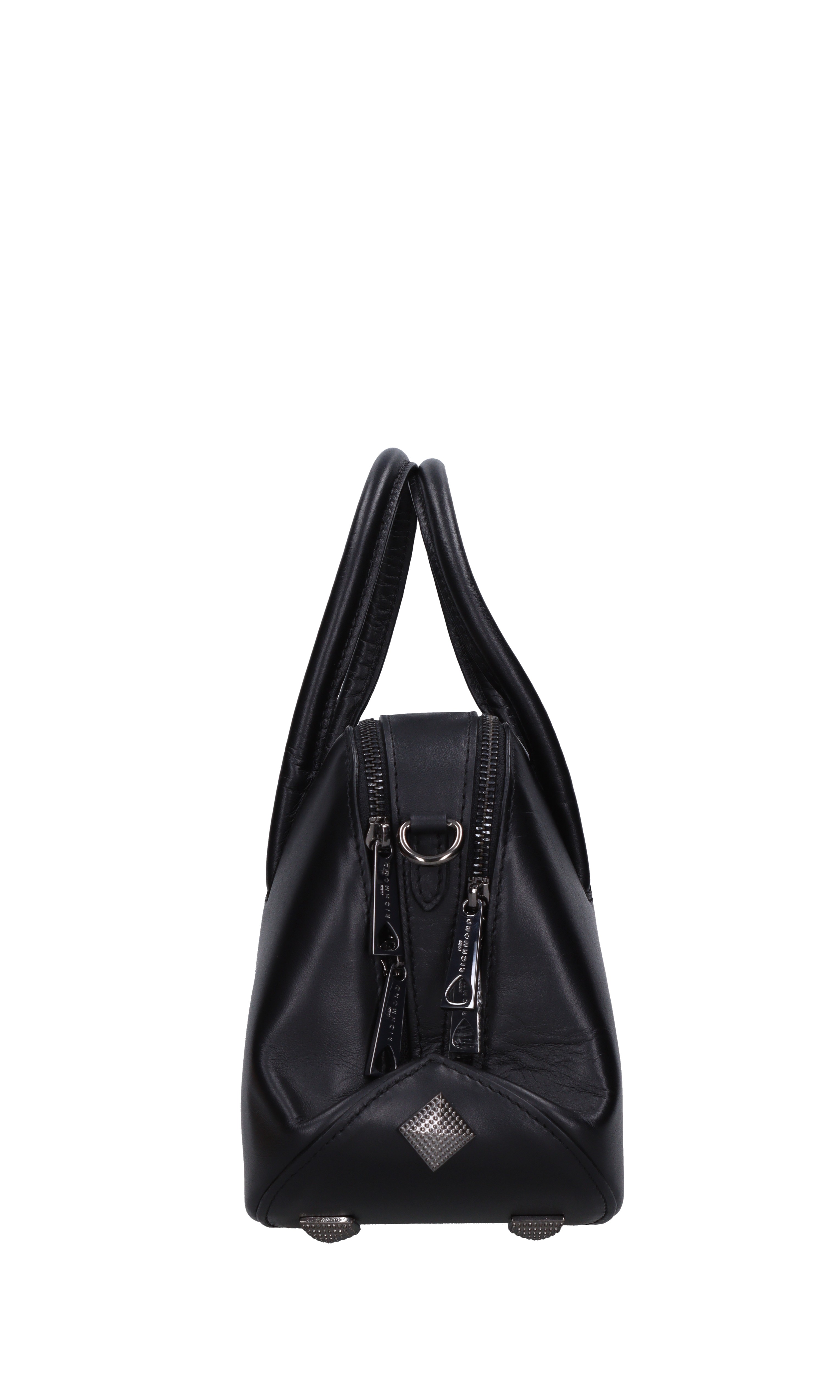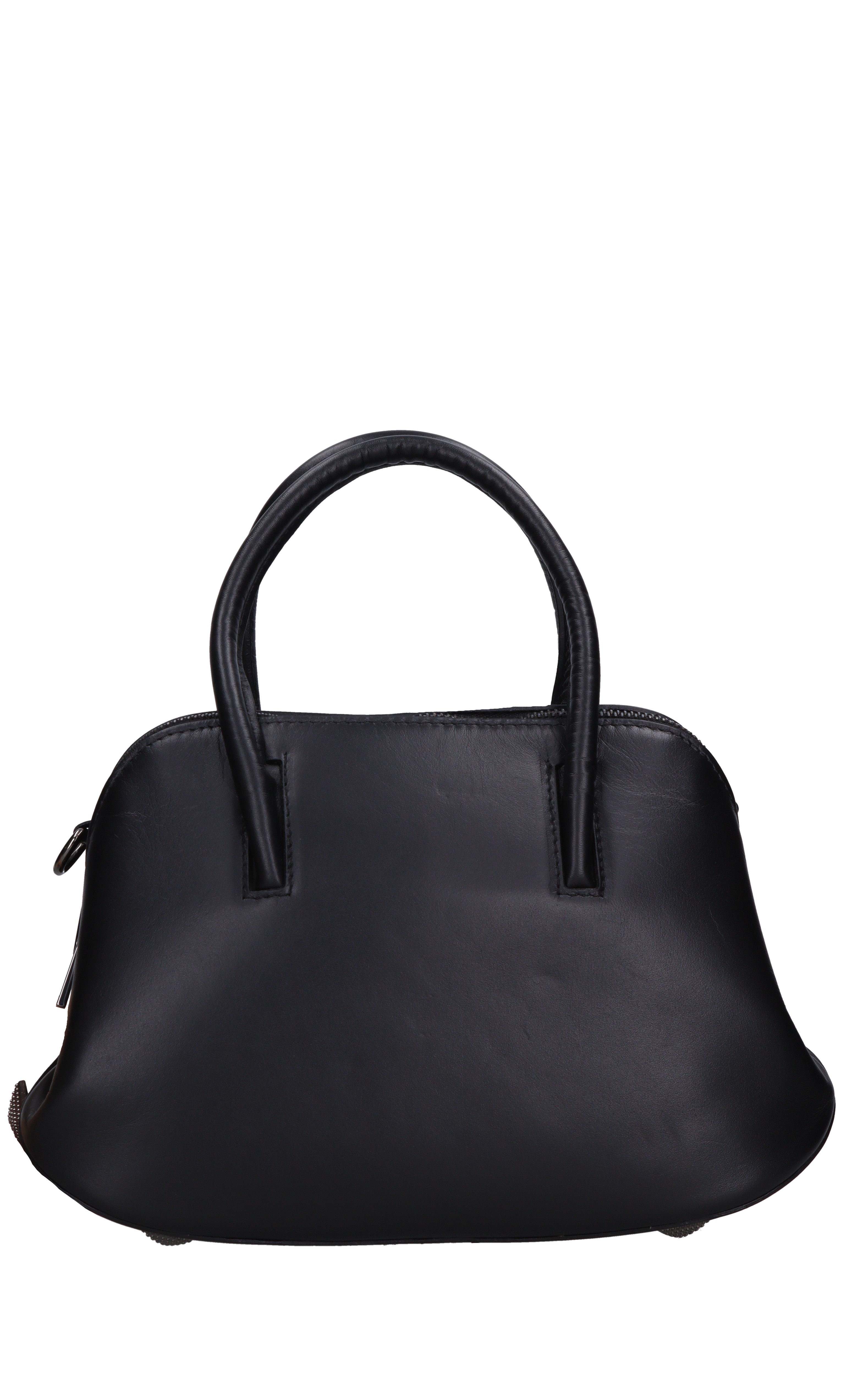 Leather bag. Satchel. Studs. 2 compartments. Zip closure. Removable lead chain shoulder strap. Shipped in a transparent bag.