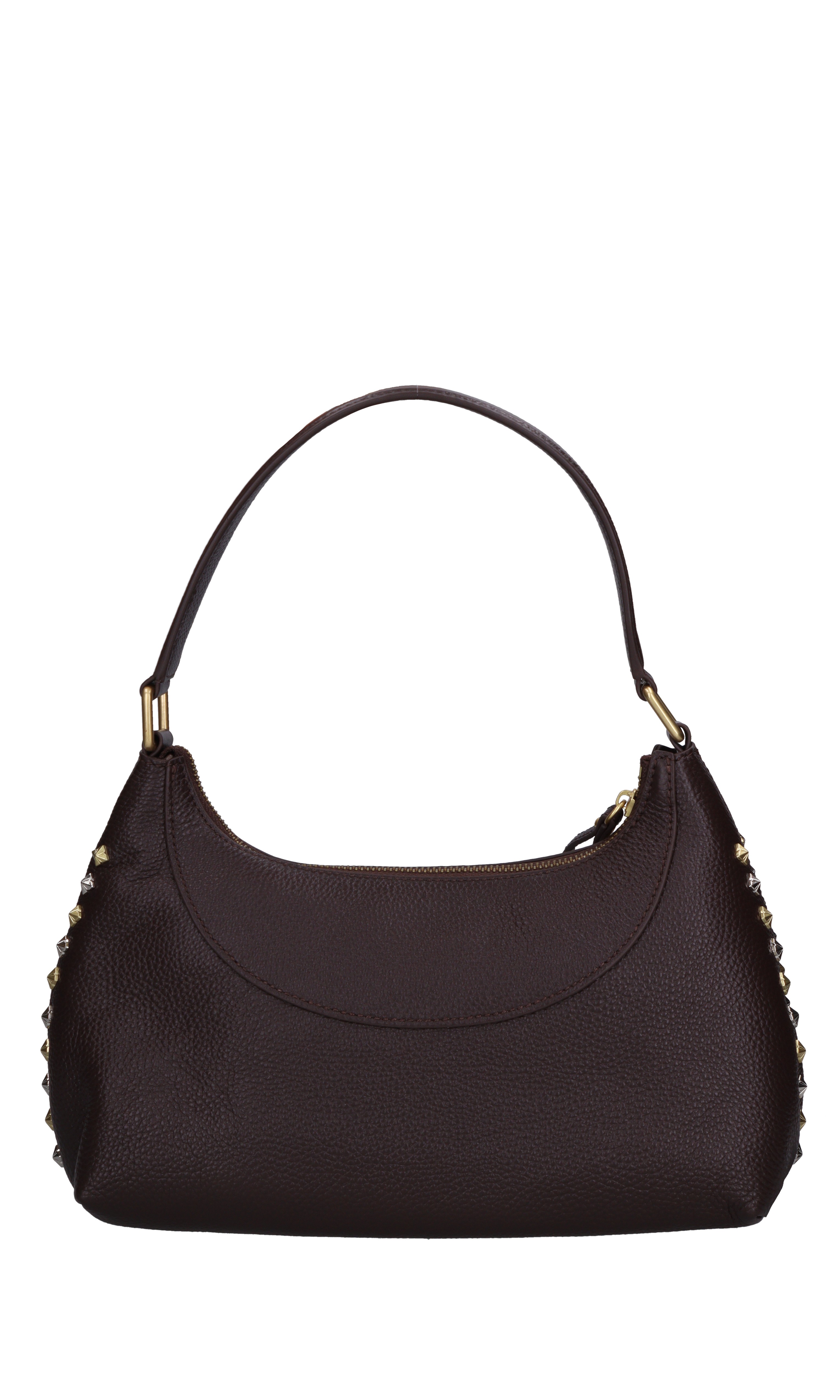 Frivolous medium leather bag. One compartment. Silver and gold studs. Zip closure. Removable golden chain shoulder strap.
